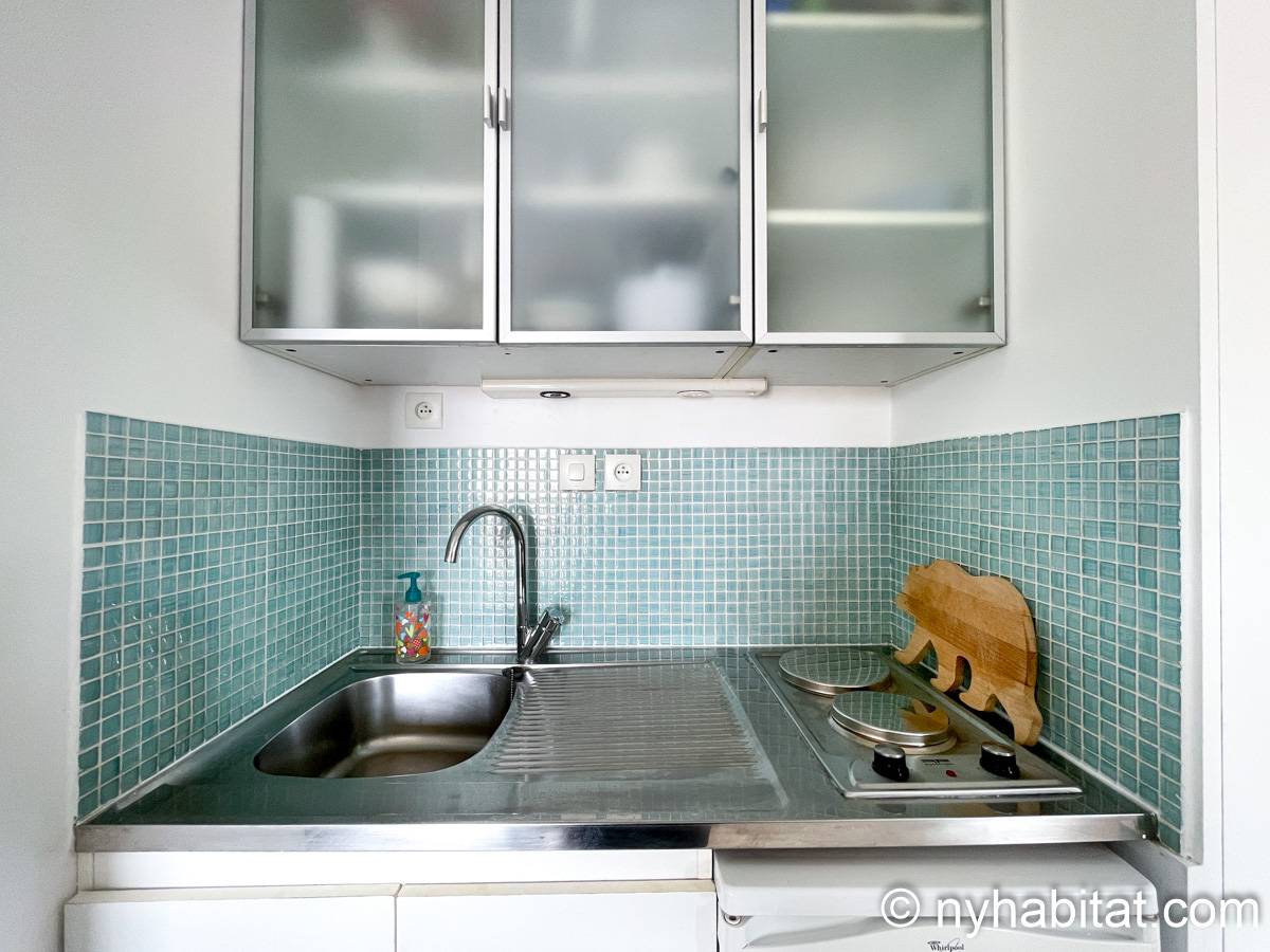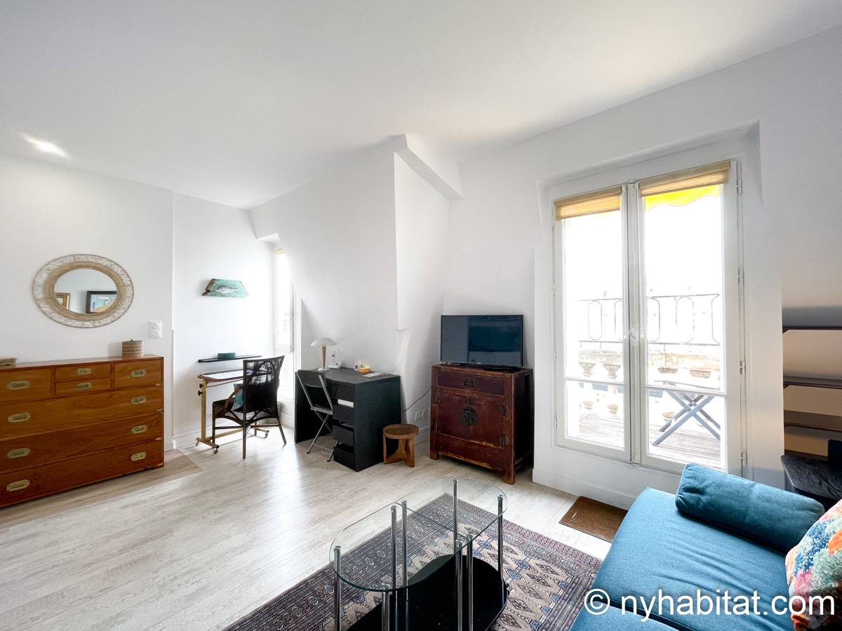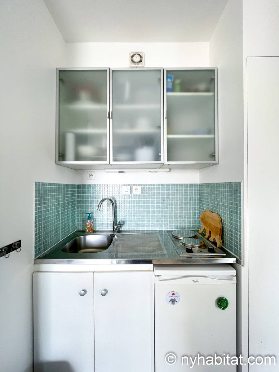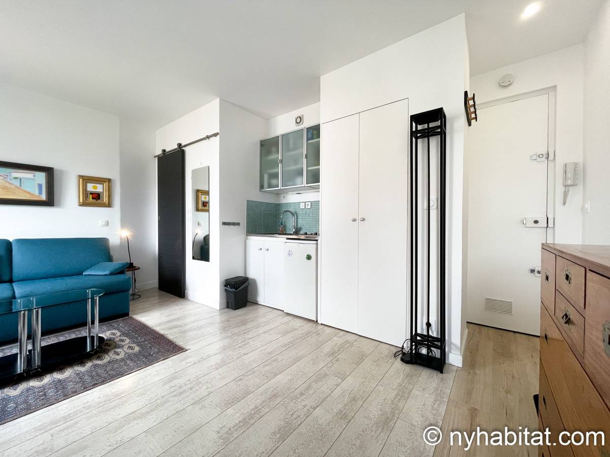 Ce studio T1 orienté nord-est est entièrement équipé, ses deux fenêtres doubles vitrages donnent sur l’Avenue Niel et sur les remarquables toits de Paris ! Equipé d’un canapé-lit, l’appartement est aménagé de façon pratique et il offre tous les équipements et ustensiles de cuisines basiques, n’encombrant pas l’espace de l’appartement.