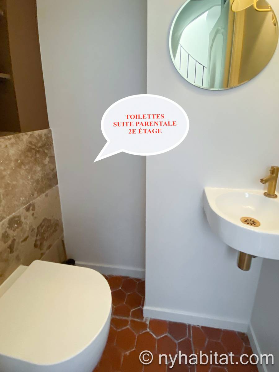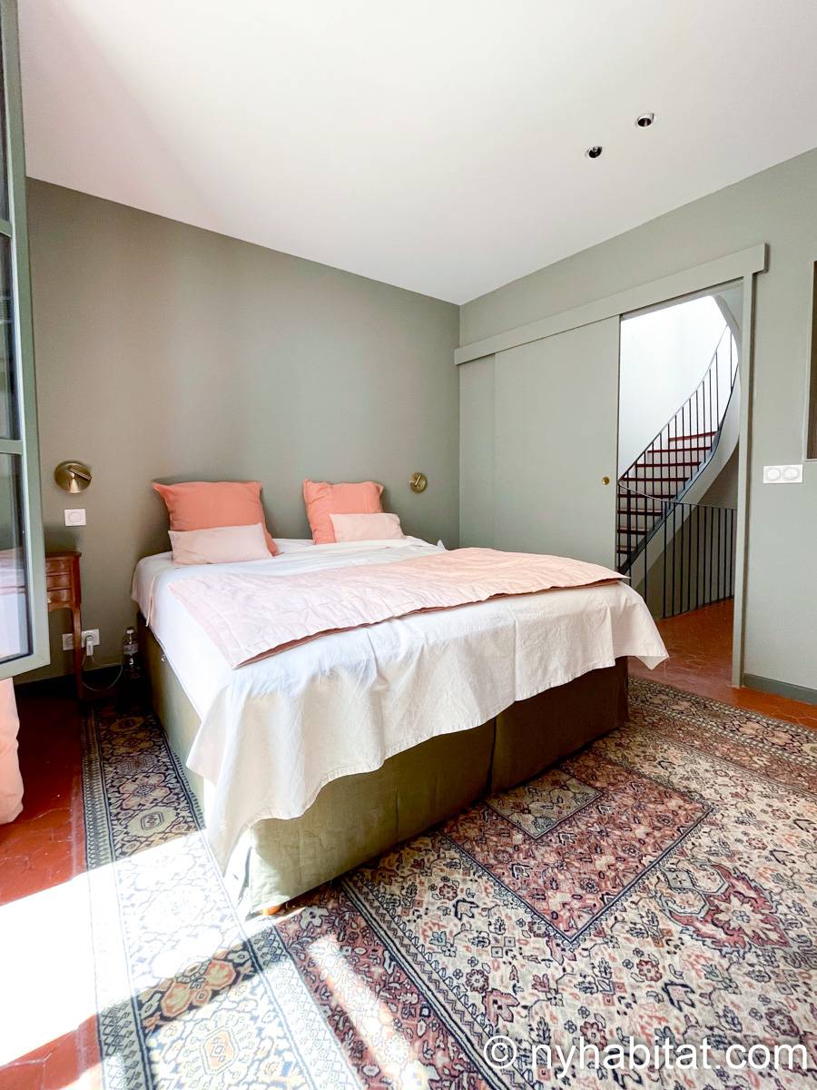 Au premier étage de la location saisonnière, la première chambre a un lit double et la climatisation. La deuxième chambre située au même étage, possède la climatisation, un lit double, un bureau et une table de chevet. Au deuxième étage, la chambre principale possède une porte-fenêtre, la climatisation, un lit double, une télévision, une table de chevet et une armoire. Il y a trois salles de bain dans la maison : l'une est équipée d'une douche, l’autre d'une baignoire, la dernière d’une baignoire-douche Il y a également deux toilettes séparées supplémentaires.