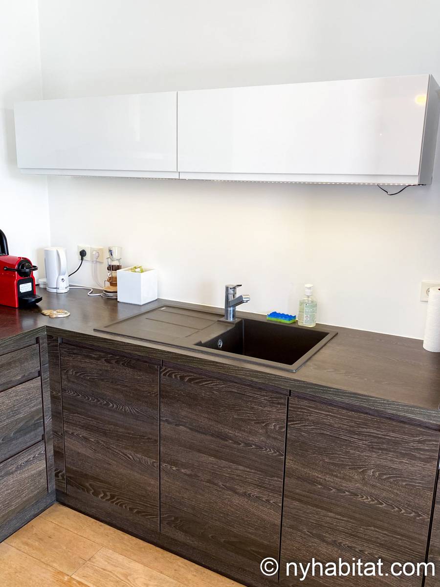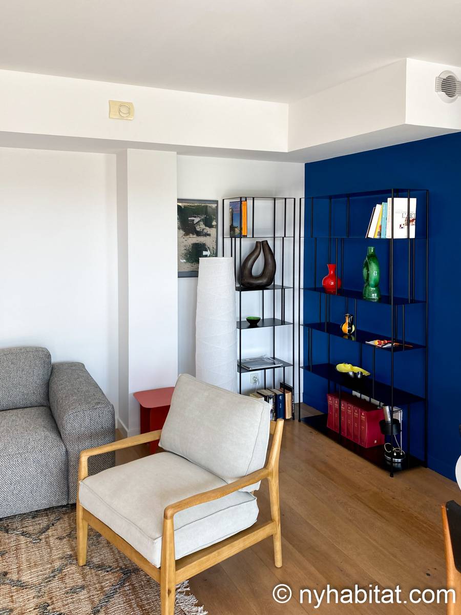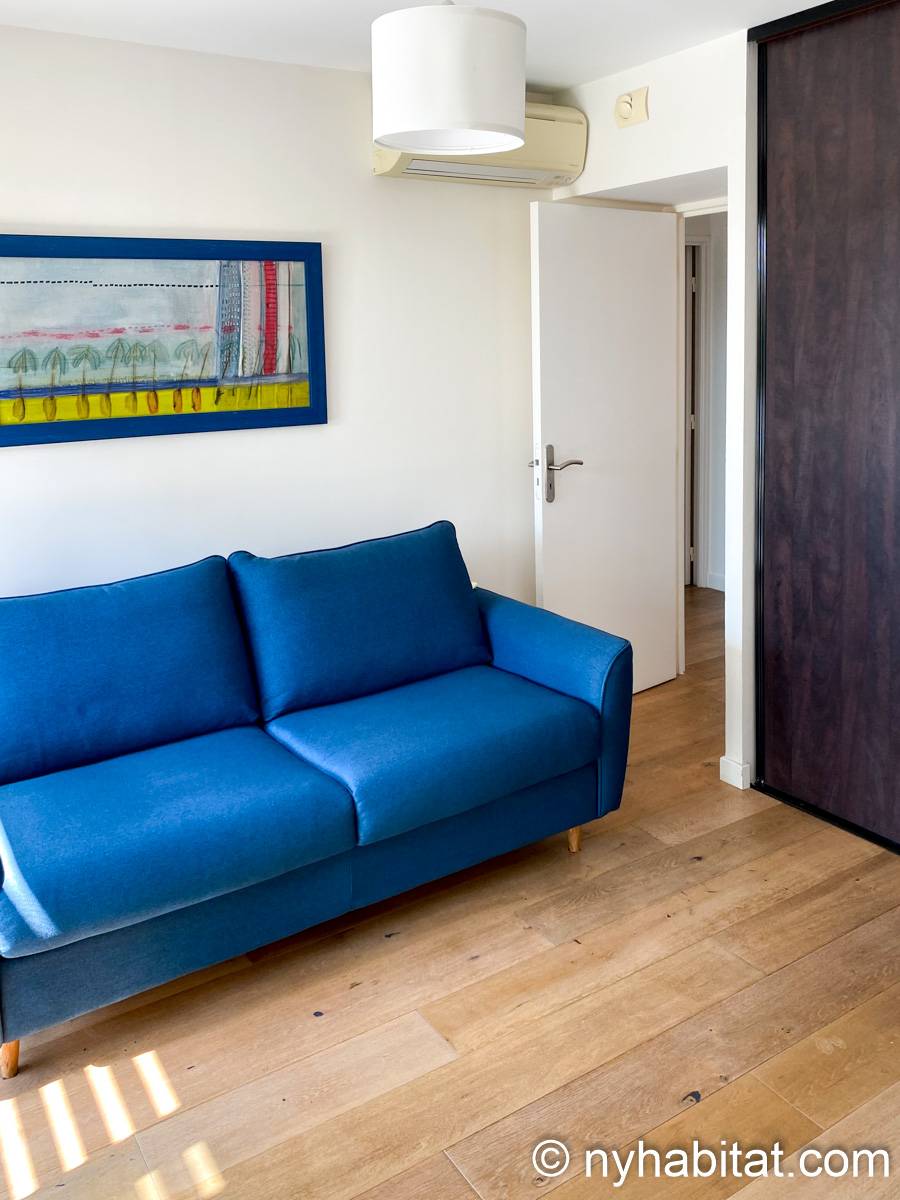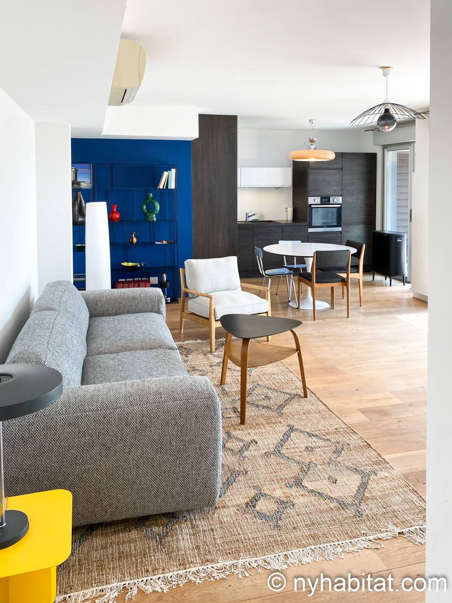 Bien qu'il se trouve à seulement 1 km de la place de la Comédie, une place publique emblématique du centre-ville datant de 300 ans, cet appartement présente un style contemporain. Une grande porte vitrée coulissante laisse entrer la lumière naturelle dans l'appartement, tandis qu'une multitude de sièges sont disponibles pour se détendre, tels qu'un canapé, des chaises et une table. La cuisine ouverte est équipée d'un réfrigérateur, d'un congélateur, d'un four, d'un micro-ondes, d'une machine à café et d'un lave-vaisselle pour vous permettre de préparer vos repas à la maison. De plus, la salle de bain est équipée d'un pommeau de douche à main, d'un lavabo et d'une machine à laver. L'appartement habillé d'œuvres d'art comprend également deux chambres avec chacune un lit double – un lit classique et un canapé-lit – ainsi qu'un accès à une terrasse extérieure. Le patio extérieur est agrémenté de verdure et de quelques tables et chaises.
