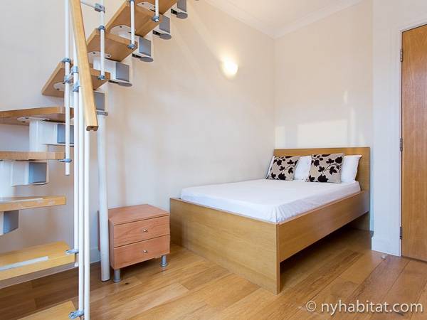 L’appartamento monolocale è tutto a tema legno chiaro. Infatti, la cornice del letto e i piedi sono dello stesso colore del pavimento in legno massello e delle scale, il che regala una certa armonia all’appartamento. La finestra lascia entrare molta luce naturale. In cima alle scale, sulla mezzanina, troverete una cucina con un tavolo da pranzo in legno per due e armadietti in legno. La cucina è ben equipaggiata con un forno, un forno a microonde ed un frigorifero. Il bagno dell’appartamento ha una doccia ed un lucernario.