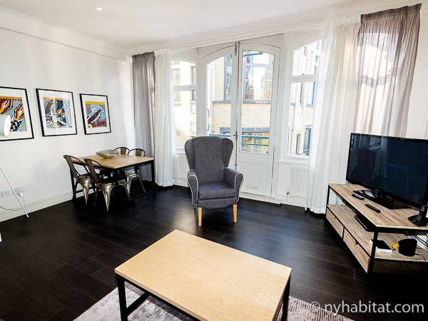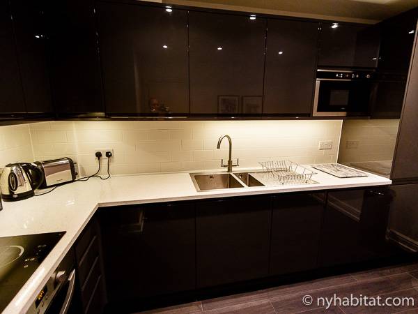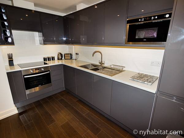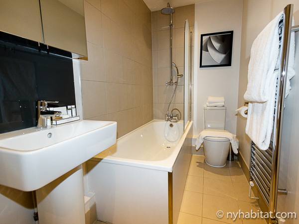 Nel soggiorno dell’appartamento vacanza ci sono porte in vetro e grandi finestre che permettono alla luce naturale di illuminare l’interno da dove avrete delle splendide viste della città. I pavimenti sono in legno massello e gli interni hanno un design molto moderno; ci sono una TV a schermo piatto con canali via cavo, lettore DVD e linea telefonica privata ed un tavolo da pranzo capace di accomodare fino a 4 persone. La cucina è separata e vi troverete piani lavoro di colore bianco, armadietti di un grigio lucido e tutti gli elettrodomestici più moderni tra cui lavastoviglie, forno, frigo/freezer ed anche una lavatrice/asciugatrice! Il pavimento della camera da letto è in moquette e qui troverete un armadio a doppia anta, due grandi finestre, una TV a schermo piatto ed un letto con una testiera dallo stile moderno e lenzuola pulite. Nel bagno di questo appartamento con una camera da letto troverete una grande vasca, doccia, toilette e porta asciugamani.