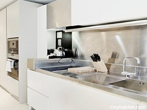 Queste case vacanza arredate hanno un arredo interno moderno come l'esterno. La zona giorno dello studio ha una disposizione aperta con un letto a scomparsa che permette di avere uno spazio maggiore. Però, quando il letto viene utilizzato, c'è un elegante separé che può essere tirato attraverso la stanza per una maggiore privacy dalla zona soggiorno. Il soggiorno è arredato con elementi industriali dal tavolino in vetro e dal morbido divano in pelle marrone. La cucina è completamente attrezzata con elettrodomestici in acciaio inossidabile e armadi a pannelli piatti ergonomici.