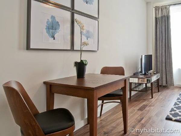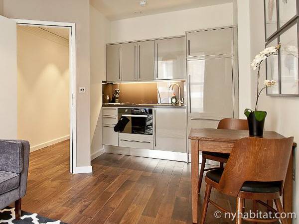 Con pavimenti in legno massello, il pavimento di questa casa vacanze è arredato con un divano, un tavolo da pranzo e una tv via cavo. La cucina si trova proprio di fianco al soggiorno ed è open space e full optional, dotata di tutto il necessario tra cui anche una lavastoviglie e un microonde. Il bagno ha doccia, vasca e WC. Questo appartamento con una camera da letto ha infine un letto a due piazze, un abat-jour, un tappeto e un comodino. Sia la camera che il soggiorno sono illuminati dalla luce naturale che entra dalle finestre e dà lucentezza per tutto il giorno.