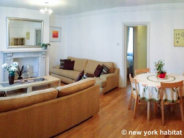 Seppur non completamente arredato, quest’appartamento con 2 camere da letto offre tutti gli accessori strettamente necessari per un piacevole soggiorno, oltre a presentare un ambiente piuttosto ampio. Nel salotto dal pavimento in parquet, potrete rilassarvi su comodi divani. La finestra, con le sue lunghe e morbide tende, si affaccia su una splendida vista dell’architettura degli edifici circostanti, consentendo anche la piena illuminazione della camera. Un tocco in più alla camera è dato sicuramente dal caminetto decorativo alla parete.