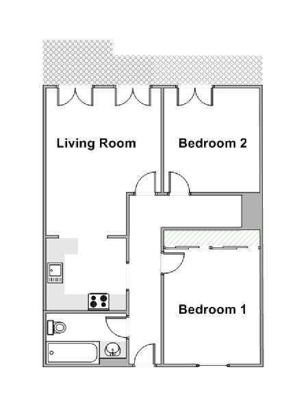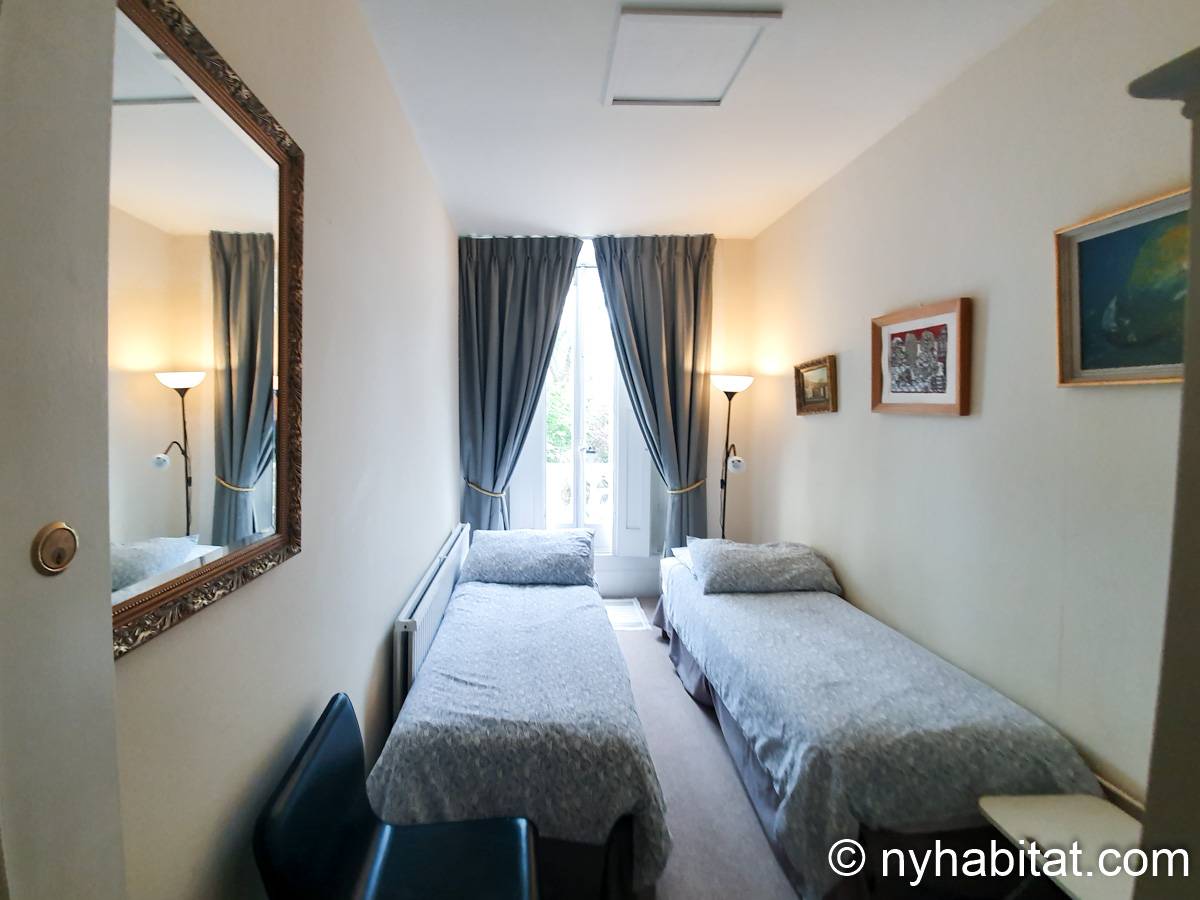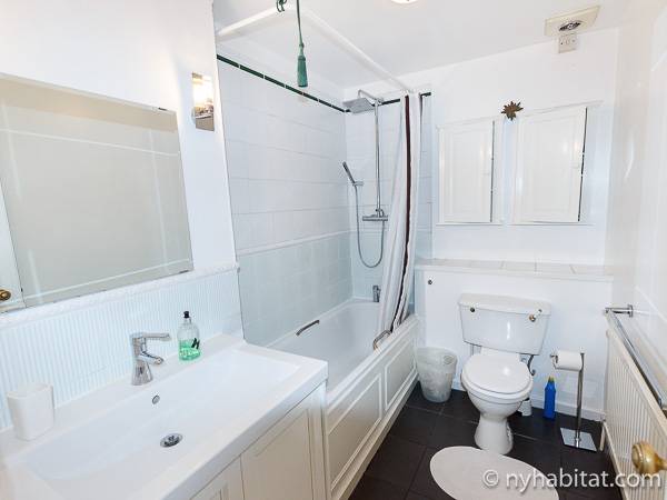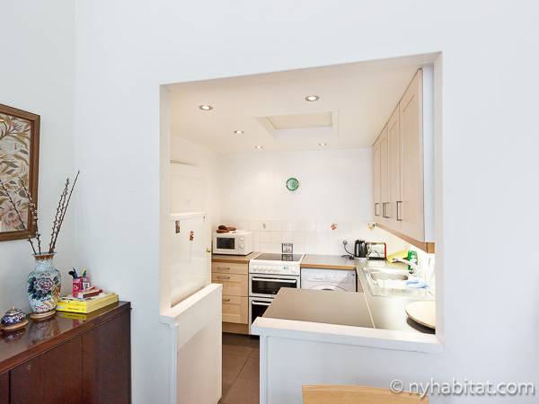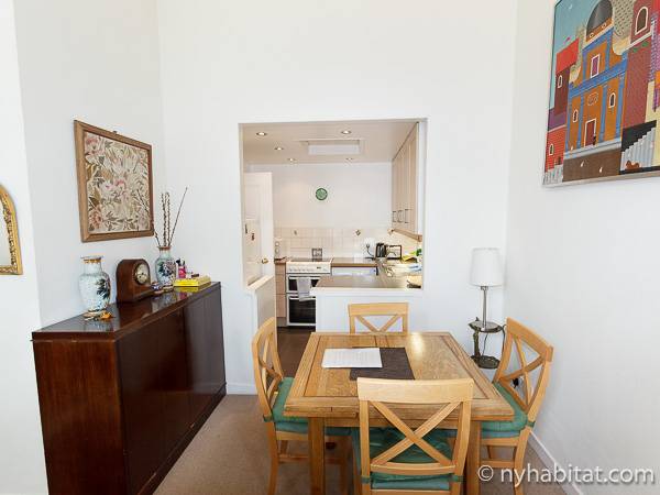 Questo appartamento con due camere da letto si trova nell'Earls Court Square, tra Earls Court Road e Warwick Road. È situato al primo piano di un edificio d'epoca ed è completamente ammobiliato. Misura circa 65 mq ed è composto di soggiorno, due camere da letto, una cucina e un bagno. Appena si entra in questa casa vacanza, il bagno, completo di vasca con doccia, si troverà proprio alla vostra sinistra e, sempre a sinistra ma un po' più lontano, troverete la cucina. La prima camera da letto, invece, si trova a destra. Questa prima camera da letto offre un letto matrimoniale (queen size) e anche degli armadi per vostra comodità. In fondo al corridoio d'entrata troverete il soggiorno e la seconda camera da letto, che presenta due letti matrimoniali estraibili. Il soggiorno è una stanza comoda che offre molti posti a sedere, una TV via cavo (Freeview) e un lettore DVD, ma anche un tavolo da pranzo con posto per quattro persone. Qui troverete anche delle porte finestre che vi porteranno sul balcone che dà sul verde della piazza. Nella cucina, che crea un open space con il soggiorno, potrete preparare le vostre pietanze servendovi del forno, del frigorifero/congelatore, del microonde e del tostapane. L'appartamento vacanza è dotato di un riscaldamento centralizzato a gas.