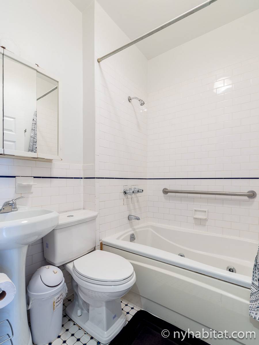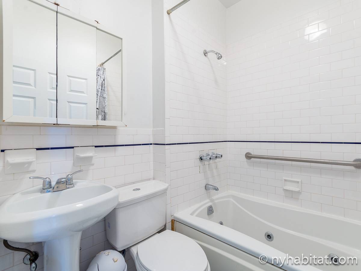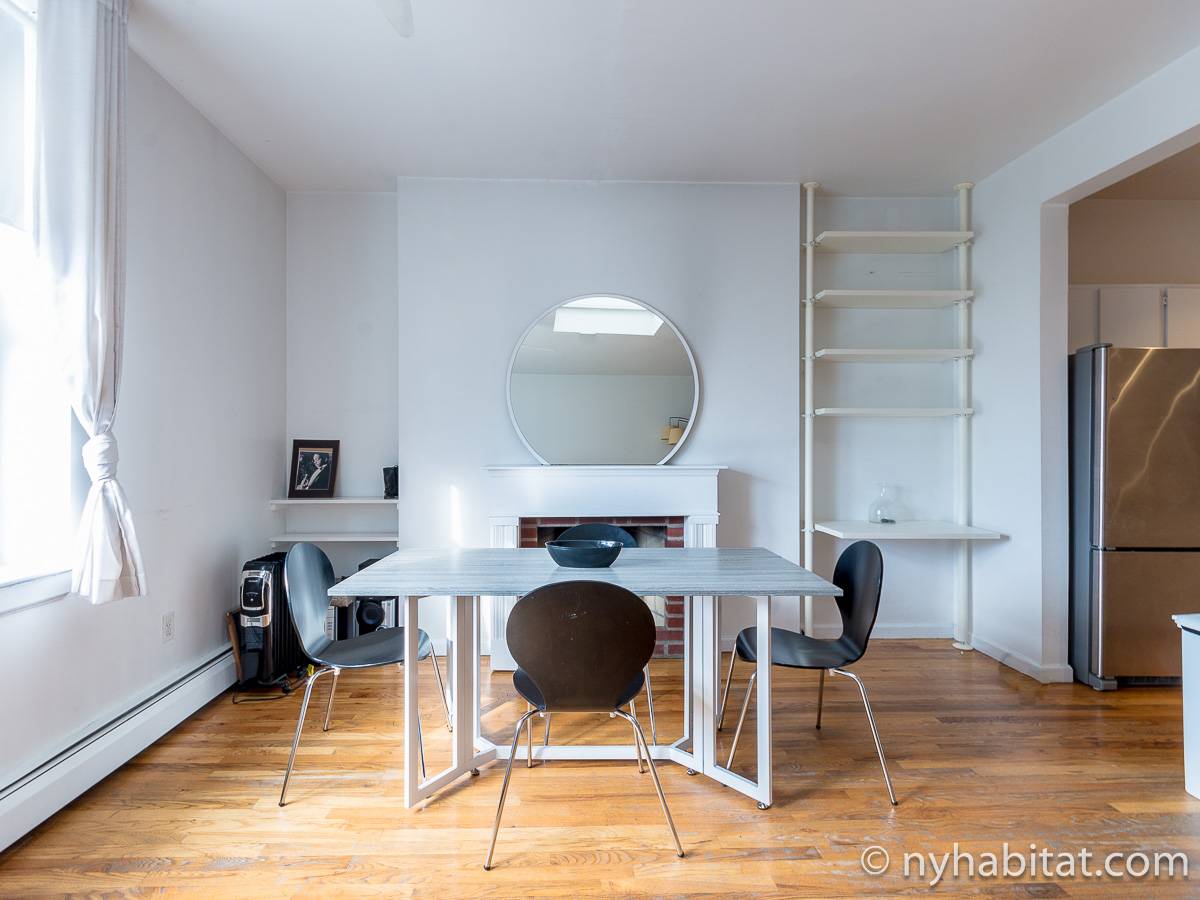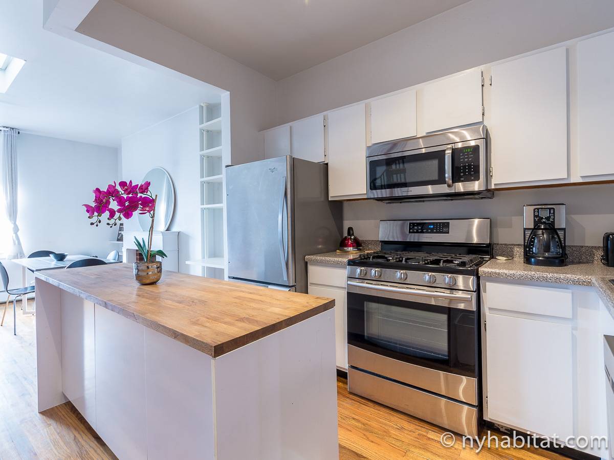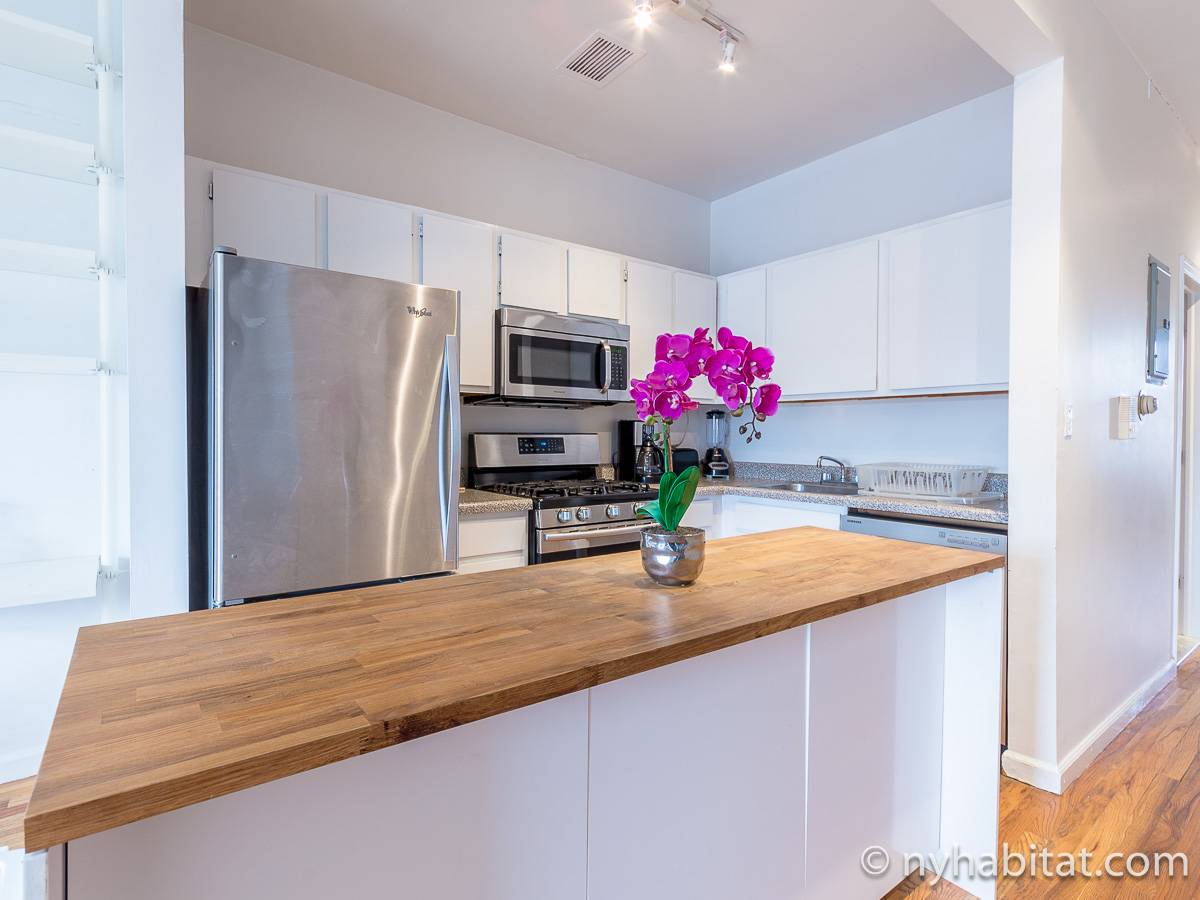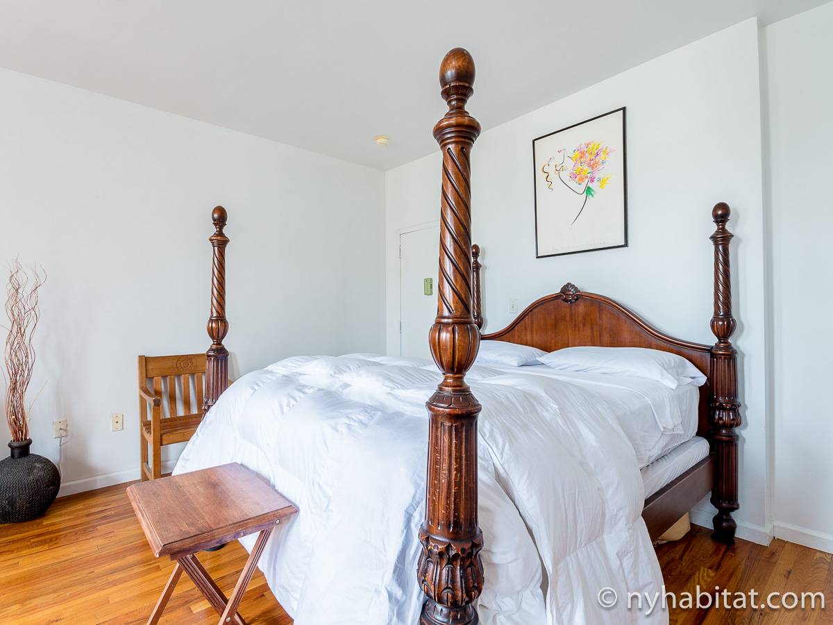 Questo appartamento con 2 camere da letto situato su 2 livelli si trova al terzo e quarto piano (corrispondenti al secondo e terzo piano in Europa) di una palazzina di 4 piani ad Harlem, Manhattan. Ci sono due entrate all'appartamento: dal secondo piano una porta collega alla camera da letto principale, e al terzo piano c'è un'altra porta che entra sul corridoio dell'appartamento. C'è anche una lavanderia all'interno dell'alloggio.