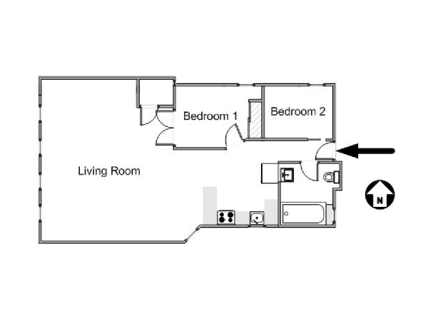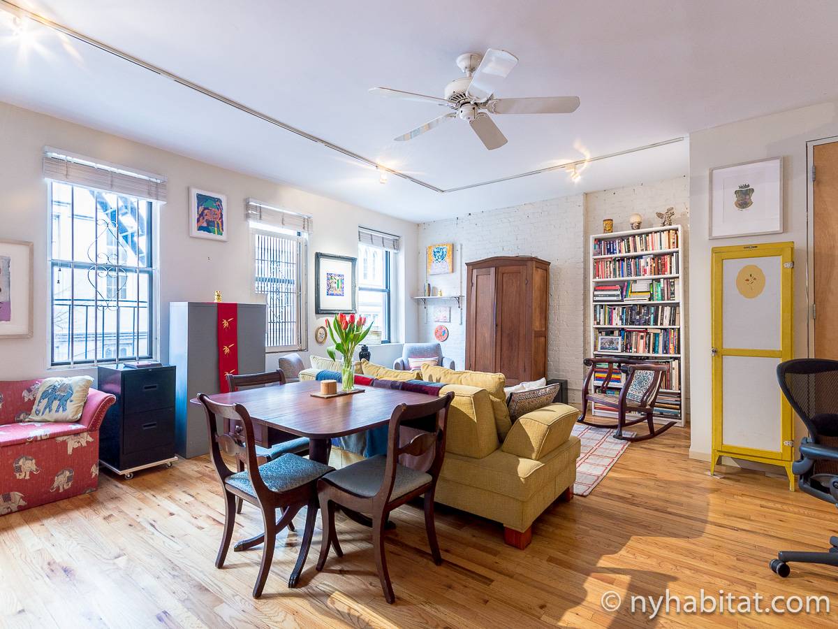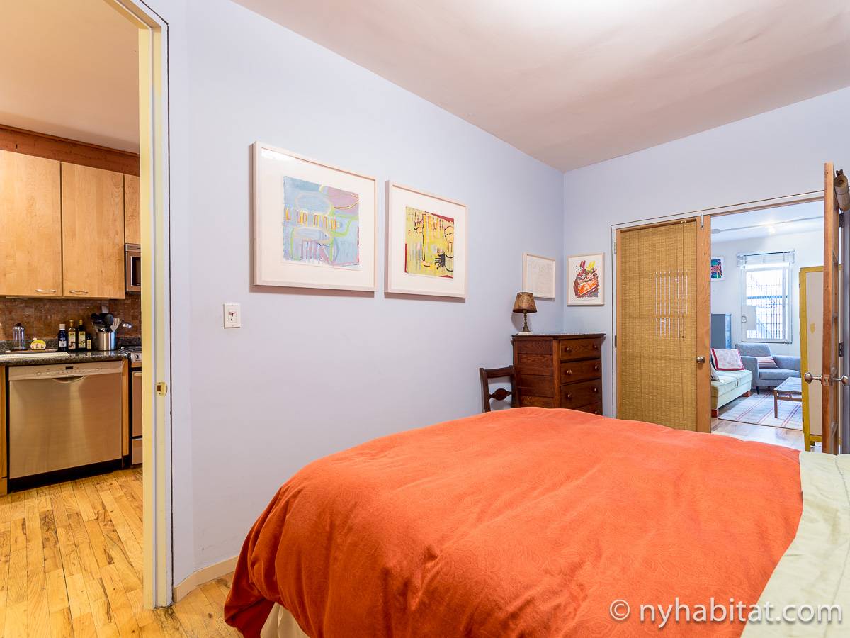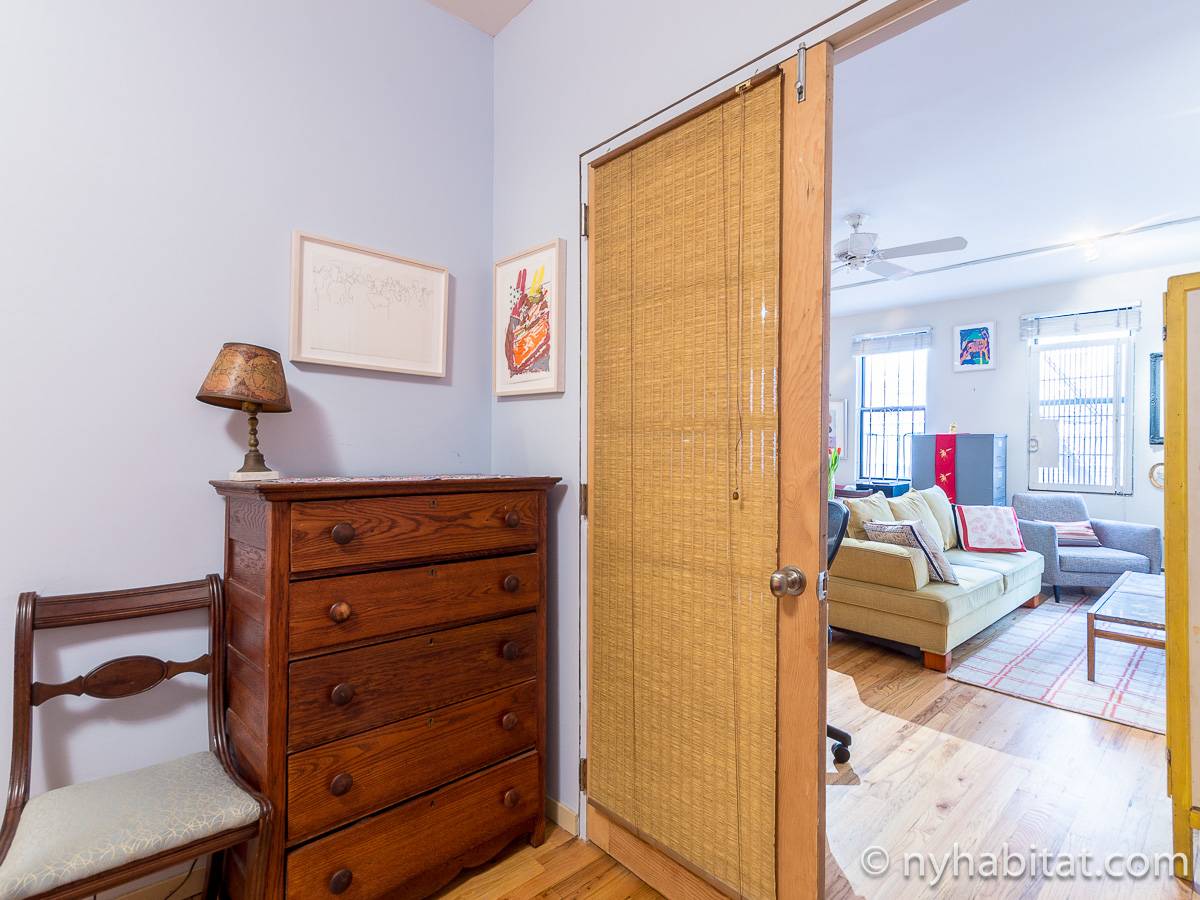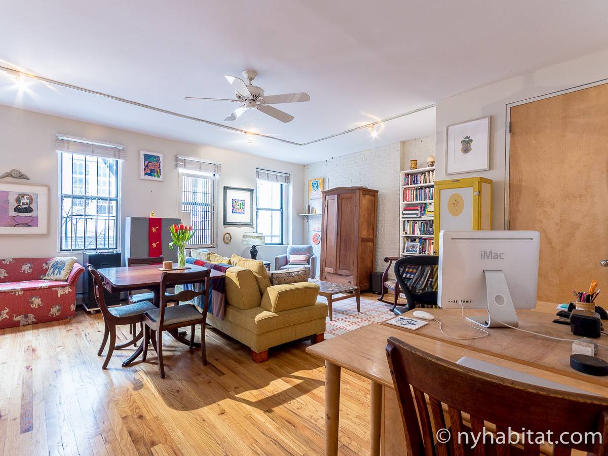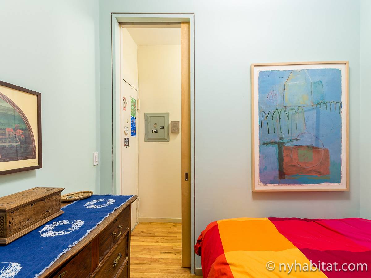 Questo appartamento con due camere da letto è completamente ammobiliato e si trova nel Lower East Side di Manhattan, New York. L’appartamento è situato al quarto piano di un edificio di sei piani senza ascensore. Dispone di un citofono con segnale acustico per l’ingresso degli ospiti.
