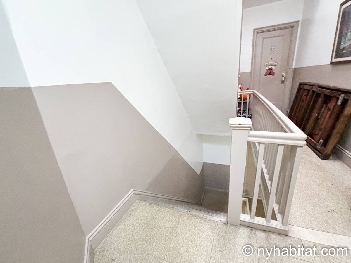 Situato tra la 48th Street e Silkman Avenue nel Queens, a New York, questo appartamento con una camera da letto occupa l’ultimo piano di un edificio di 3 piani (equivalenti a 2 piani in Europa) senza ascensore. Un sistema di sicurezza con telecamere di sorveglianza è stato installato al piano terra.