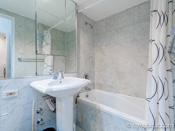 Pavimenti in legno massello, specchi a parete e ampie finestre rendono questo appartamento monolocale il rifugio perfetto dall’attività frenetica che caratterizza il Midtown. Dotato di salotto e sala da pranzo adiacenti al letto matrimoniale, questo appartamento è attrezzato con tutto ciò che vi occorre. Una cucina separata vi fornisce tutti gli elettrodomestici che vi serviranno per cucinare a casa, compresa la lavastoviglie! Il bagno in marmo, e la vasca da bagno al suo interno, evoca l’atmosfera lussuosa del Midtown East e dona all’appartamento un fascino speciale. Un tavolo da pranzo che può far accomodare fino a quattro ospiti espande la zona a disposizione per ospitare qualcuno.