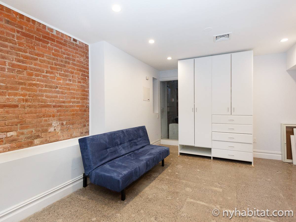 Questo appartamento con una camera da letto alla moda è dotato di mobili semplici, l’openspace può vantare pareti di mattoni a vista, pavimenti in legno massello nuovi e un grande divano ad angolo posto di fronte a un caminetto decorativo. La zona della cucina è ben illuminata con luci a binario personalizzate ed è ammobiliata con neutri rivestimenti salvaschizzi di piastrelle, piani di lavoro in granito ed elettrodomestici in acciaio inossidabile, inclusa la tanto desiderata lavastoviglie. Anche nella camera da letto dell’appartamento le pareti sono in mattoni a vista, e la stanza porta a un giardino condiviso con il resto dell’edificio. La camera dell’alloggio in affitto è arredata con gusto e presenta un letto matrimoniale, una scrivania e una cabina armadio.