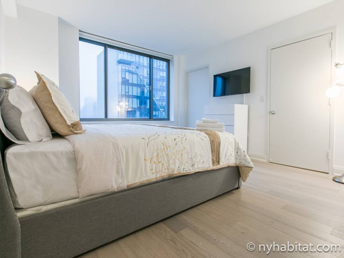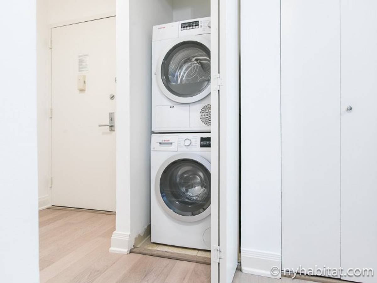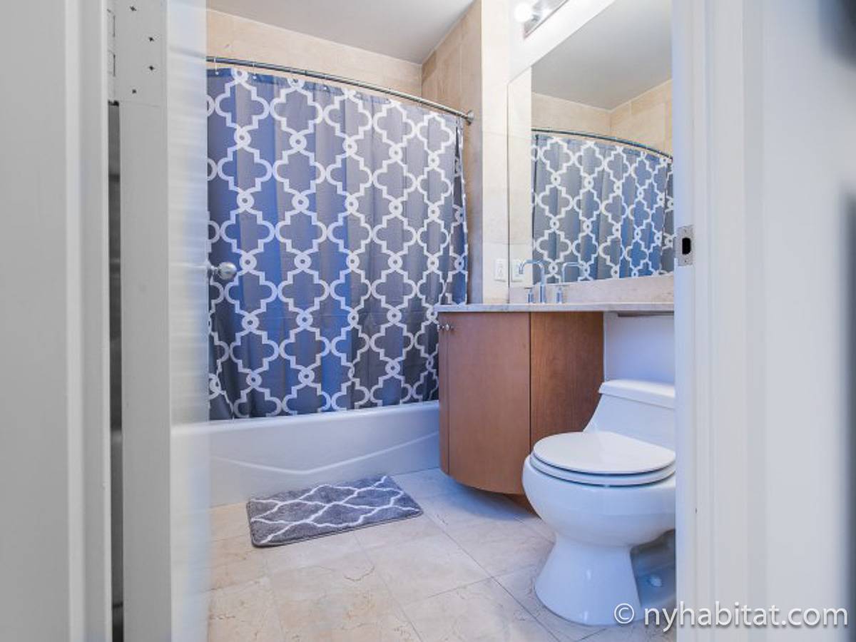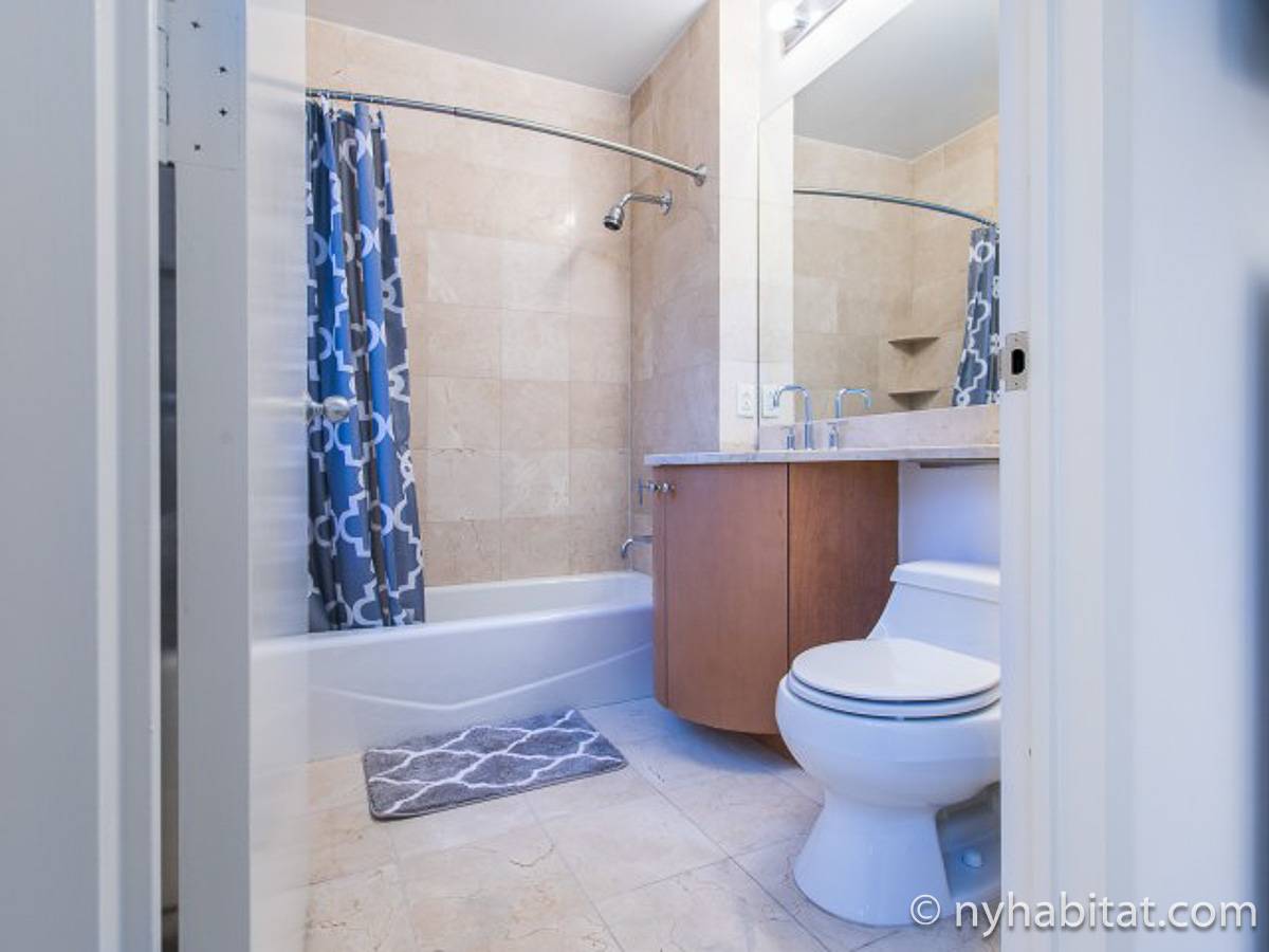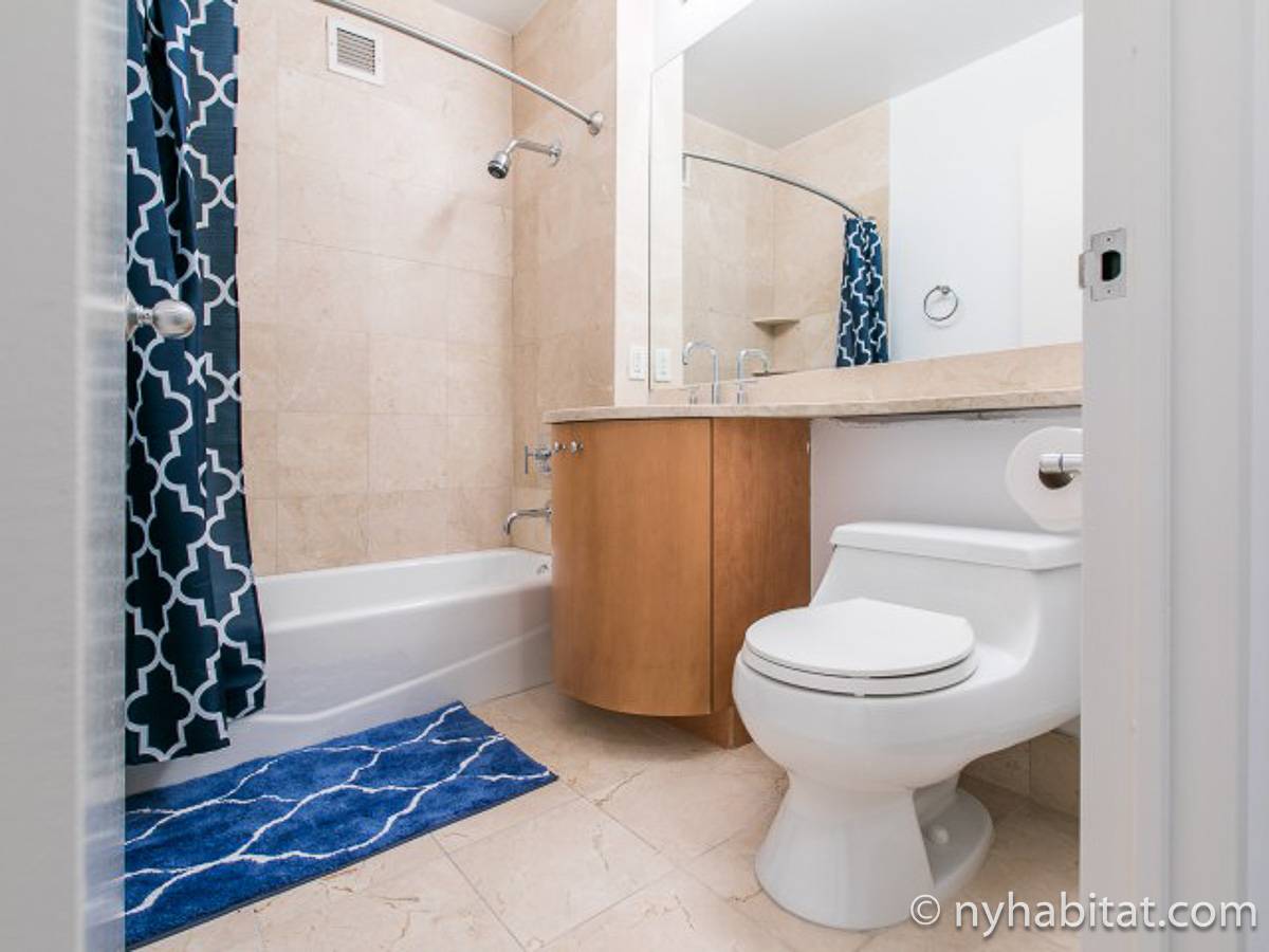 Fate di questo appartamento ammobiliato con due camere da letto e due bagni la vostra casa a New York City. L’appartamento è decorato in stile moderno, con pavimenti in legno chiaro e una combinazione di colori chiari che lo rendono arioso e luminoso. Il soggiorno dispone di molte finestre che permettono alla luce naturale di illuminare l’ambiente. In più, qui potrete godervi il lusso di avere un balcone ammobiliato dove sedervi e ammirare il panorama mentre sorseggiate un buon caffè. Concedetevi un po’ di sano relax sul divano nel soggiorno mentre guardate i vostri programmi preferiti sulla tv via cavo a schermo piatto. In alternativa, non mancherà mai l’occasione per invitare i vostri amici a cena grazie al tavolo da pranzo con sedie che si trova proprio fuori dalla cucina. La cucina è dotata di armadietti in legno di ciliegio e ha tutto ciò di cui avete bisogno per preparare le vostre ricette preferite: un piano cottura con forno, un forno a microonde a incasso, un tostapane, un frigorifero e una lavastoviglie. Entrambe le camere da letto presentano un letto queen size, tv via cavo e moltissimo spazio per conservare i vostri effetti personali. Sono disponibili lenzuola e asciugamani e il WiFi è presente in tutto l’appartamento. I due bagni completi con vasca e doccia sono una vera comodità per chi vive con la famiglia o dei coinquilini; così non dovrete mai fare la fila per il bagno.