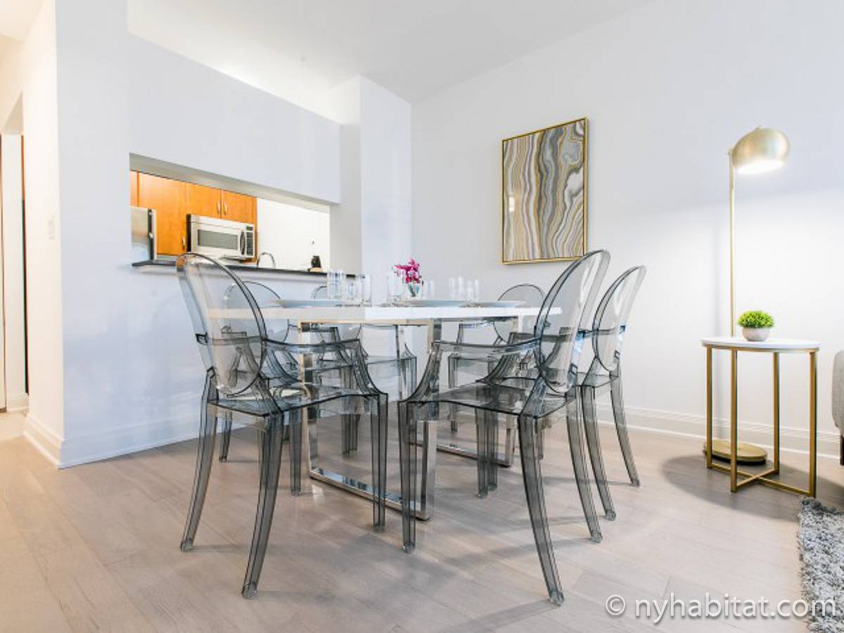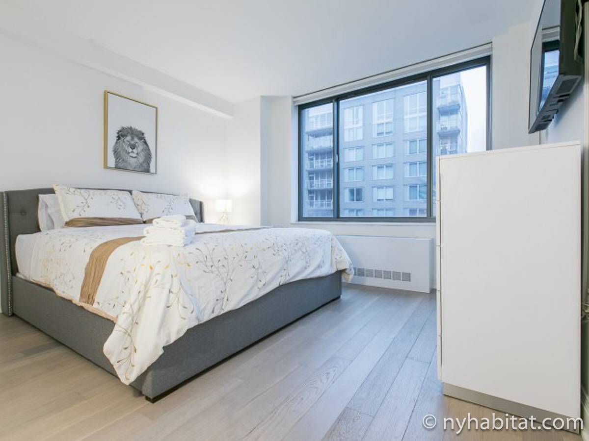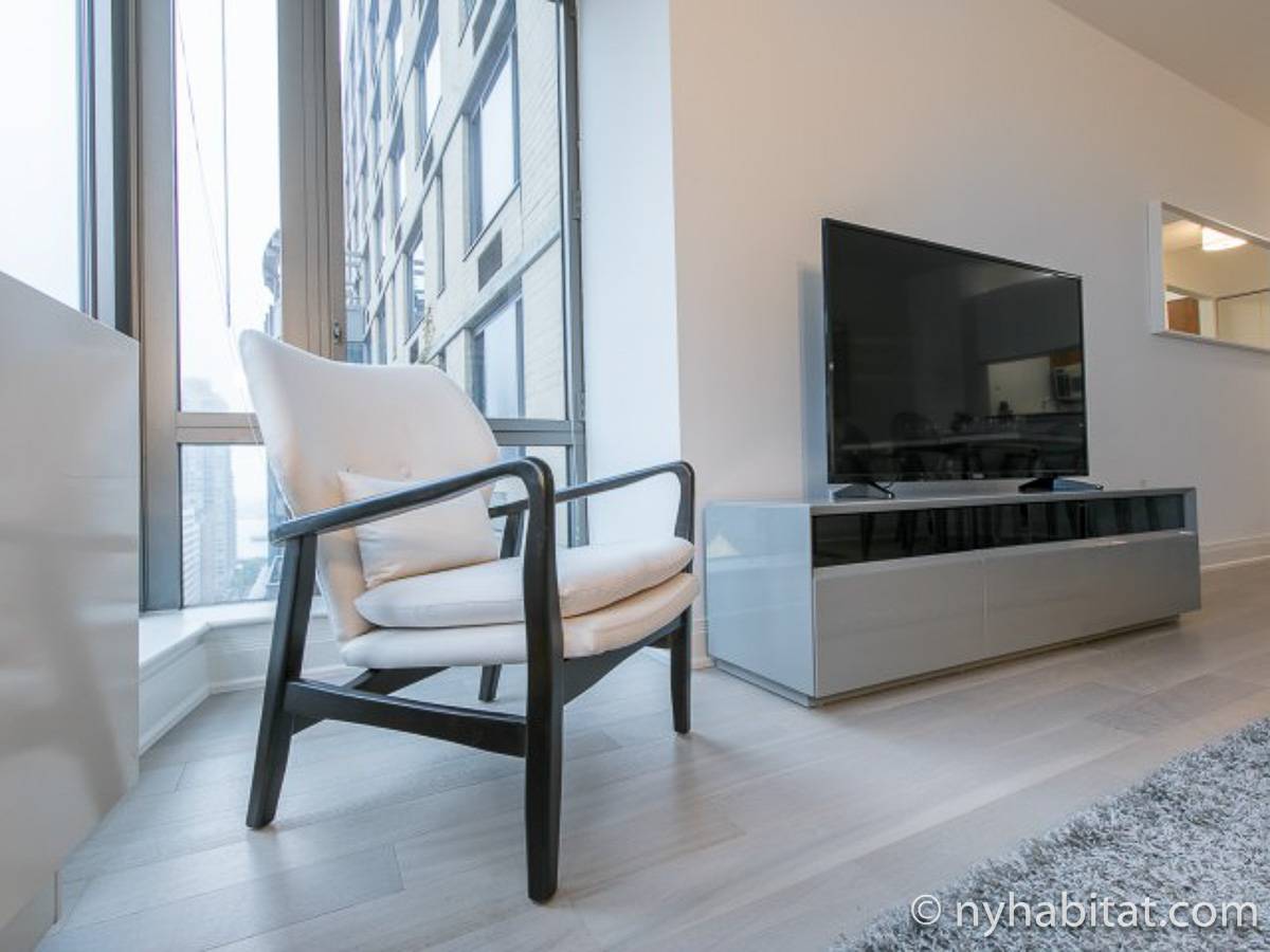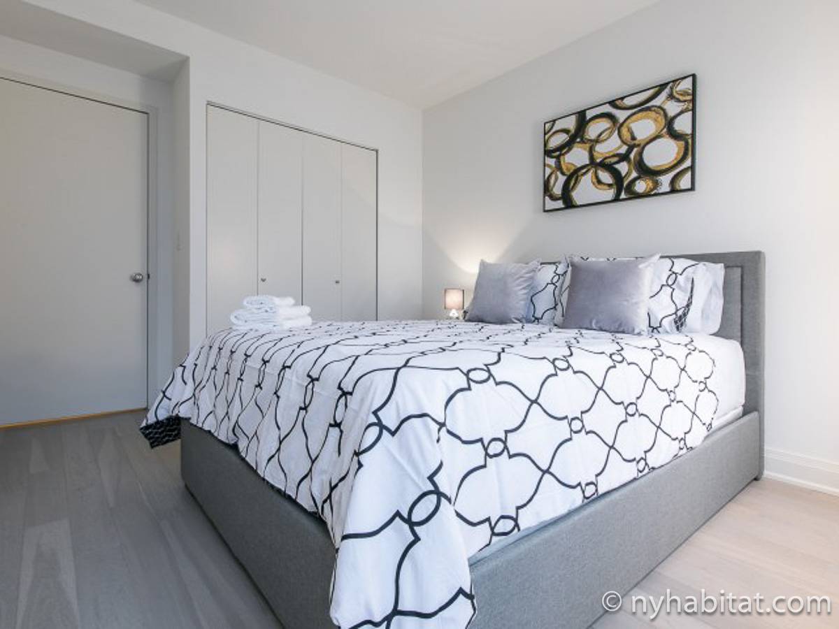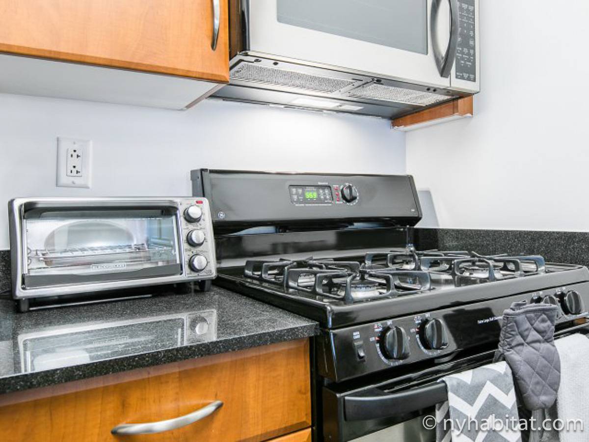 Fate di questo appartamento ammobiliato con due camere da letto e due bagni la vostra casa a New York City. L’appartamento è decorato in stile moderno, con pavimenti in legno chiaro e una combinazione di colori chiari che lo rendono arioso e luminoso. Il soggiorno dispone di molte finestre che permettono alla luce naturale di illuminare l’ambiente. In più, qui potrete godervi il lusso di avere un balcone ammobiliato dove sedervi e ammirare il panorama mentre sorseggiate un buon caffè. Concedetevi un po’ di sano relax sul divano nel soggiorno mentre guardate i vostri programmi preferiti sulla tv via cavo a schermo piatto. In alternativa, non mancherà mai l’occasione per invitare i vostri amici a cena grazie al tavolo da pranzo con sedie che si trova proprio fuori dalla cucina. La cucina è dotata di armadietti in legno di ciliegio e ha tutto ciò di cui avete bisogno per preparare le vostre ricette preferite: un piano cottura con forno, un forno a microonde a incasso, un tostapane, un frigorifero e una lavastoviglie. Entrambe le camere da letto presentano un letto queen size, tv via cavo e moltissimo spazio per conservare i vostri effetti personali. Sono disponibili lenzuola e asciugamani e il WiFi è presente in tutto l’appartamento. I due bagni completi con vasca e doccia sono una vera comodità per chi vive con la famiglia o dei coinquilini; così non dovrete mai fare la fila per il bagno.