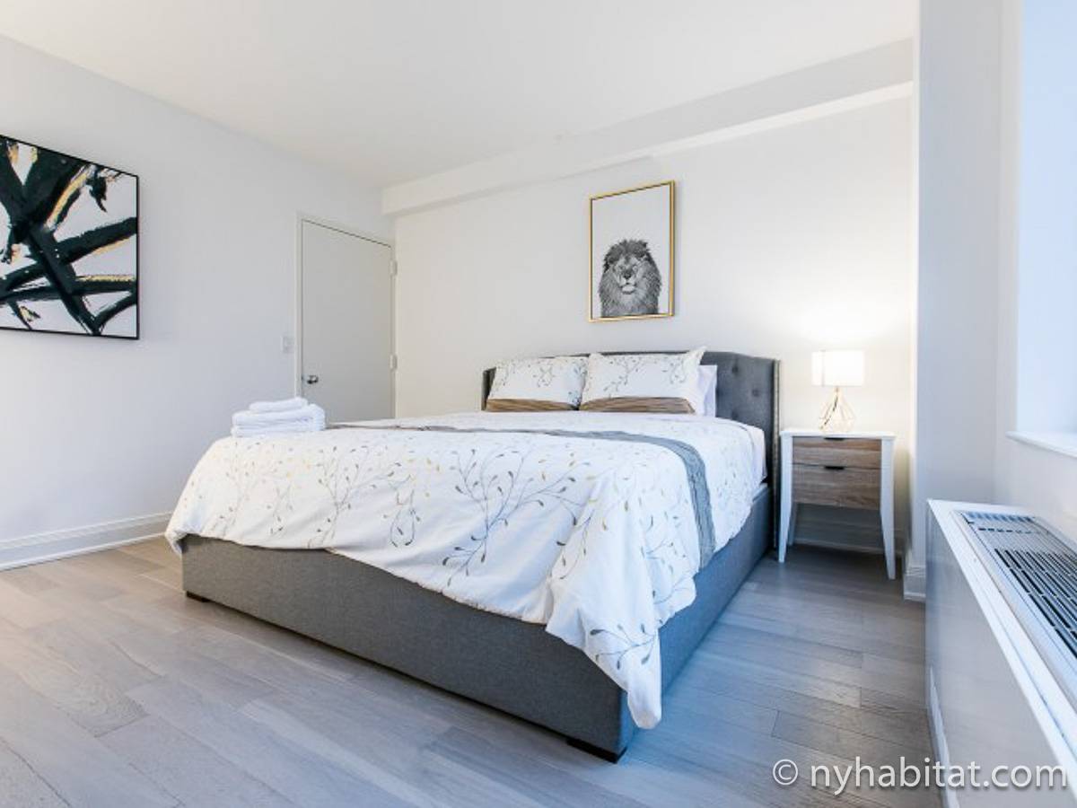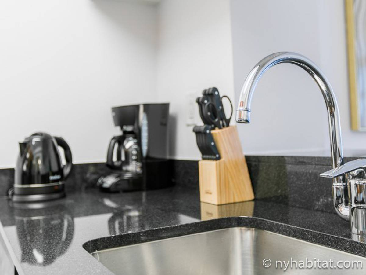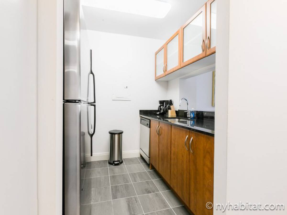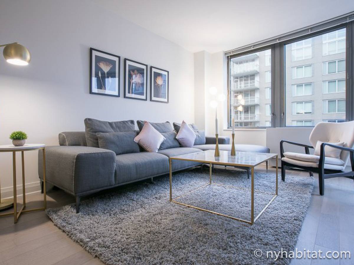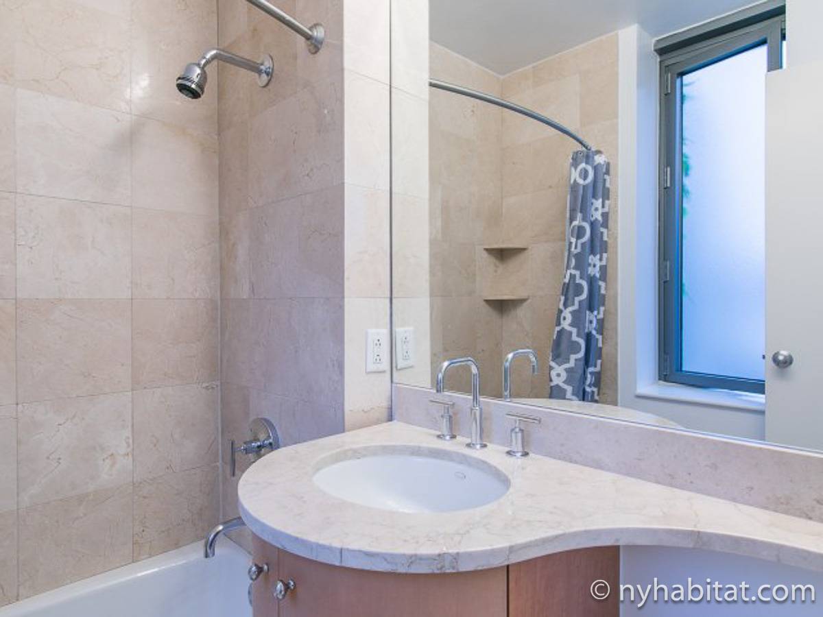 Fate di questo appartamento ammobiliato con due camere da letto e due bagni la vostra casa a New York City. L’appartamento è decorato in stile moderno, con pavimenti in legno chiaro e una combinazione di colori chiari che lo rendono arioso e luminoso. Il soggiorno dispone di molte finestre che permettono alla luce naturale di illuminare l’ambiente. In più, qui potrete godervi il lusso di avere un balcone ammobiliato dove sedervi e ammirare il panorama mentre sorseggiate un buon caffè. Concedetevi un po’ di sano relax sul divano nel soggiorno mentre guardate i vostri programmi preferiti sulla tv via cavo a schermo piatto. In alternativa, non mancherà mai l’occasione per invitare i vostri amici a cena grazie al tavolo da pranzo con sedie che si trova proprio fuori dalla cucina. La cucina è dotata di armadietti in legno di ciliegio e ha tutto ciò di cui avete bisogno per preparare le vostre ricette preferite: un piano cottura con forno, un forno a microonde a incasso, un tostapane, un frigorifero e una lavastoviglie. Entrambe le camere da letto presentano un letto queen size, tv via cavo e moltissimo spazio per conservare i vostri effetti personali. Sono disponibili lenzuola e asciugamani e il WiFi è presente in tutto l’appartamento. I due bagni completi con vasca e doccia sono una vera comodità per chi vive con la famiglia o dei coinquilini; così non dovrete mai fare la fila per il bagno.