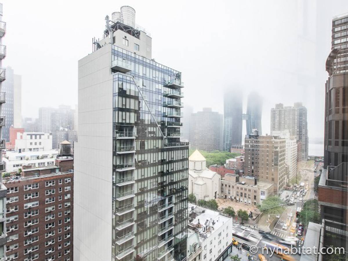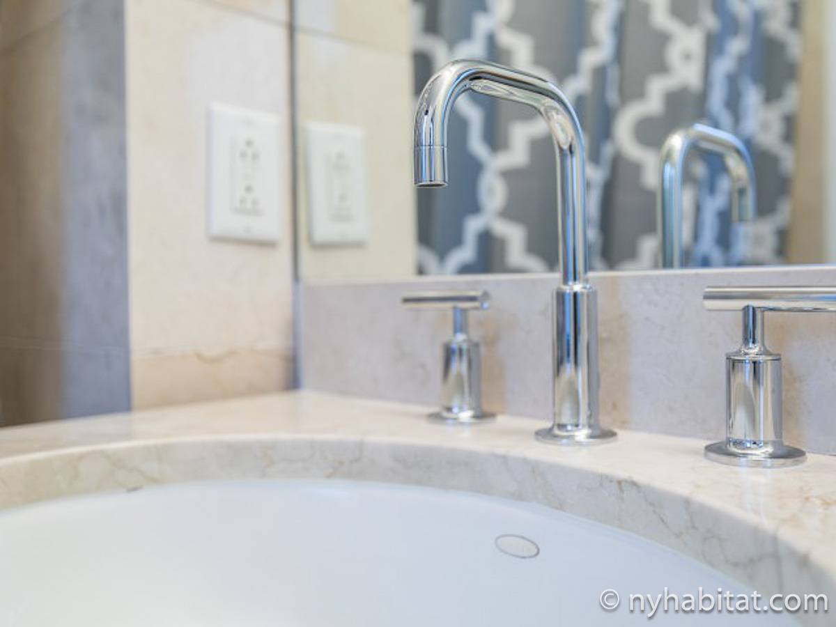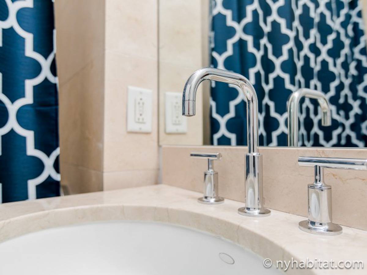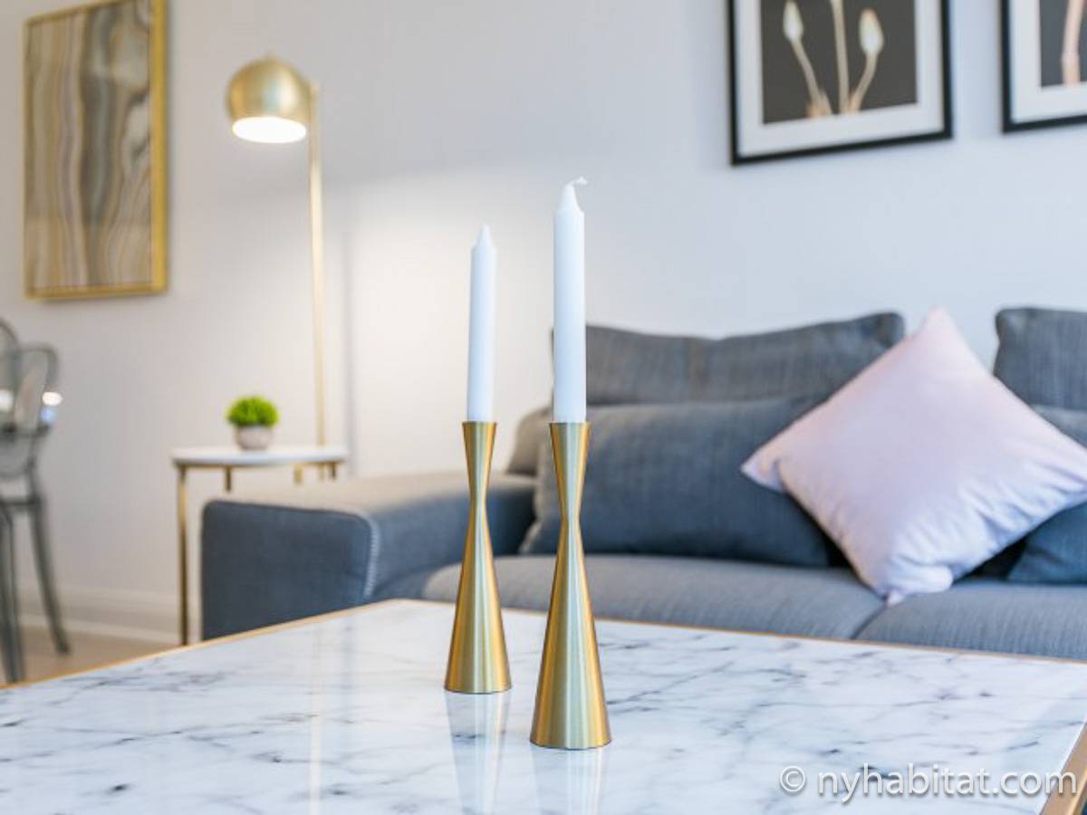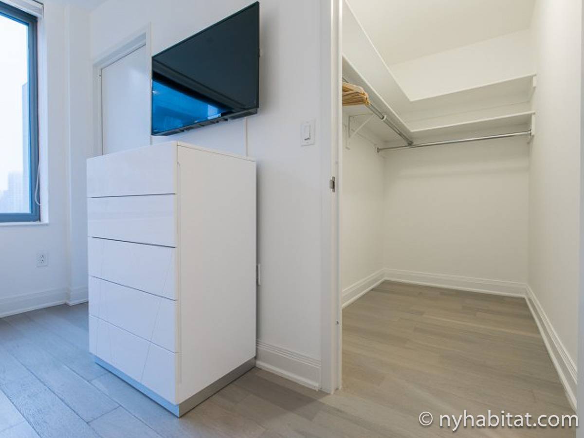 Fate di questo appartamento ammobiliato con due camere da letto e due bagni la vostra casa a New York City. L’appartamento è decorato in stile moderno, con pavimenti in legno chiaro e una combinazione di colori chiari che lo rendono arioso e luminoso. Il soggiorno dispone di molte finestre che permettono alla luce naturale di illuminare l’ambiente. In più, qui potrete godervi il lusso di avere un balcone ammobiliato dove sedervi e ammirare il panorama mentre sorseggiate un buon caffè. Concedetevi un po’ di sano relax sul divano nel soggiorno mentre guardate i vostri programmi preferiti sulla tv via cavo a schermo piatto. In alternativa, non mancherà mai l’occasione per invitare i vostri amici a cena grazie al tavolo da pranzo con sedie che si trova proprio fuori dalla cucina. La cucina è dotata di armadietti in legno di ciliegio e ha tutto ciò di cui avete bisogno per preparare le vostre ricette preferite: un piano cottura con forno, un forno a microonde a incasso, un tostapane, un frigorifero e una lavastoviglie. Entrambe le camere da letto presentano un letto queen size, tv via cavo e moltissimo spazio per conservare i vostri effetti personali. Sono disponibili lenzuola e asciugamani e il WiFi è presente in tutto l’appartamento. I due bagni completi con vasca e doccia sono una vera comodità per chi vive con la famiglia o dei coinquilini; così non dovrete mai fare la fila per il bagno.