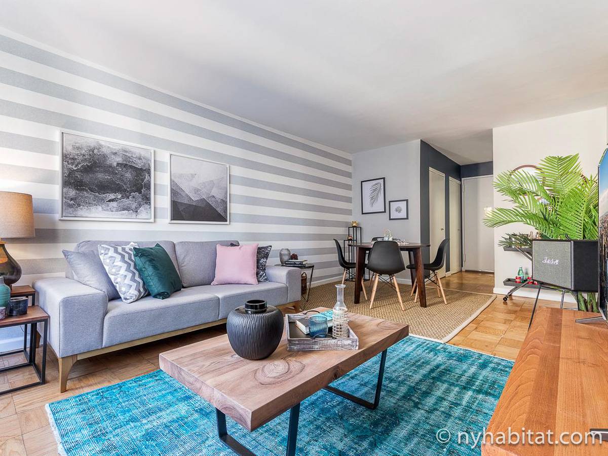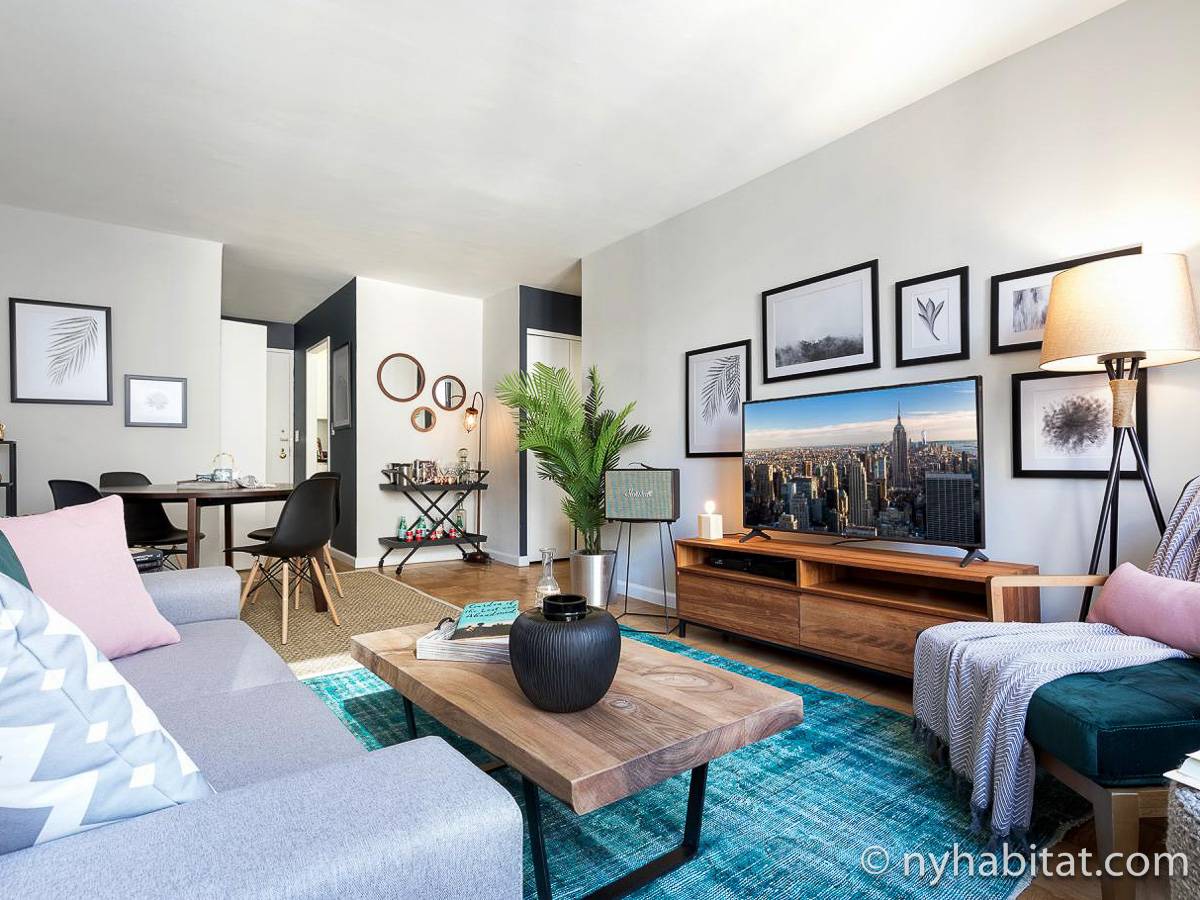 Questo appartamento con una camera da letto offre la perfetta combinazione tra la vita frenetica del centro di Manhattan e la tranquillità di Kips Bay. L’appartamento emana un vero e proprio senso di casa grazie ai pavimenti in legno, alle pareti dai toni chiari e neutri e ai muri d’accento che aggiungono un tocco di colore all’ambiente. Accoccolatevi sul divano del soggiorno e godetevi i vostri programmi preferiti sul televisore a schermo piatto con Apple TV dal confort del vostro elegante rifugio newyorchese. Un tappeto da sala di colore azzurro cielo crea un’atmosfera luminosa e vivace, mentre le finestre permettono l’ingresso della luce naturale e regalano uno splendido panorama della città. La cucina dispone di armadietti bianchi ed elettrodomestici in acciaio inox, compresa una lavastoviglie, ed è interamente attrezzata di tutto il necessario per preparare i vostri piatti preferiti, mentre il tavolo da pranzo per quattro persone vi permetterà di organizzare le migliori cene tra amici in tutta comodità. Nella camera da letto, davanti al muro d’accento di colore verde, troverete un letto queen size con struttura in legno e dei comodini abbinati, più un piacevole tappeto e uno specchio a figura intera. Il bagno è dotato di una vasca con doccia. Sono disponibili pentole, stoviglie, lenzuola, asciugamani e aria condizionata per rinfrescare l’ambiente. Il WiFi è presente in tutto l’appartamento.