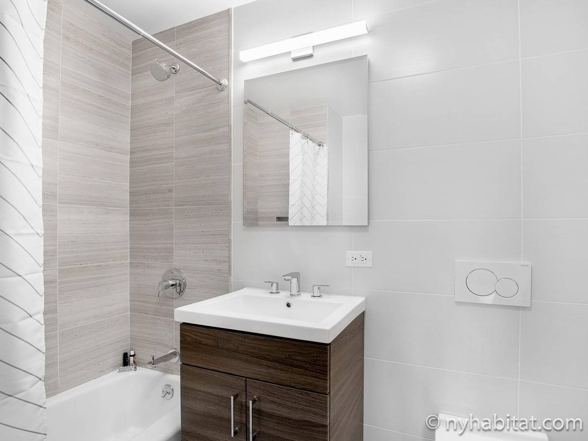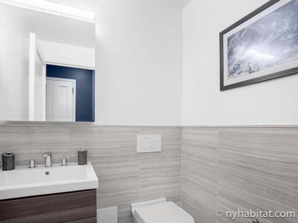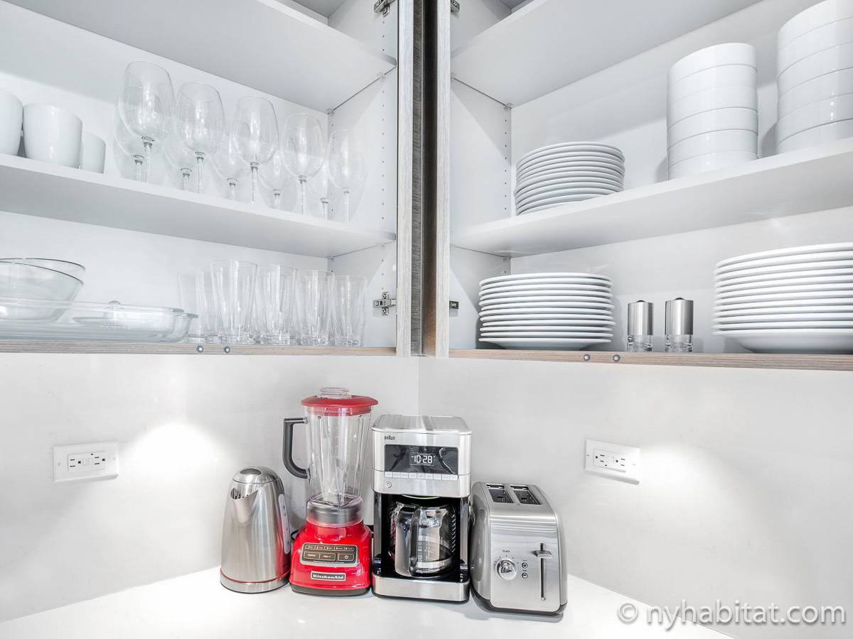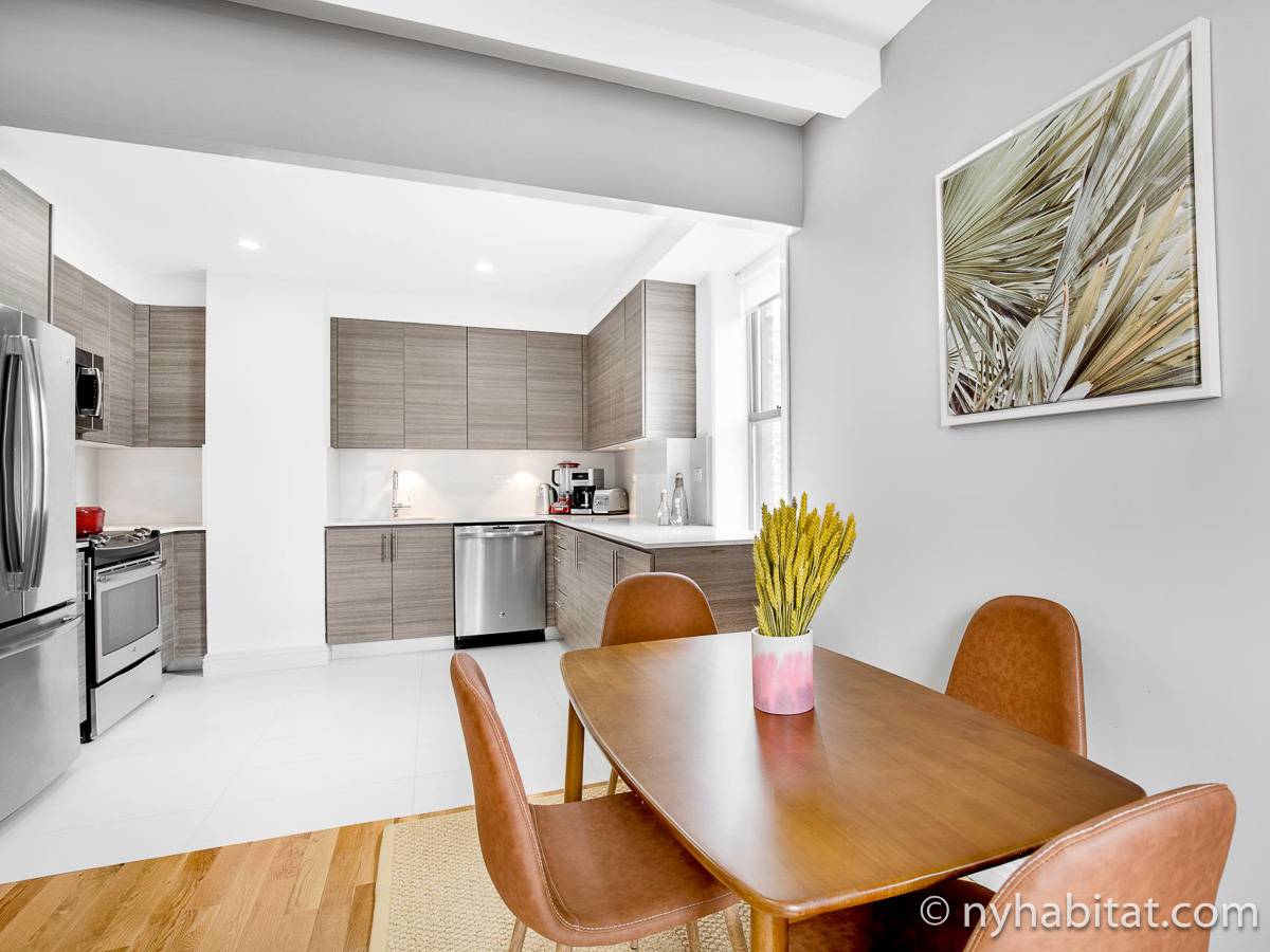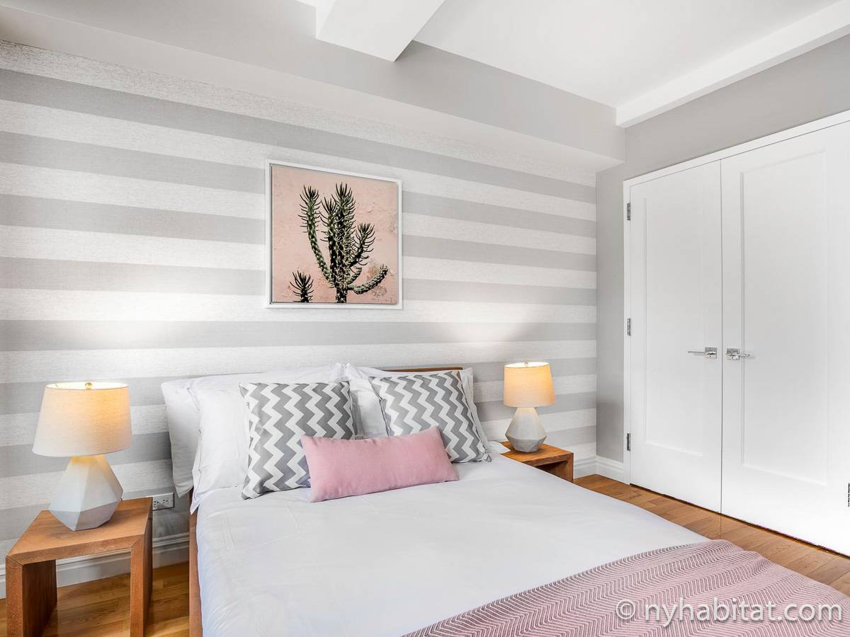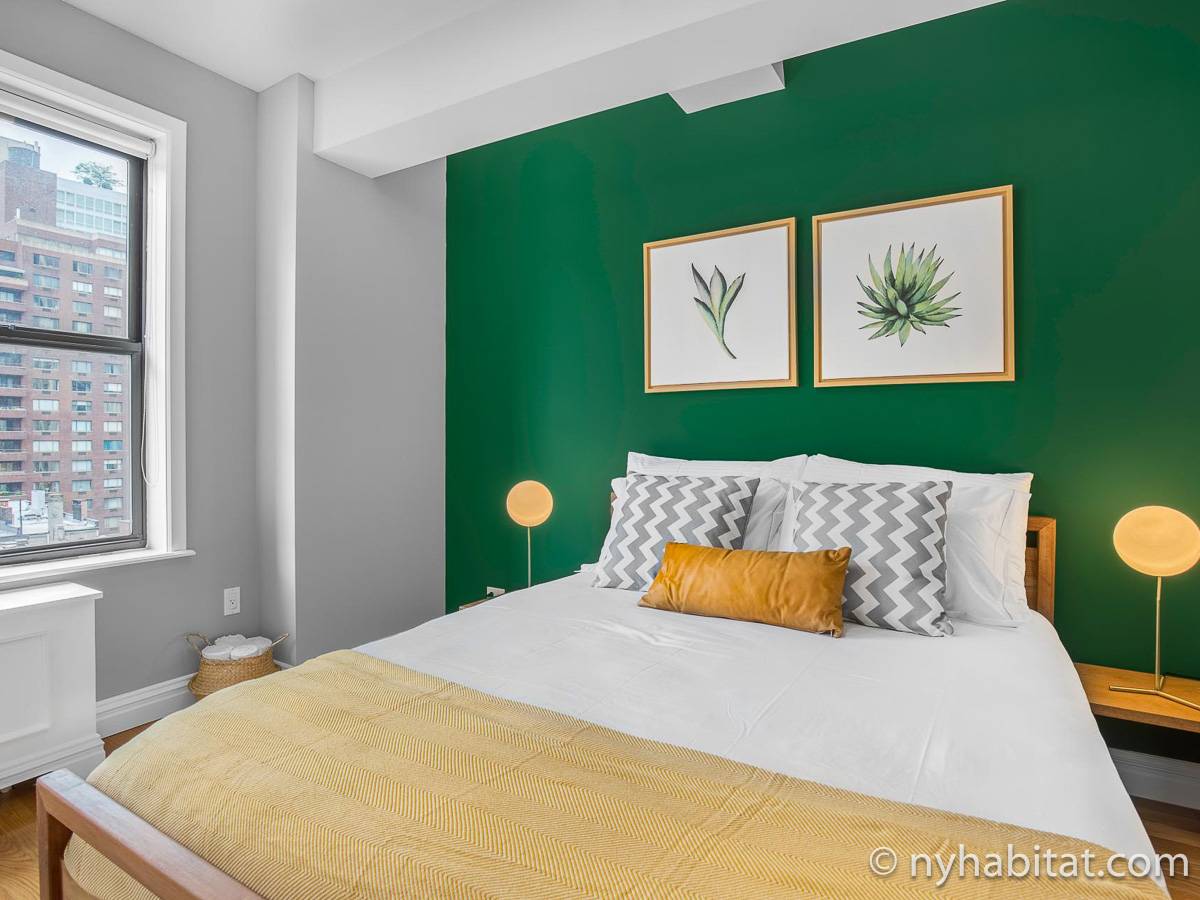 Questo appartamento ammobiliato con due camere da letto, un bagno e un WC si trova all’ottavo piano (settimo piano in Europa) di un grattacielo dotato di ascensore e portiere e situato tra West 70th Street e Amsterdam Avenue, nell’Upper West Side di Manhattan.