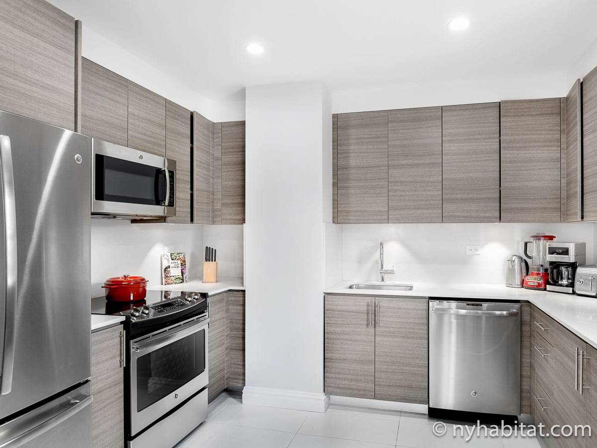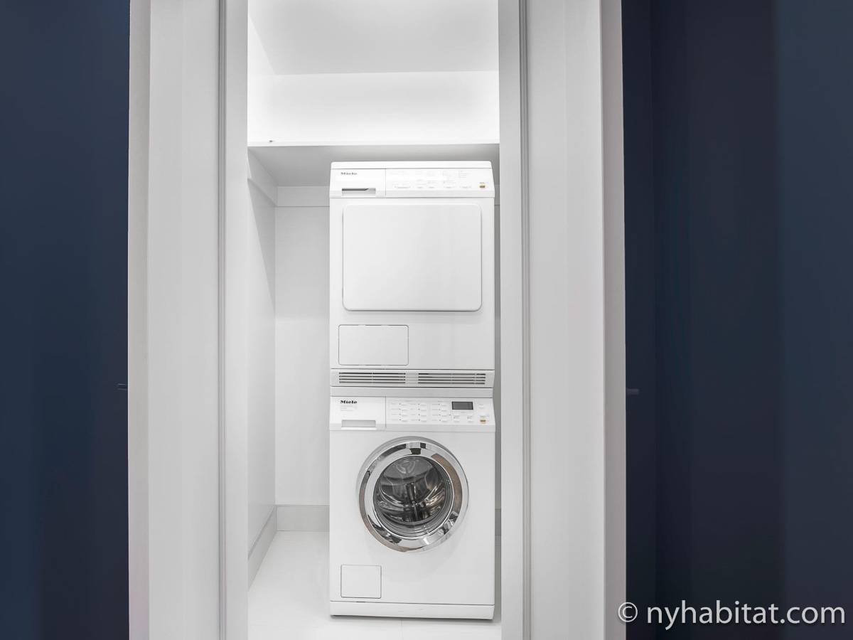 L’appartamento dispone di vistosi muri d’accento colorati e pavimenti in legno massello. Nel soggiorno si trovano un divano, un tavolino da caffè in legno, un televisore a schermo piatto e un tavolo da pranzo sul quale assaporare le delizie preparate in casa. L’ampia cucina a vista è dotata di moderni armadietti, banconi ed elettrodomestici in acciaio inox, tra i quali un piano cottura con forno, un forno a microonde, un tostapane, un mixer, una macchinetta per il caffè americano, un frigorifero e una lavastoviglie. Entrambe le camere da letto sono complete di letti queen size con strutture in legno, comodini e armadi nei quali potrete conservare i vostri effetti personali. Come se non bastasse, avrete la comodità di una lavatrice e un’asciugatrice private, così come di un bagno e un WC, entrambi completi di elementi moderni, uno dotato di una vasca con doccia e l’altro composto da un lavandino e un WC.