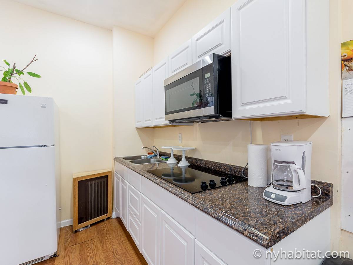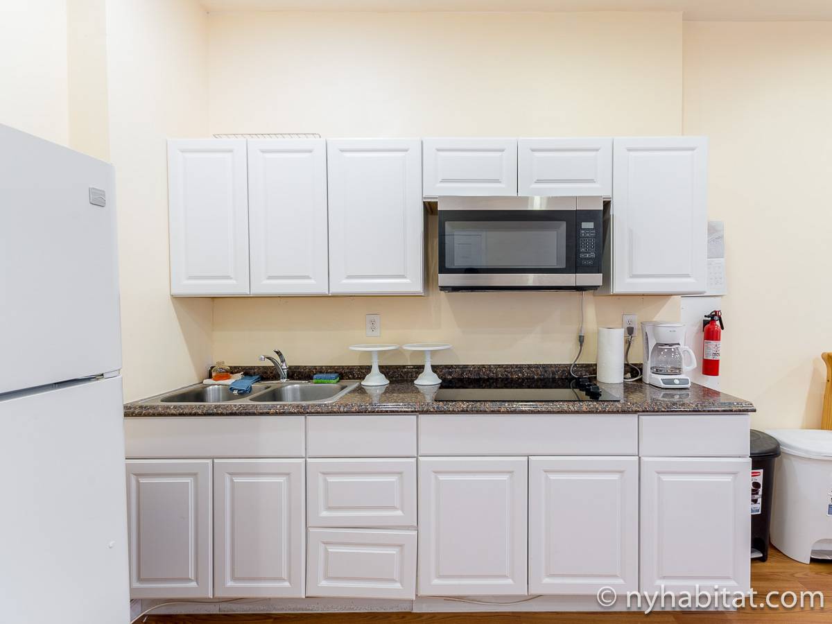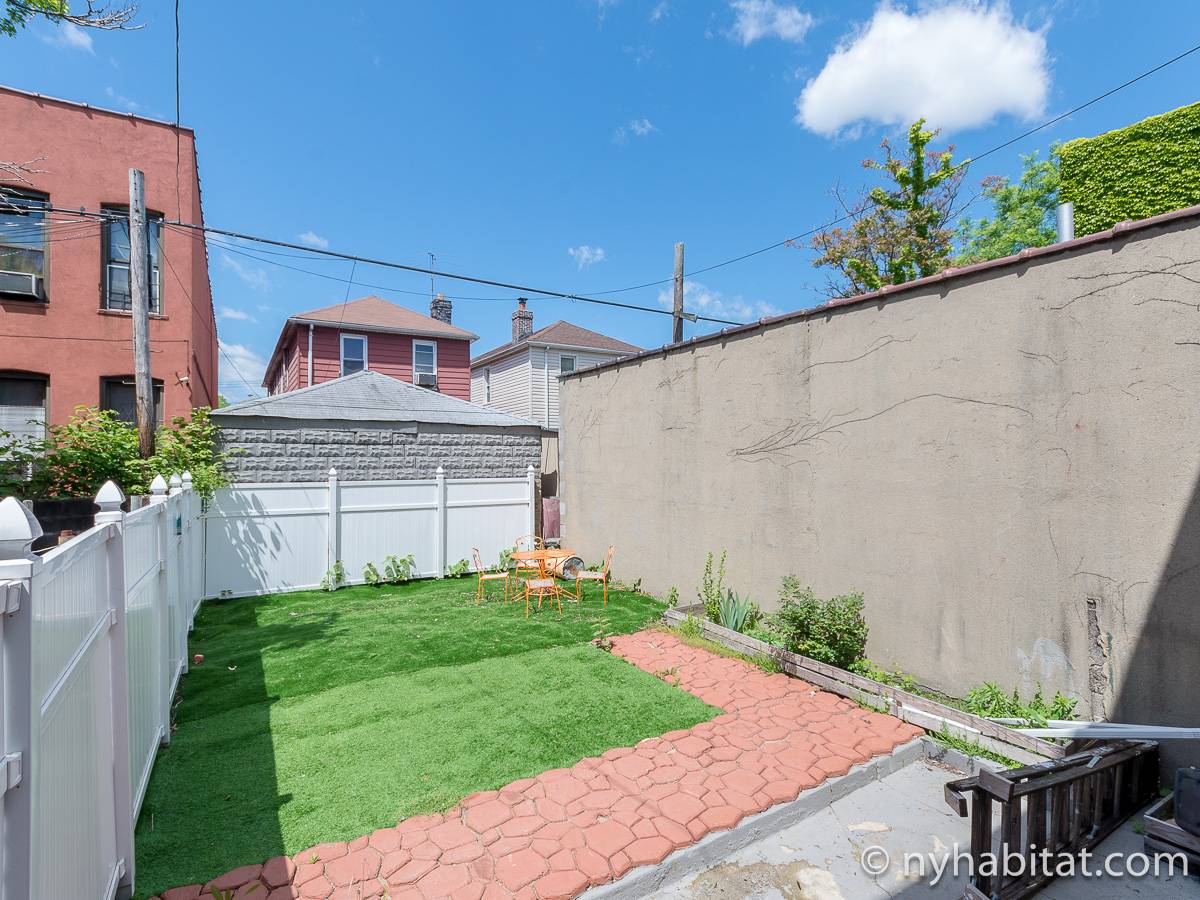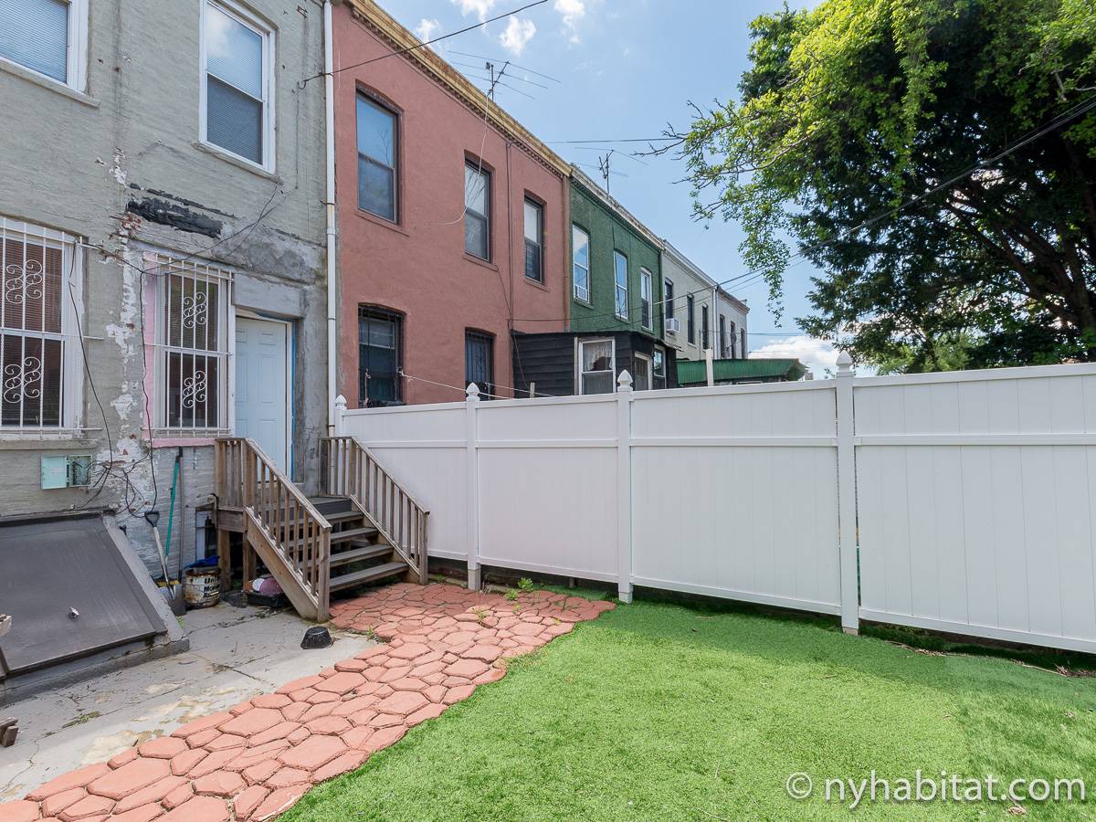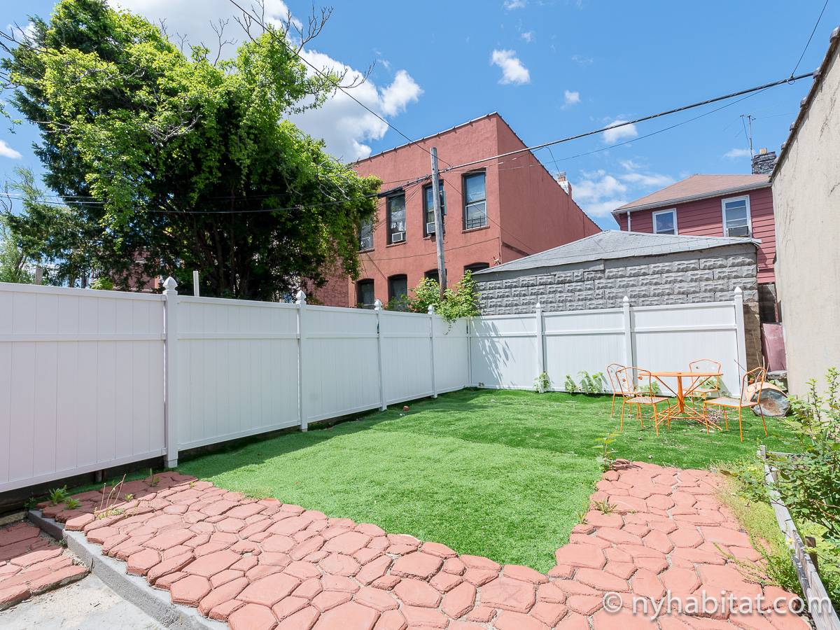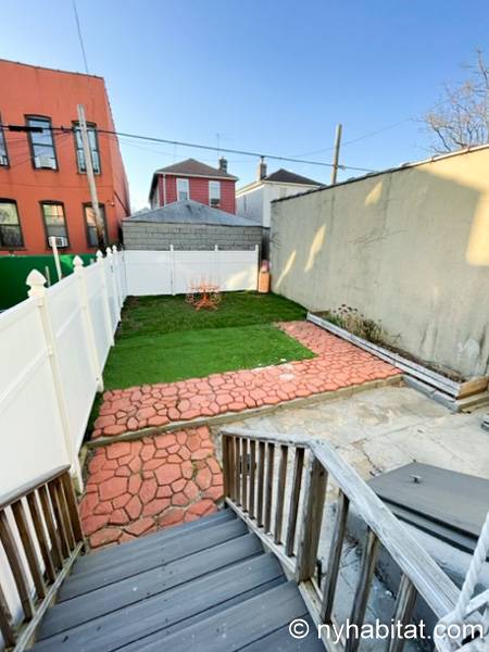 Questo appartamento ammobiliato con tre camere da letto a New York è disponibile come appartamento completo, oppure si può affittare solo una camera da letto e condividere gli spazi comuni dell'appartamento con altri inquilini. Questo lo rende un'ottima opzione per una famiglia o un gruppo di amici alla ricerca di un alloggio spazioso o per uno studente con un budget limitato che vuole affittare solo una camera da letto e condividere il resto delle aree comuni dell'appartamento. La proprietà presenta pavimenti in legno massiccio in tutta la casa e numerose finestre che permettono alla luce naturale di riempire lo spazio. Nel soggiorno ci sono molti posti per sedersi, tra cui un divano e una poltrona, e una TV a schermo piatto per l'intrattenimento. Vicino alla cucina open space si trova un tavolo da pranzo, dove potrete sedervi per gustare un pasto cucinato in casa. La cucina aperta ha mobili bianchi ed è dotata di fornelli/forno, frigorifero e microonde. La camera da letto n.1 si affaccia sulla parte anteriore della casa, con tre finestre che la circondano e forniscono molta luce solare. Questa camera è arredata con due letti singoli, una scrivania per studiare e un cassettone per riporre gli oggetti. La camera da letto n.2 si affaccia sul giardino posteriore dell'edificio e dispone anch'essa di due letti singoli e di una scrivania per studiare. Anche la camera da letto n.3 si affaccia sul giardino posteriore ed è arredata con un letto matrimoniale, una scrivania e un armadio per riporre gli oggetti. Il primo bagno ha una combinazione di vasca con doccia, lavabo e sanitari, mentre il secondo bagno è dotato di doccia, lavabo e sanitari. Dalla camera da letto n.3 si accede al giardino sul retro.
