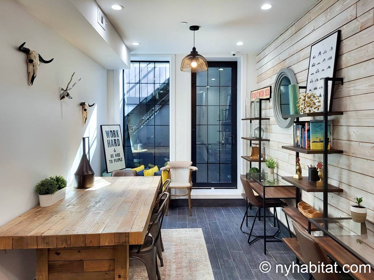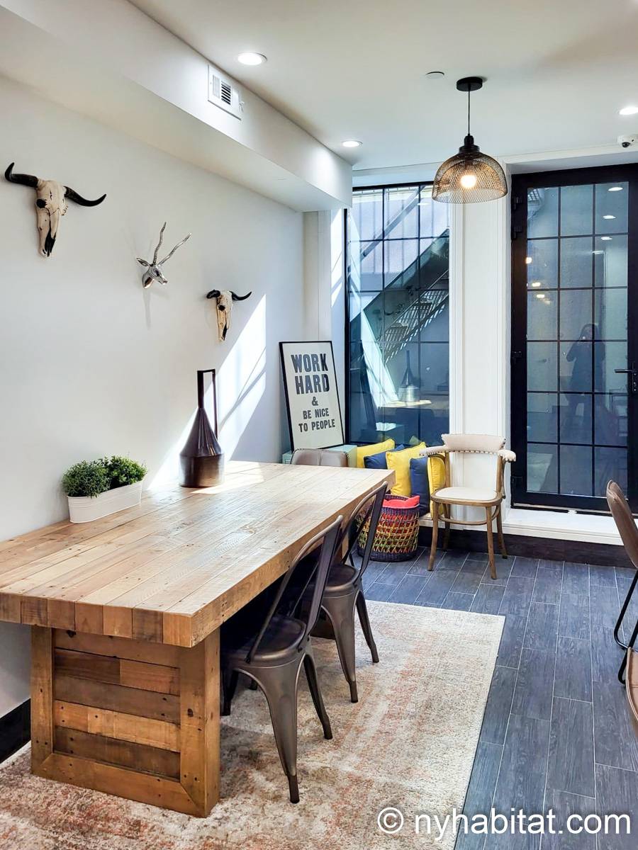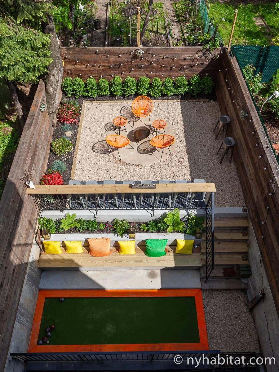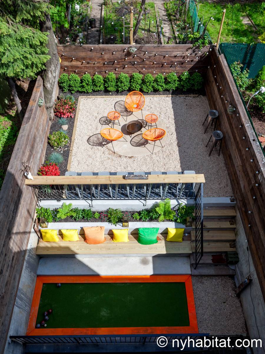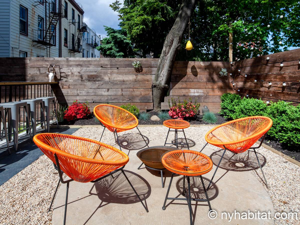 Apprezzerete la comodità dei dispositivi elettronici altamente tecnologici come Google Home, i termostati ecologici Nest e il videocitofono di questo edificio. Per godervi un po' di sole, sul retro c'è un giardino comune su più livelli, completo di campo da bocce, posti a sedere all'aperto e piante verdi. Bushwick offre una varietà di opzioni per la vita notturna e la ristorazione. Incontrate gli amici per un drink al lounge di quartiere Aunt Ginny's (652 Woodward Avenue) o prendete caffè e bagel al Mixtape Bushwick (1533 Myrtle Avenue).