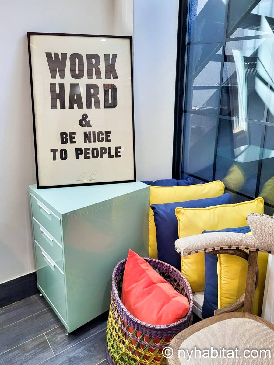 Godetevi un appartamento con vista affittando questo soleggiato appartamento con una camera da letto e grandi finestre vicino a Harman Street e Saint Nicholas Avenue nel quartiere Bushwick di Brooklyn. L'appartamento si trova al secondo piano (corrispondente al primo piano europeo) di un edificio senza ascensore. Questo edificio condiviso offre un senso di comunità e di connessione tra i suoi residenti – perfetto per chi è nuovo a New York! L'edificio combina elettronica e stile all'avanguardia e c’è un vicino che organizza eventi nell'edificio e fornisce consigli sulla zona. Nell’edificio è presente anche una lavanderia.