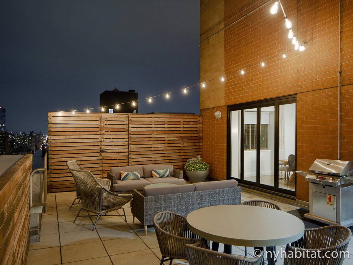Vivete nell'Upper West Side di Manhattan in questo appartamento ammobiliato con una camera da letto situato al 9° piano (corrispondente all'8° piano europeo) di un edificio di media altezza, in cui sono accettati gli animali domestici, con ascensore, portiere a tempo pieno, lavanderia e palestra. L'edificio si trova vicino alla 89th Street e ad Amsterdam Avenue e dispone di servizi di lusso, tra cui un solarium panoramico sul tetto con griglie per il barbecue e splendida vista sulla città, una lounge per i residenti e un centro fitness all'avanguardia.