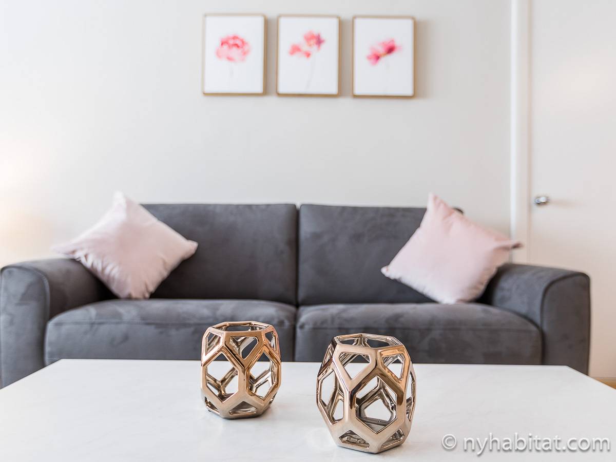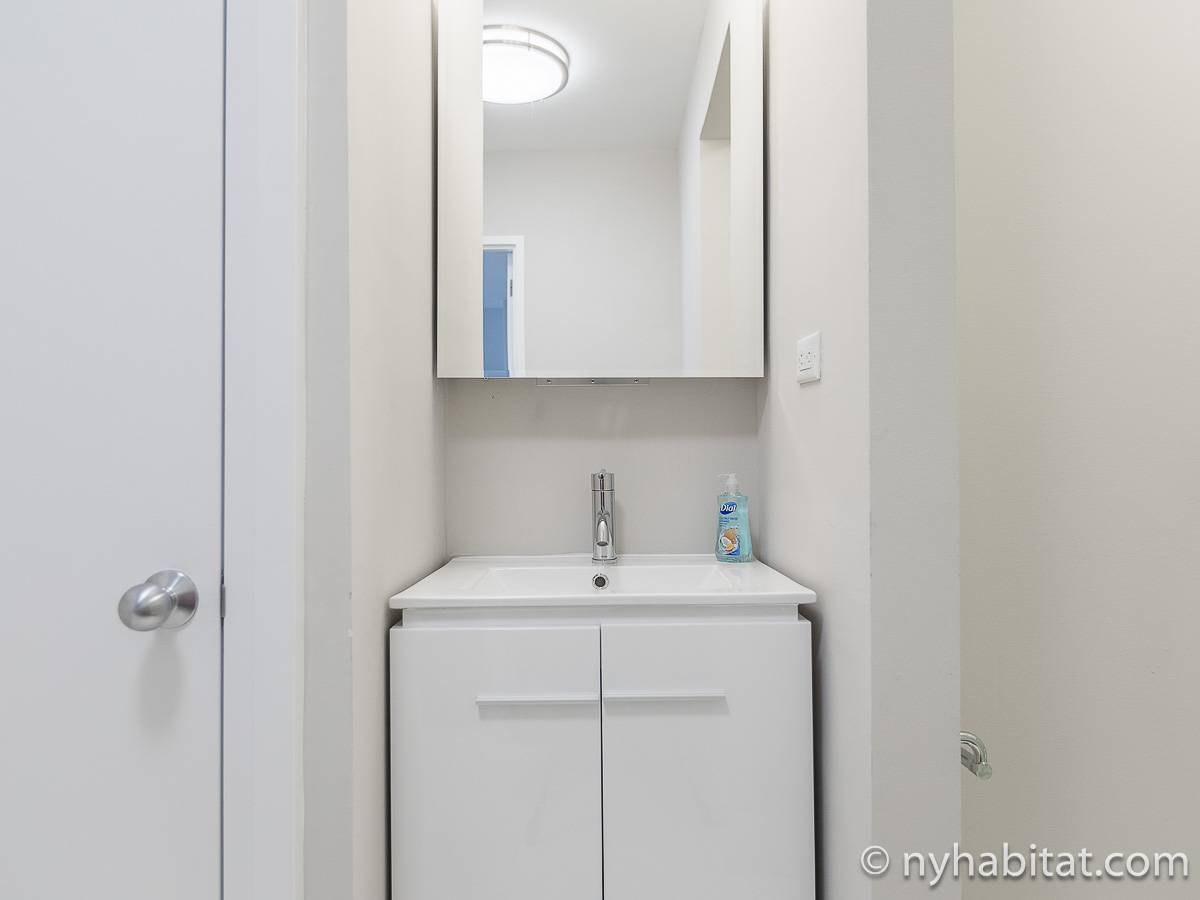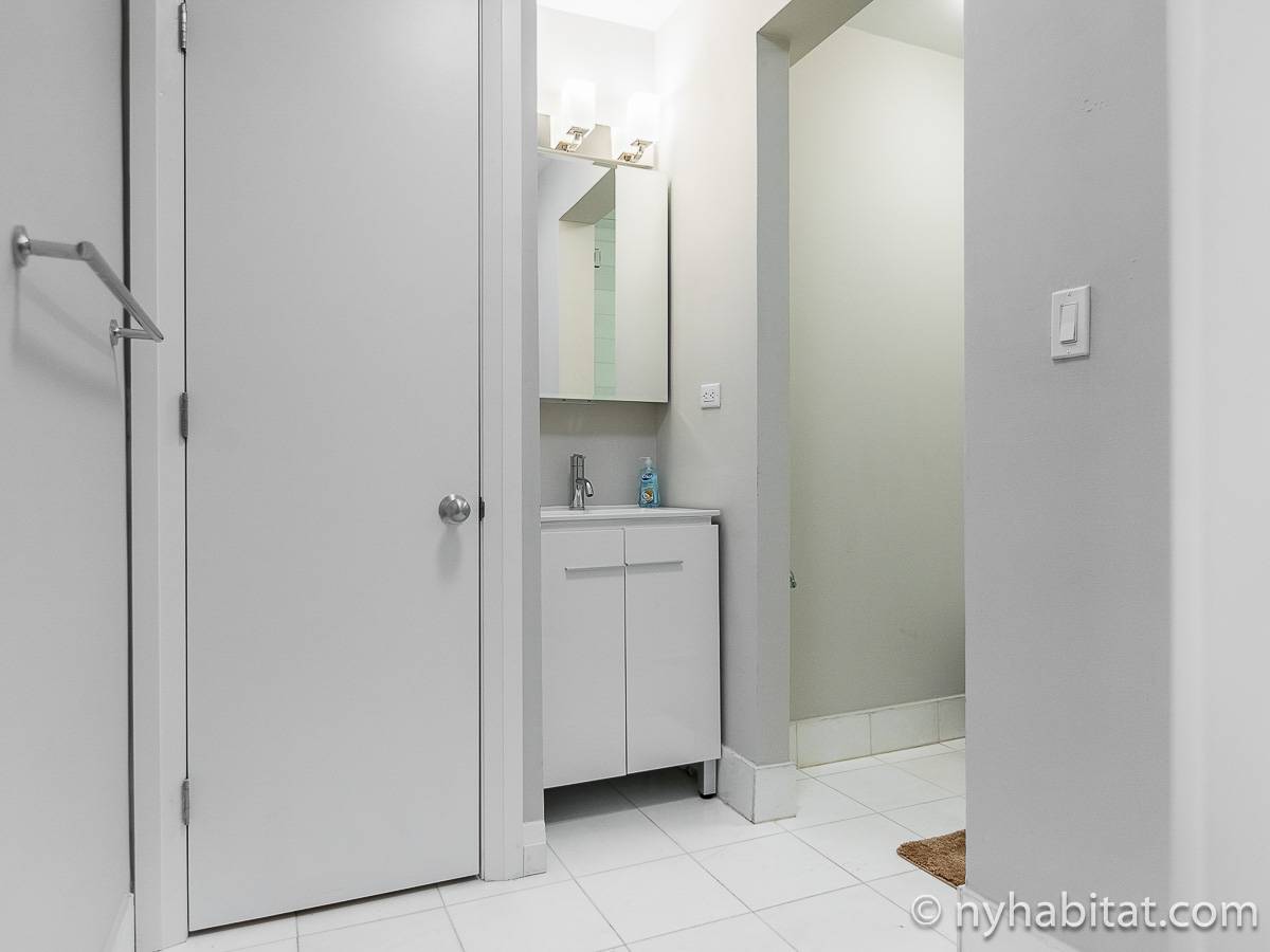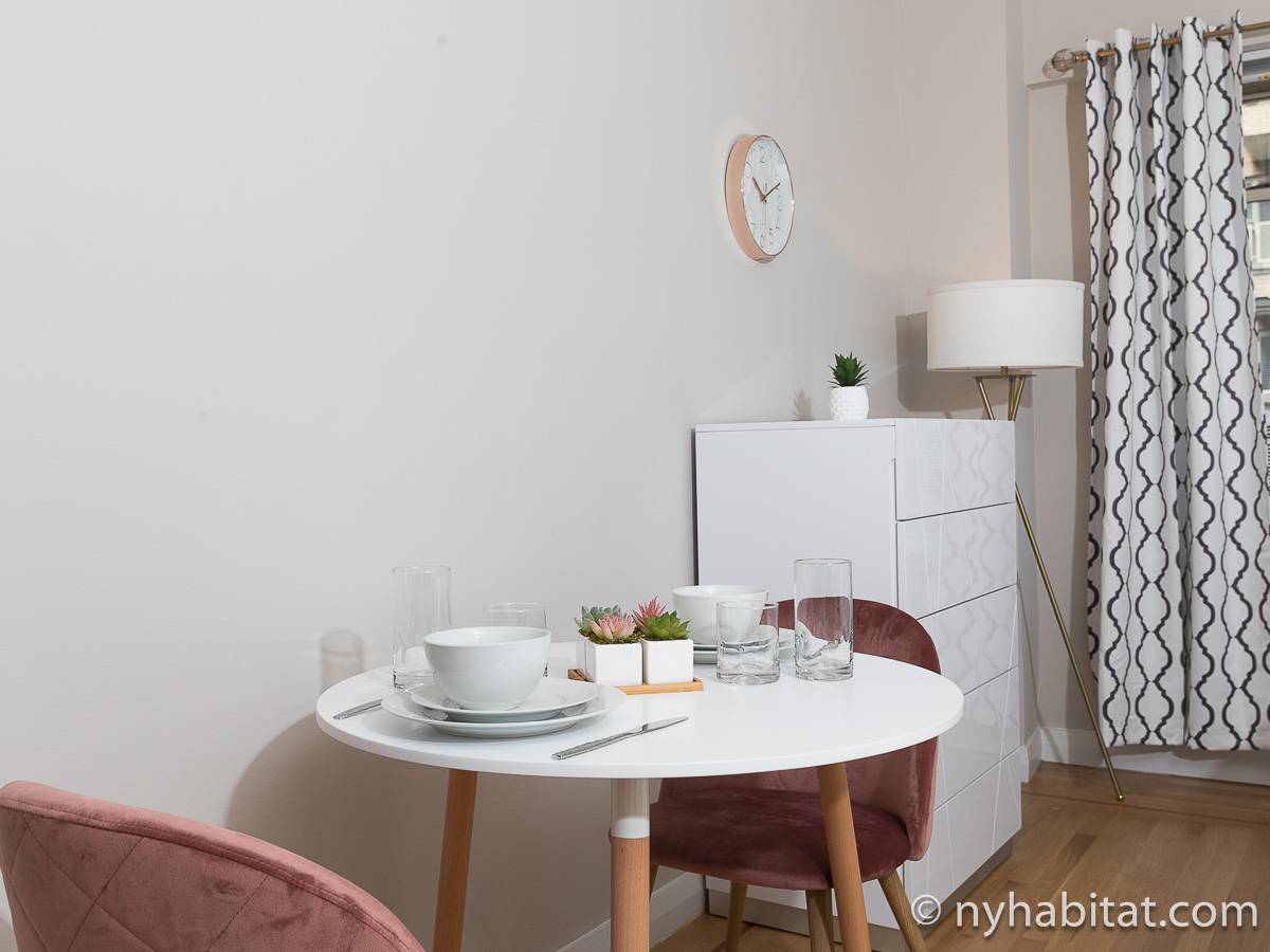 Questo stiloso monolocale dispone di tutto il necessario per aiutarvi durante il vostro trasferimento a New York City. Questo appartamento dispone di wi-fi e condizionatore. L’area soggiorno è arredata con tappeto, divano grigio scuro, tavolino e tv a schermo piatto a muro per una serata cinema in tutta comodità. Il tavolo da pranzo per due è l’ideale per gustare pasti fatti in casa. L’ampia cucina è dotata di credenza bianca, illuminazione a binario ed elettrodomestici in acciaio inox, inclusi fornelli e forno, microonde, caffettiera e frigorifero. Al capo opposto dell’appartamento, vicino alla finestra troverete un letto queen size pronto ad accogliervi dopo una lunga giornata, accompagnato da comodino e cassettiera. Il bagno bianco è dotato di una cabina doccia moderna.
