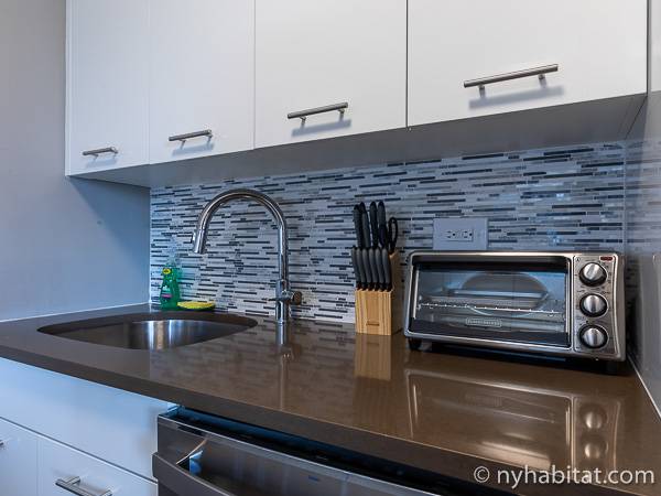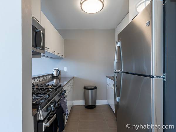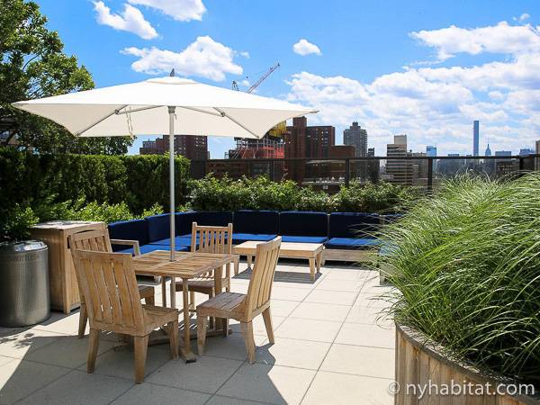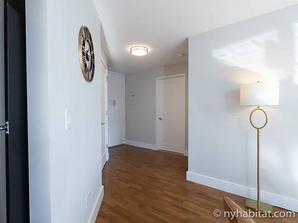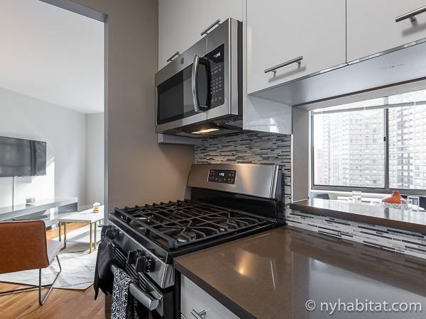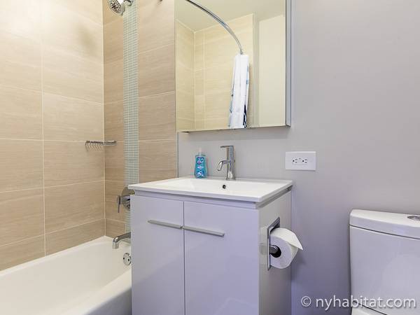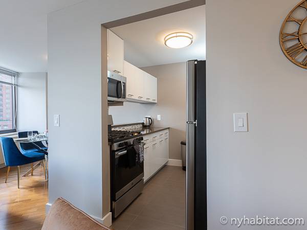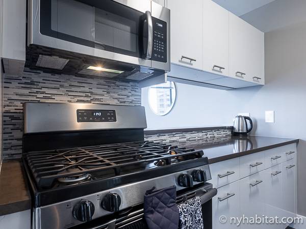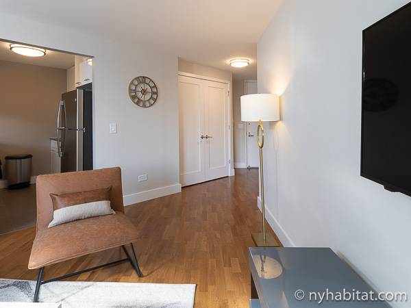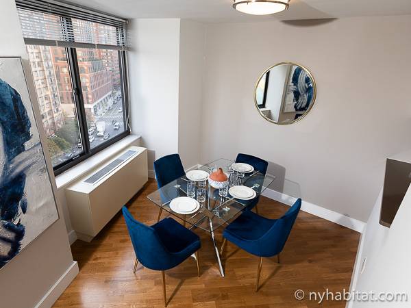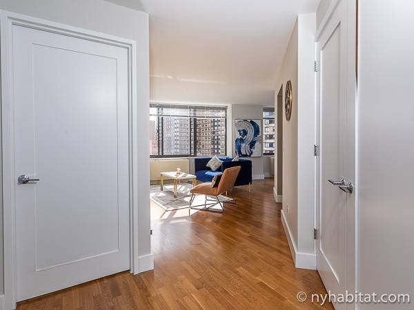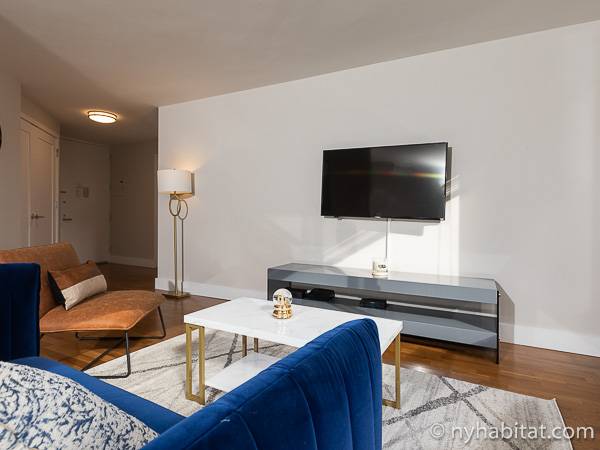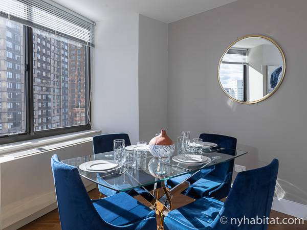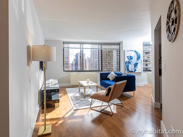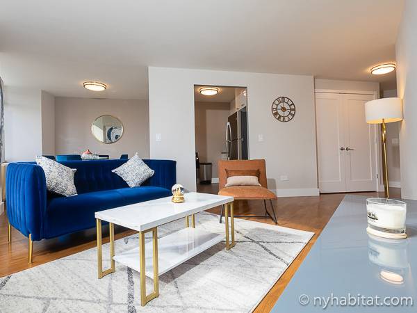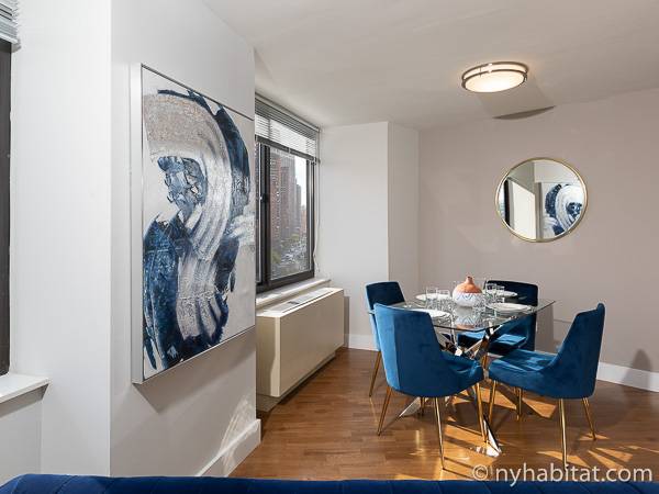 Le numerose finestre di questo appartamento ammobiliato con una camera da letto dell’Upper East Side vi permetteranno di godervi la vista su New York City comodamente a casa vostra. L'appartamento è decorato con gusto da pavimenti in legno massello e arredi di classe, vi sentirete viziati non appena vi metterete piede. Il colorato divano blu e le sedie aggiungono un tocco di energia all’arredamento. Rilassatevi sul divano e godetevi la vostra tv a schermo piatto. Il tavolo da pranzo in vetro per quattro è l’ideale per mangiare godendosi la vista sulla città. La cucina è dotata di credenza bianca, piano da lavoro in granito ed equipaggiata con elettrodomestici in acciaio inox inclusi frigorifero, fornelli a gas e forno e una comoda lavastoviglie. La cucina ha un piano da lavoro che si affaccia sull’area da pranzo così potrete discutere con i vostri ospiti mentre cucinate. La camera da letto color bianco nuvola è dotata di letto queen size, comodini, cassettiera e tv a schermo piatto. Lenzuola e asciugamani sono inclusi. Il bagno è dotato di vasca con doccia integrata, lavandino con mobiletto sottostante, specchio e gabinetto.
