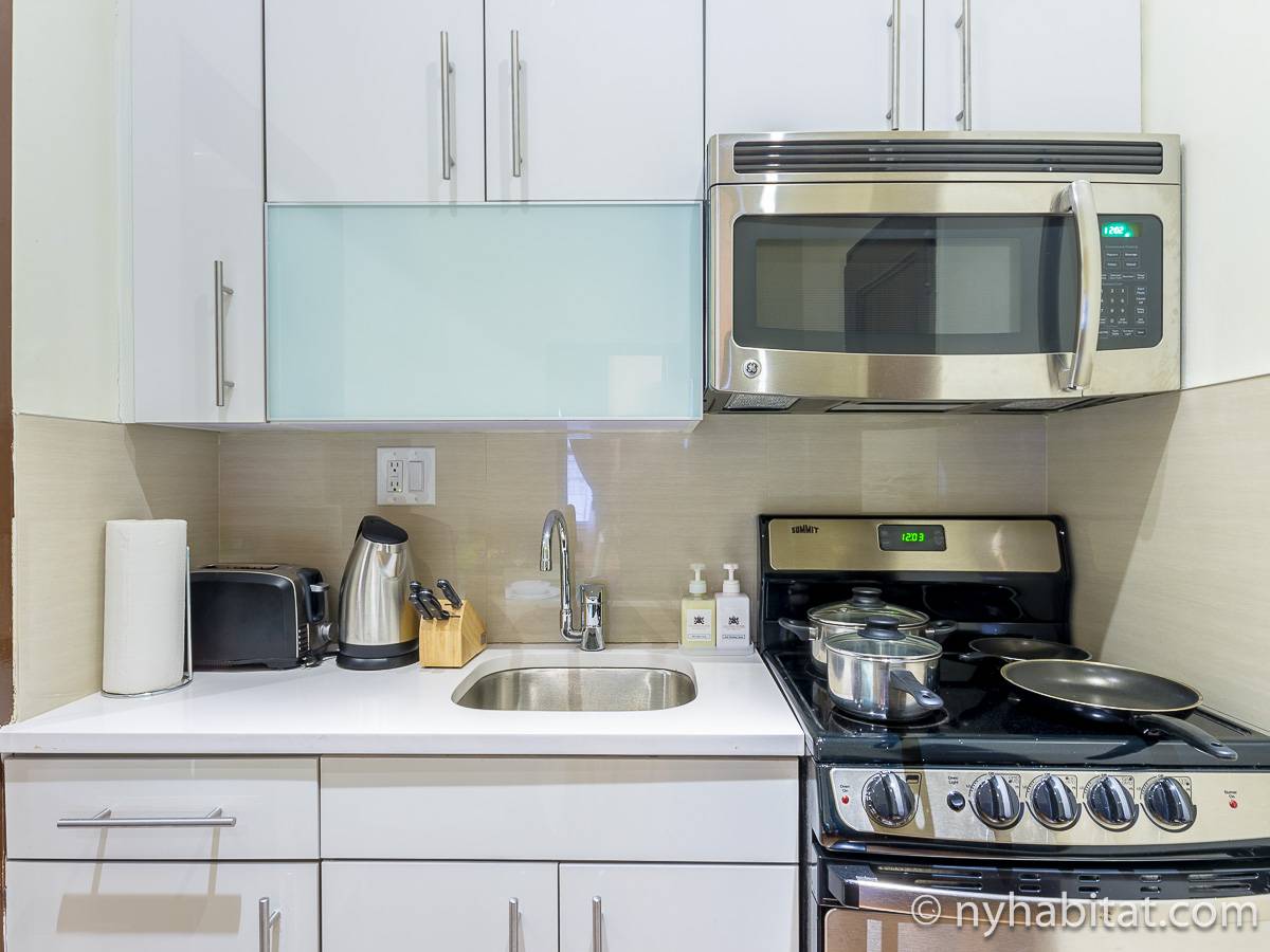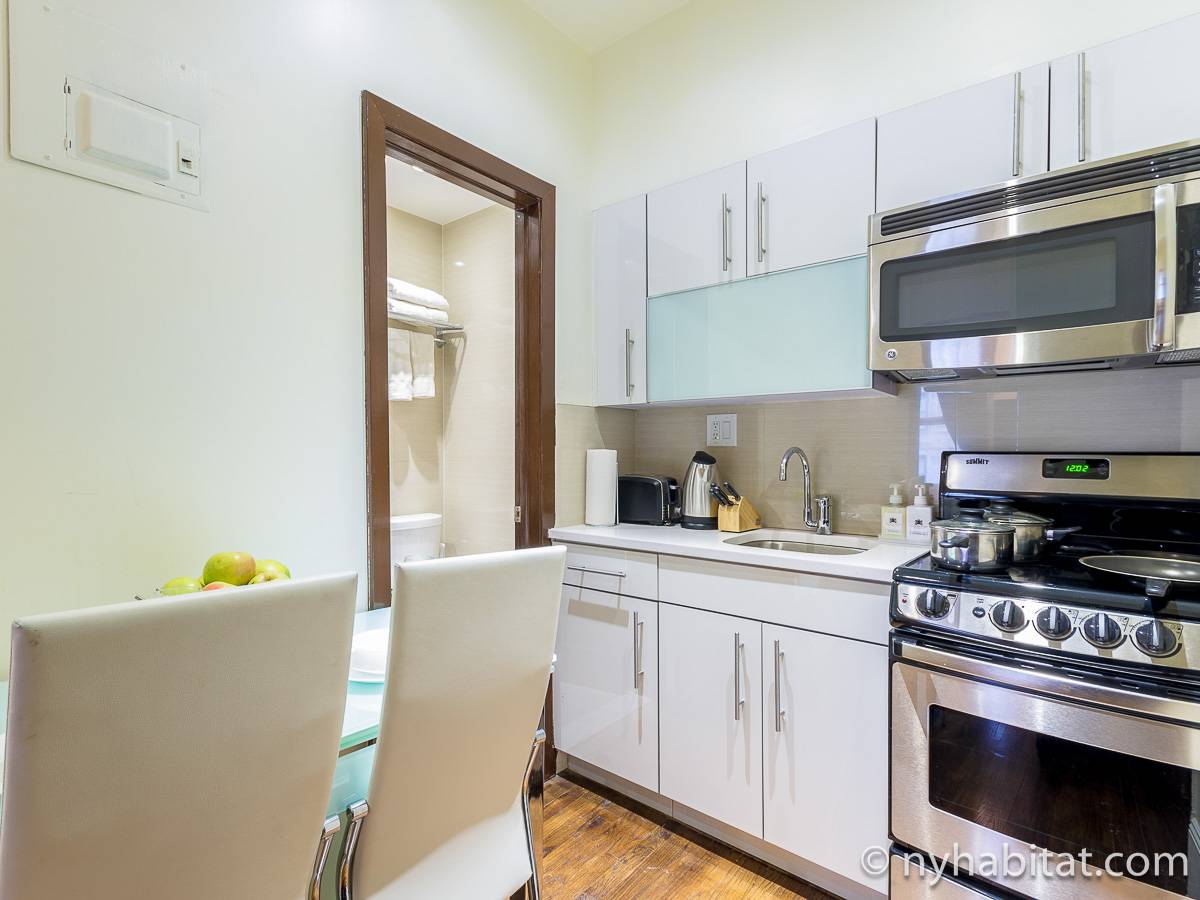 Questo appartamento ammobiliato con due camere da letto e un bagno a Murray Hill, nel quartiere di Midtown East, Manhattan, è vantaggiosamente collocato in prossimità del Grand Central Terminal, del Chrysler Building e di numerosi monumenti di New York City. L’appartamento si trova al quarto piano (terzo piano europeo) di un basso edificio senza ascensore e dotato di sistema di sicurezza vicino alla East 37thStreet e Lexington Avenue. L’edificio è dotato di una lavanderia nel sottoscala.