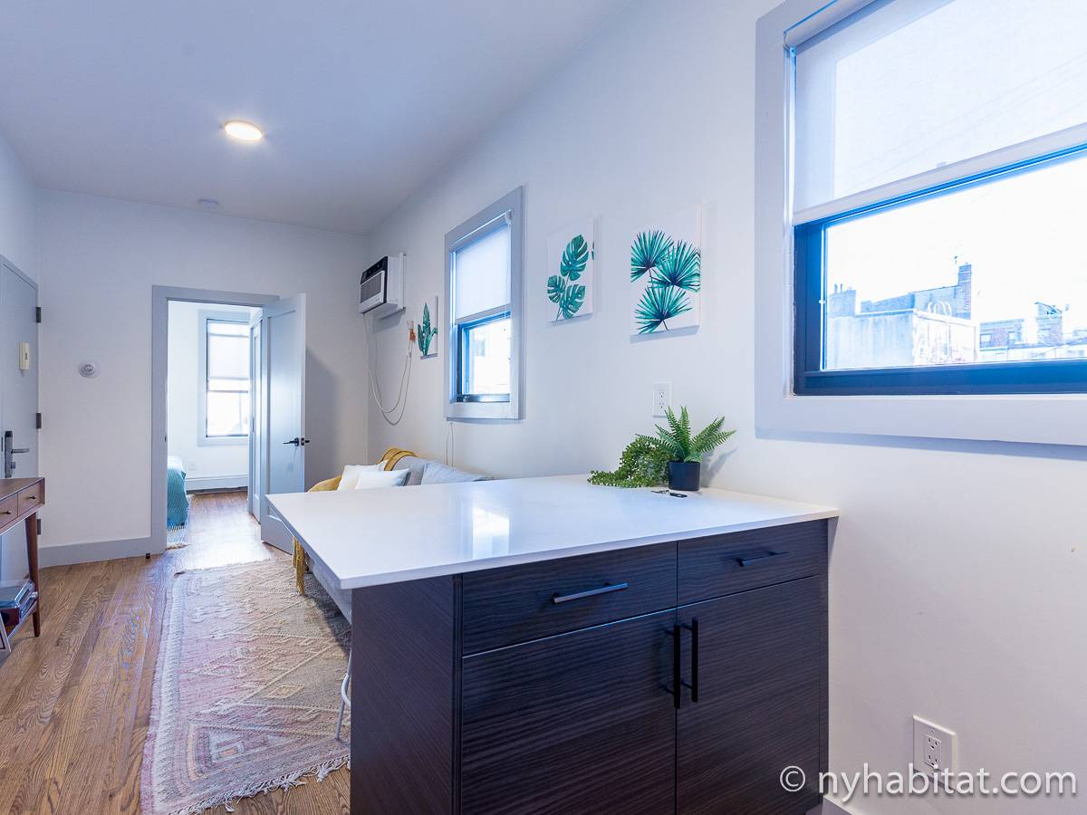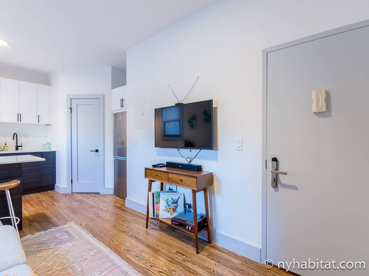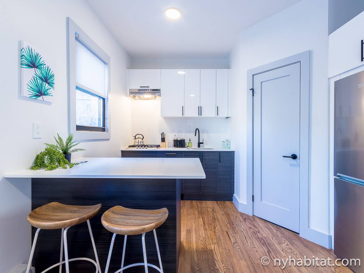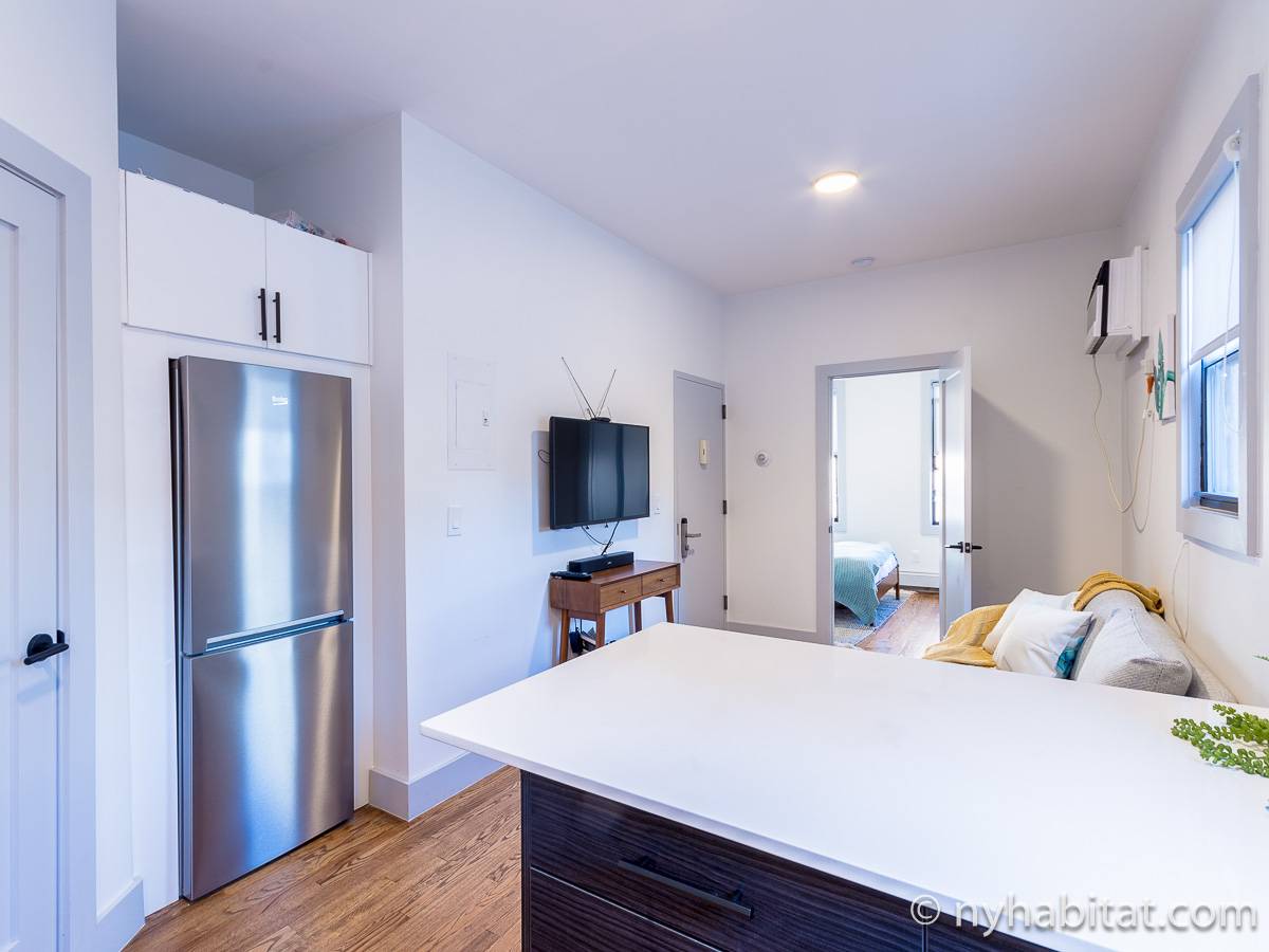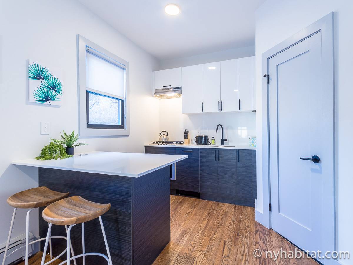 Questo appartamento ammobiliato newyorkese con una camera da letto si trova nel cuore pulsante di Williamsburg, tra North 8th Street & Kent Avenue. Questo appartamento di 300 piedi quadri (27.8 m2) è al secondo piano (primo piano europeo) di un edificio basso con ascensore e sistema di sicurezza situato a Brooklyn.