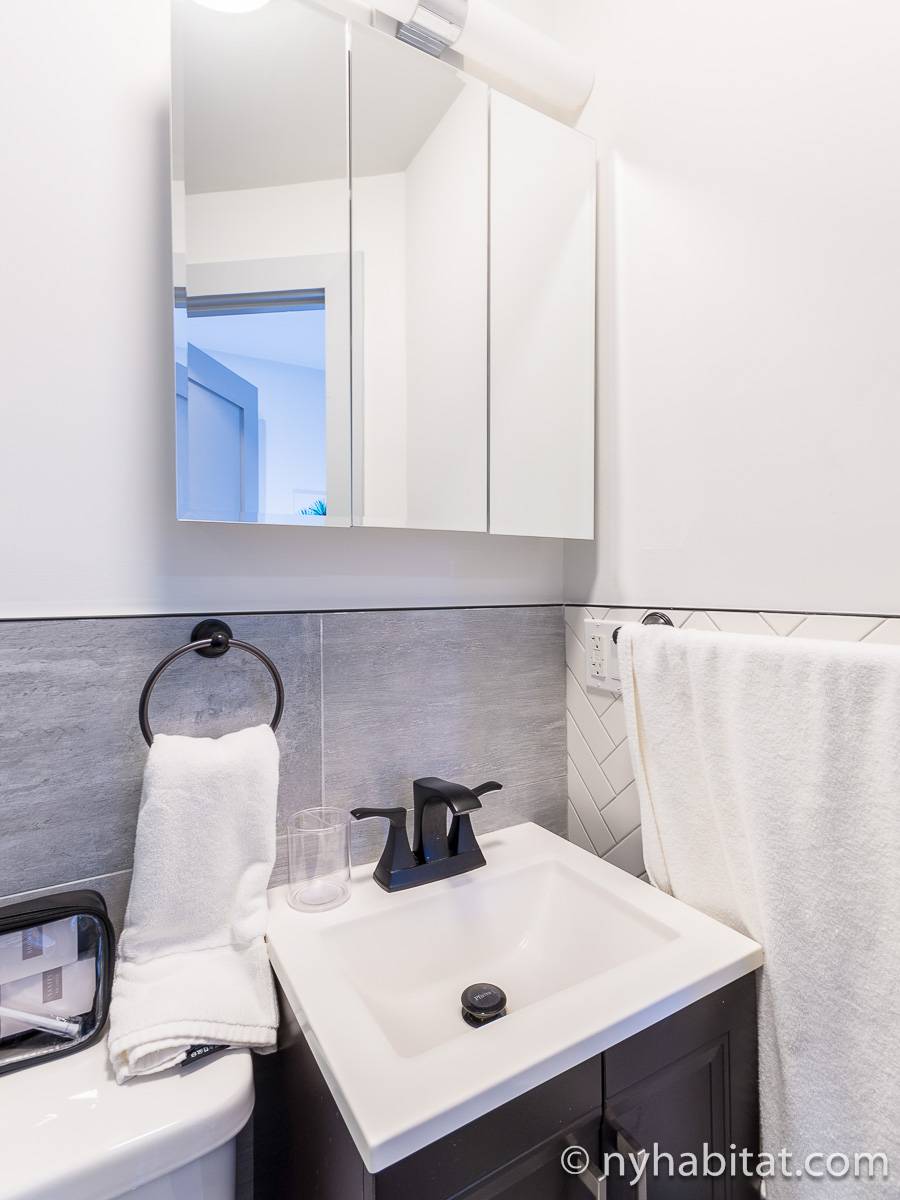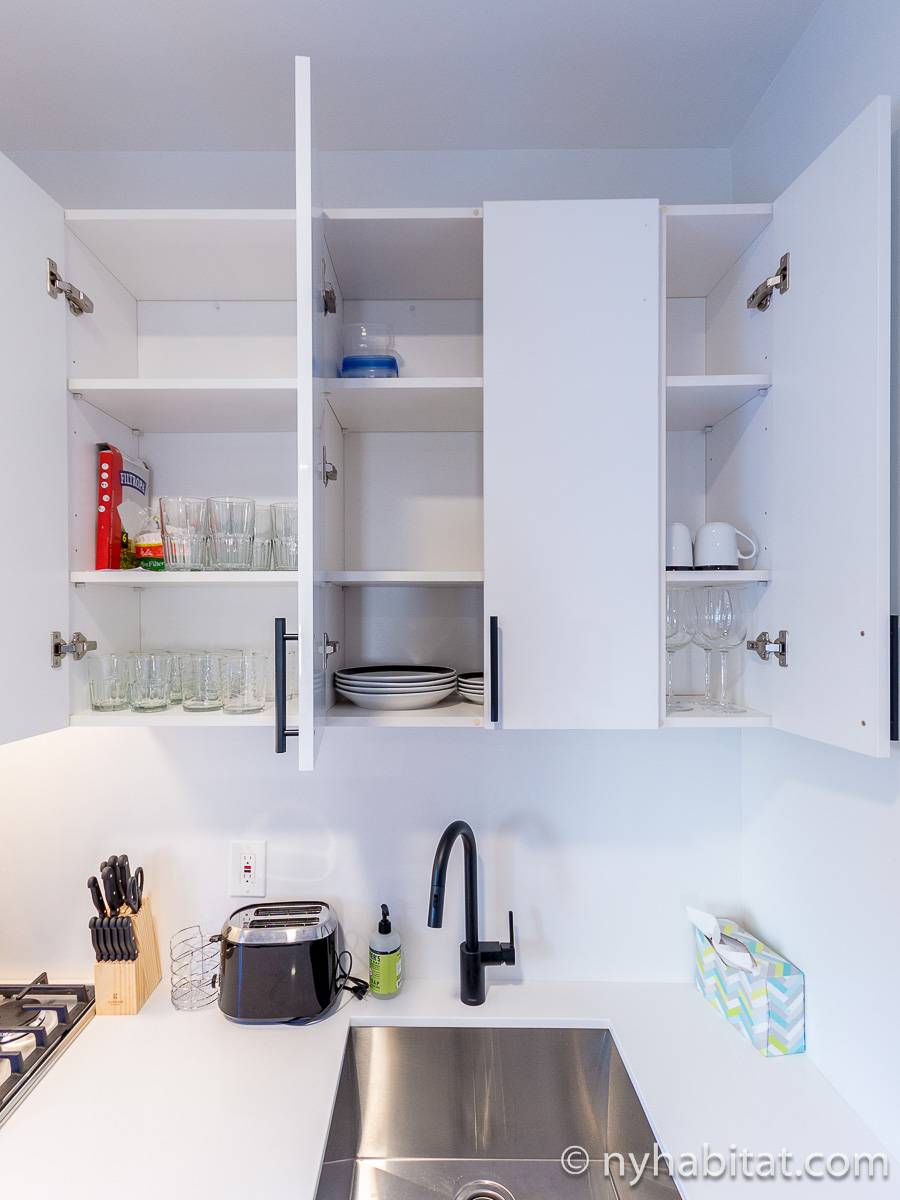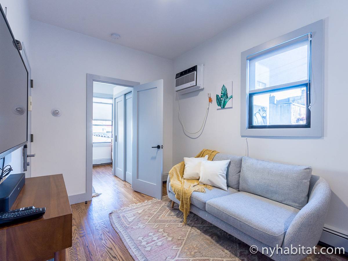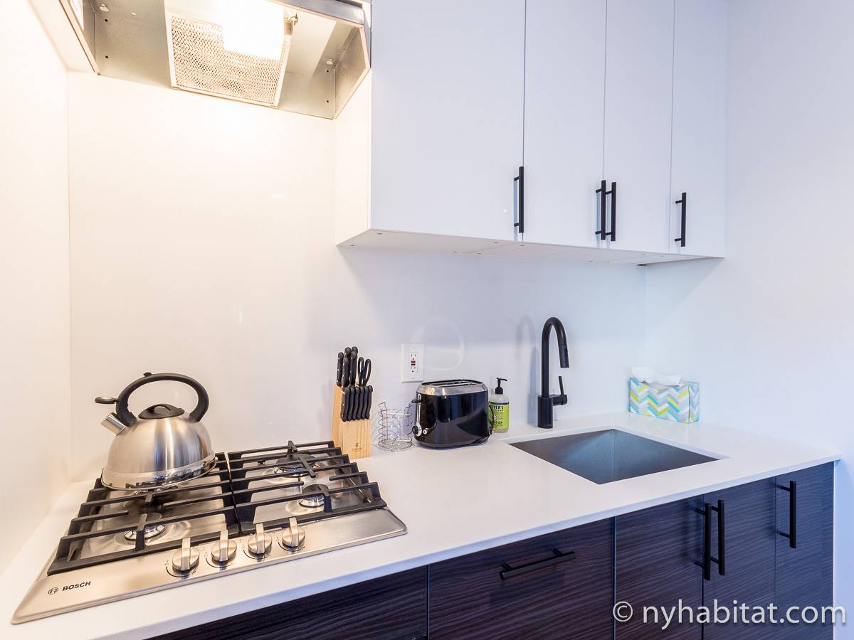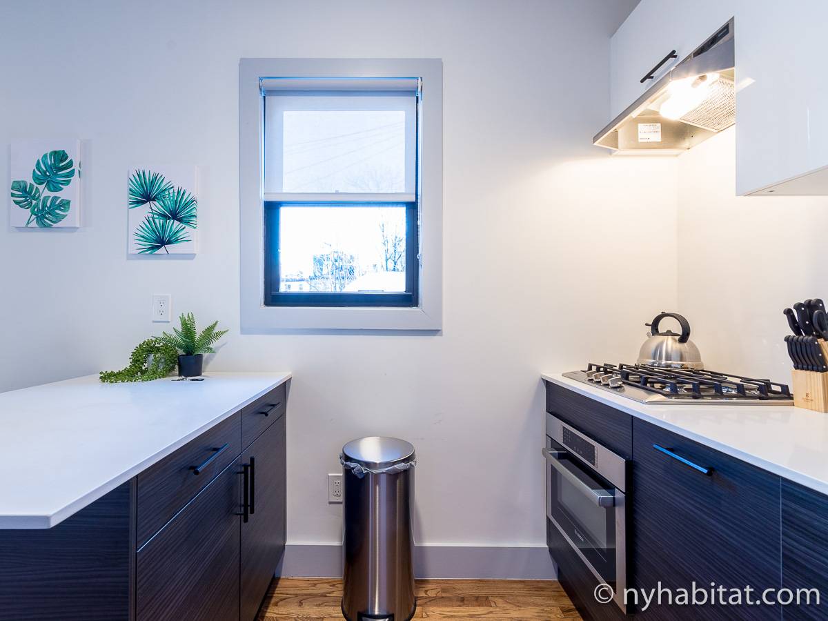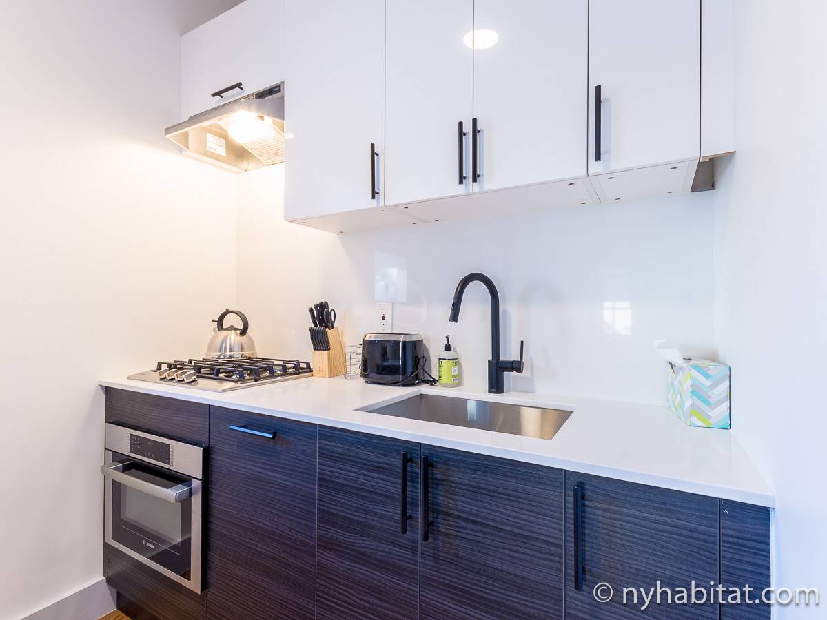 Questo appartamento ammobiliato newyorkese con una camera da letto si trova nel cuore pulsante di Williamsburg, tra North 8th Street & Kent Avenue. Questo appartamento di 300 piedi quadri (27.8 m2) è al secondo piano (primo piano europeo) di un edificio basso con ascensore e sistema di sicurezza situato a Brooklyn.