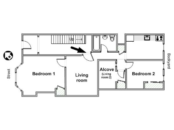 Questo appartamento con due camere da letto e un bagno è disponibile tra Cornelia Street ed Evergreen Avenue a Bushwick, New York! Si trova al primo piano (corrispondente al piano terra europeo) di una casa a schiera con sistema di sicurezza a tempo pieno e apertura su un giardino.