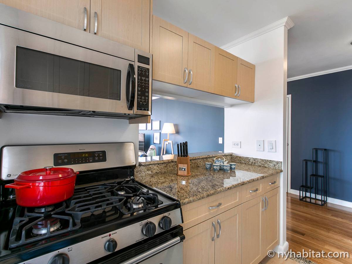 All’interno di questo bellissimo appartamento in affitto, trovate un soggiorno interamente arredato con un divano, una TV con cavo e una poltrona, con finestre e porte scorrevoli che conducono al balcone. Tra il soggiorno e la cucina, trovate un tavolo da pranzo per quattro persone. La cucina invece è dotata di frigorifero, congelatore, forno, microonde, lavastoviglie, macchina per il caffè e tostapane. La camera da letto ha un letto queen-size e un armadio. Infine, nel bagno è presente sia una doccia che una vasca da bagno.