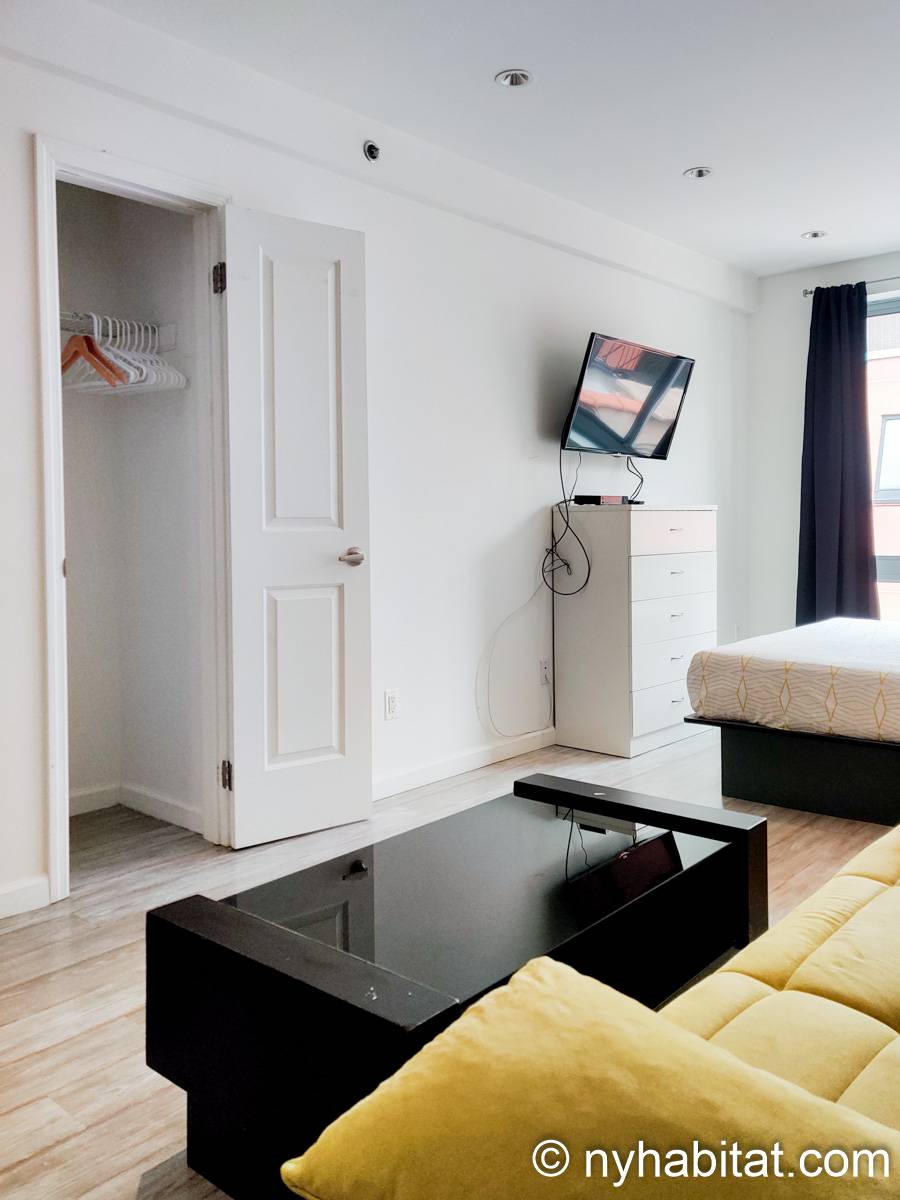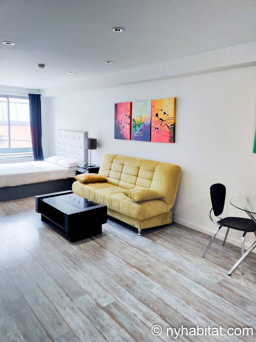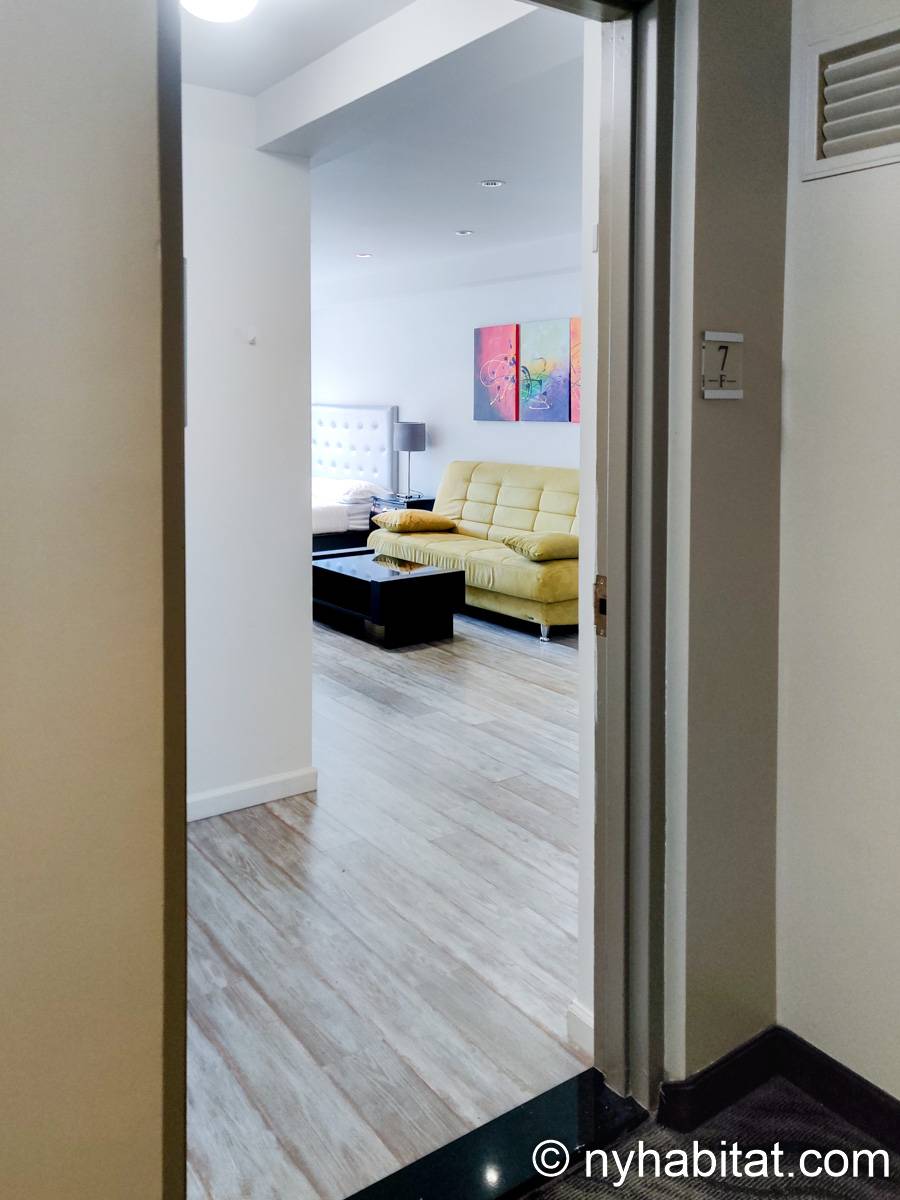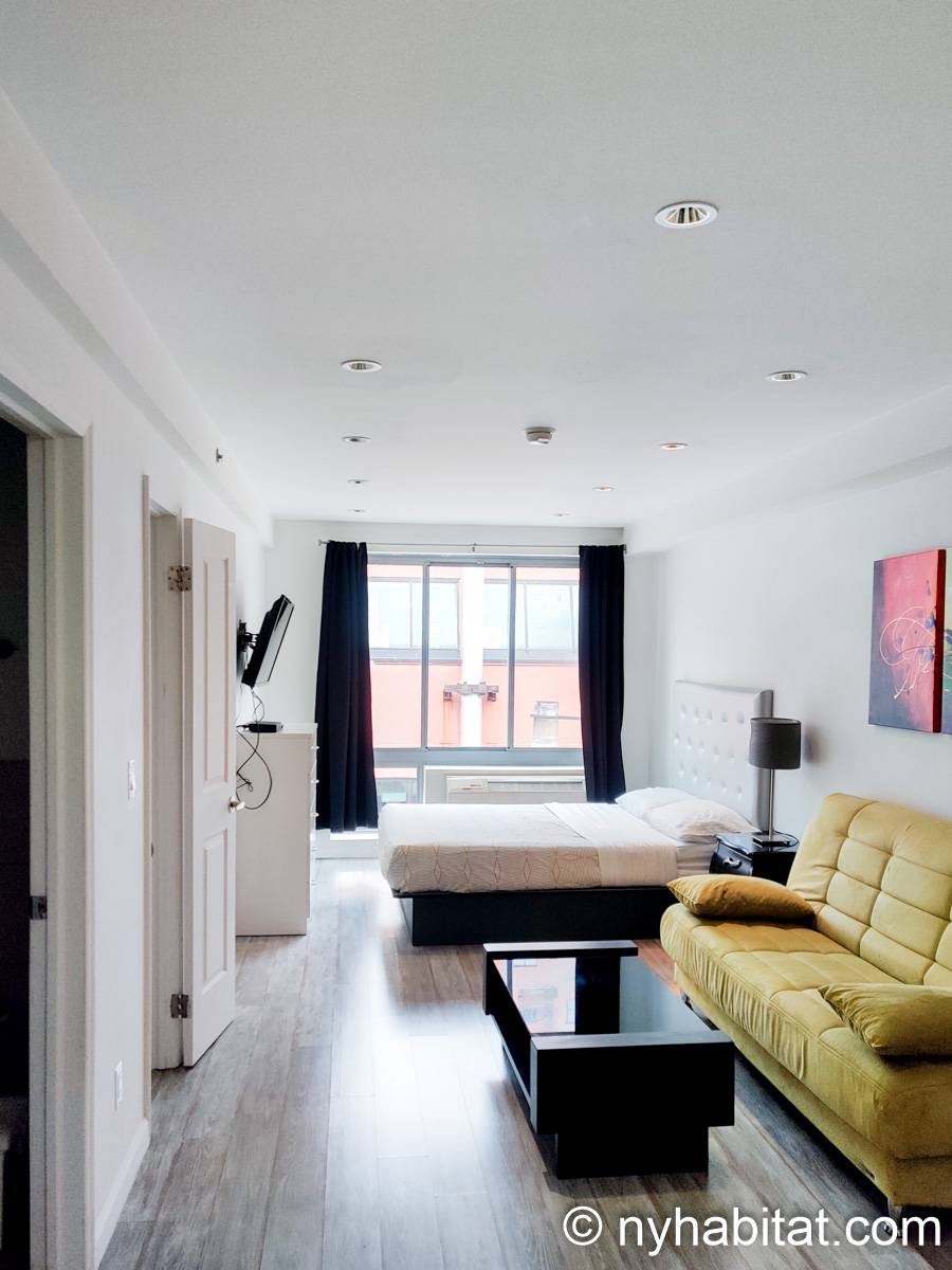 Esplorate il quartiere di Midtown West, a Manhattan, da questo appartamento monolocale ammobiliato. L’appartamento si trova al settimo e ultimo piano (sesto piano in Europa) di un edificio dotato di ascensore e lavanderia, situato su West 48th Street e 10th Avenue.