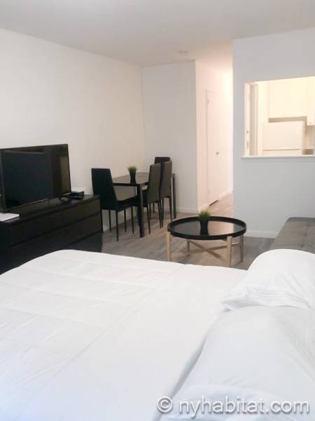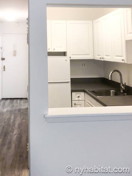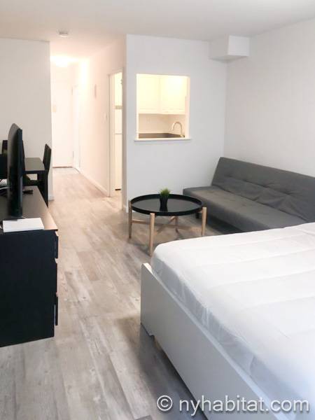 Questo appartamento monolocale ammobiliato si trova nell'Upper East Side di Manhattan, a New York. Situato all'angolo tra East 89th Street e 3rd Avenue, questo appartamento si trova al secondo piano (corrispondente al primo piano europeo) dell'edificio, che dispone di un ascensore e di una lavanderia.