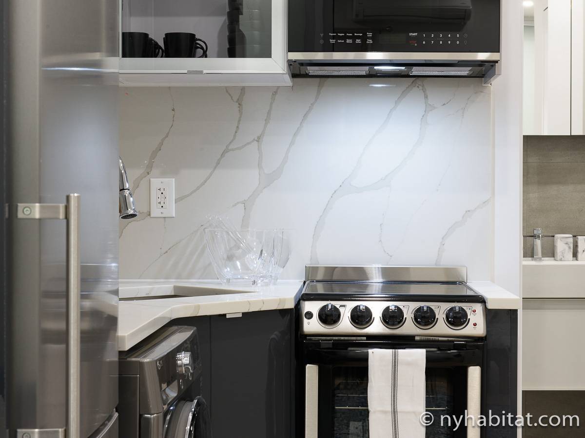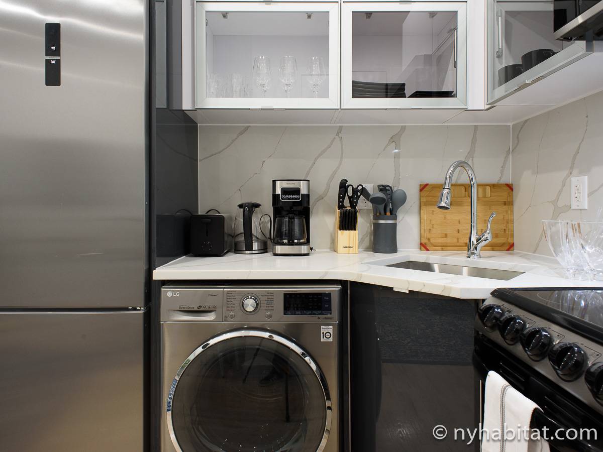 Questo appartamento ammobiliato con una camera da letto e un bagno si trova nei pressi dell’angolo tra 2nd Avenue e 78th Street nell’Upper East Side, nel distretto newyorkese di Manhattan. Dispone di servizi moderni, tra cui una lavatrice e un’asciugatrice, ed è situato al secondo piano (corrispondente al primo piano europeo).