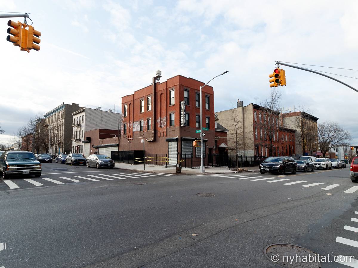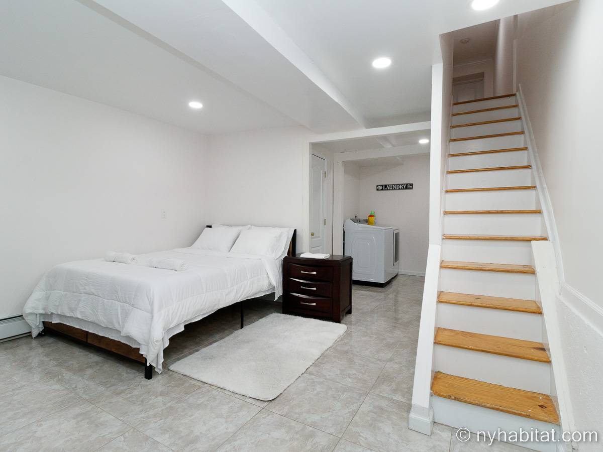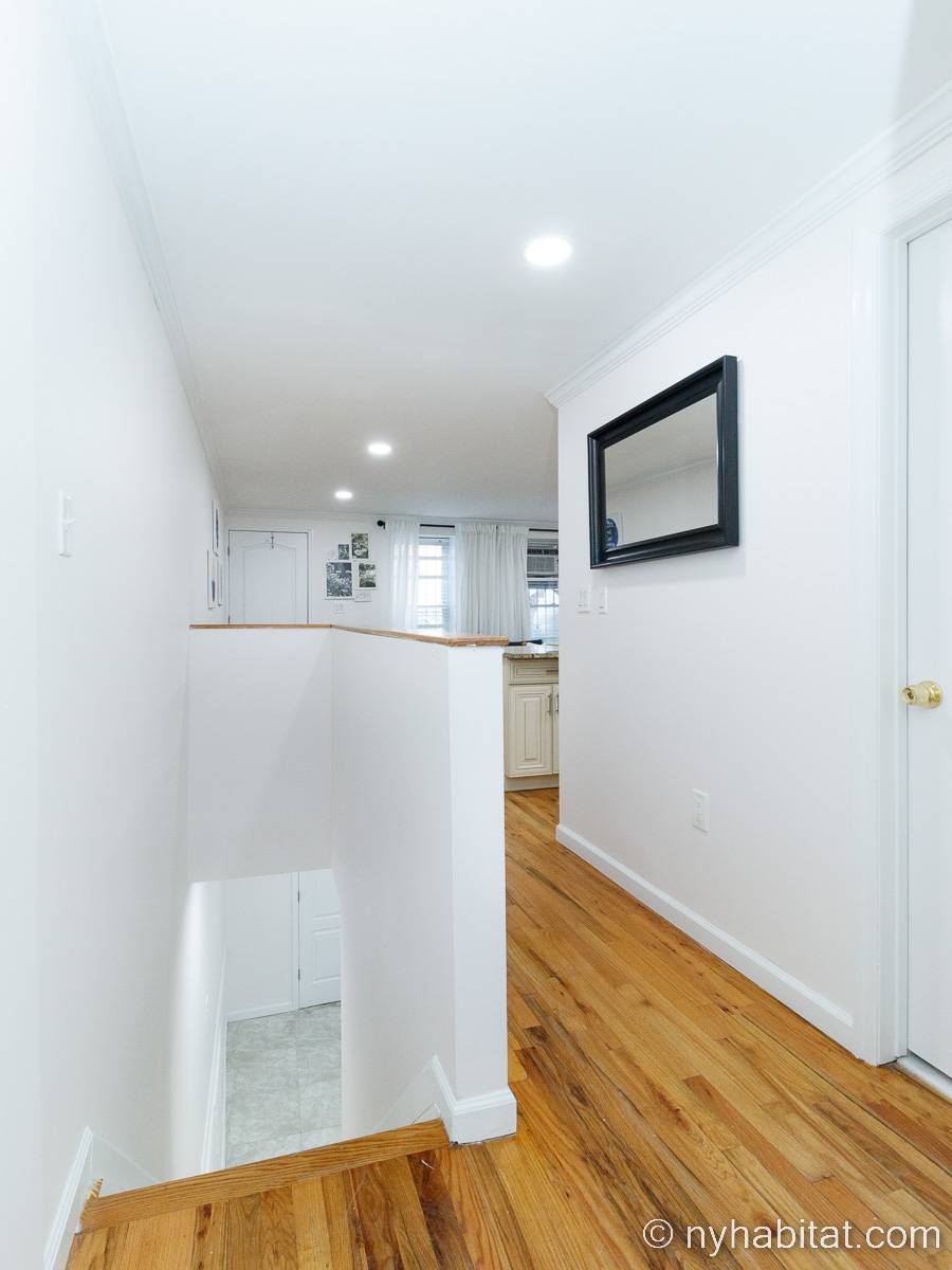 Questo appartamento duplex con due camere da letto e due bagni si trova tra Hull Street e Mother Gaston Boulevard, nel quartiere di Ocean Hill, a Brooklyn, New York. L’appartamento occupa il primo piano (corrispondente al piano terra europeo) e il seminterrato* di una villetta a schiera.