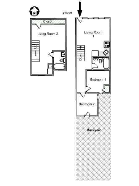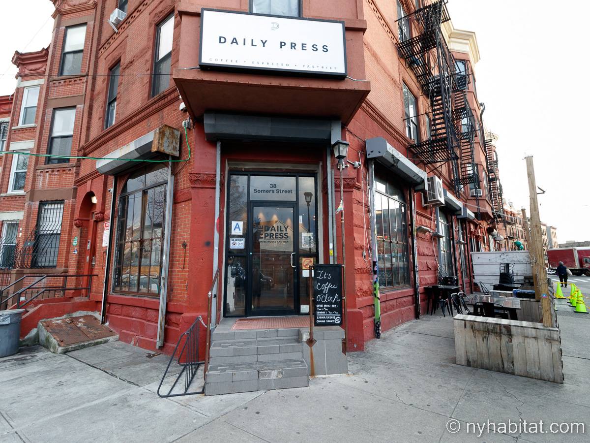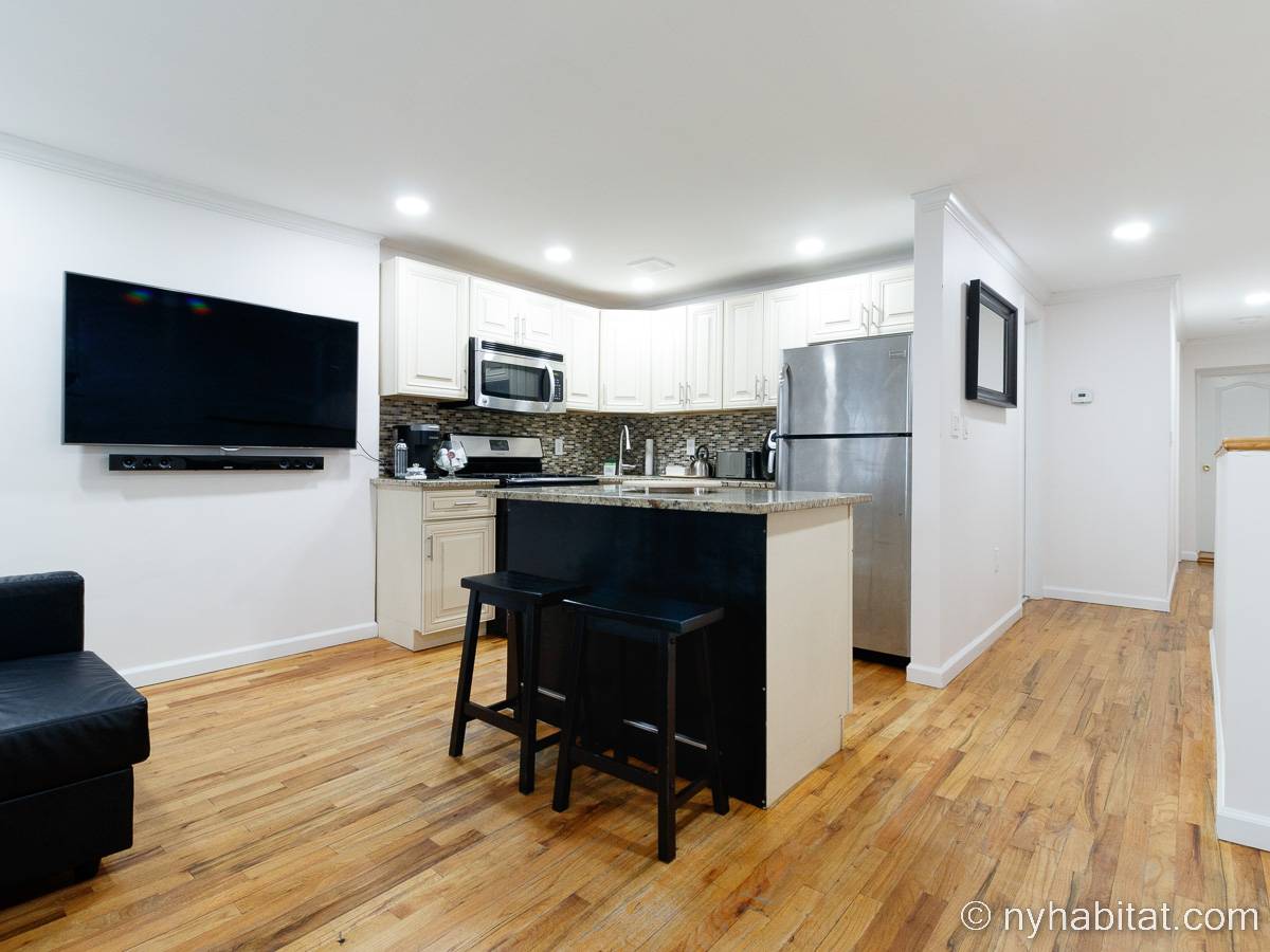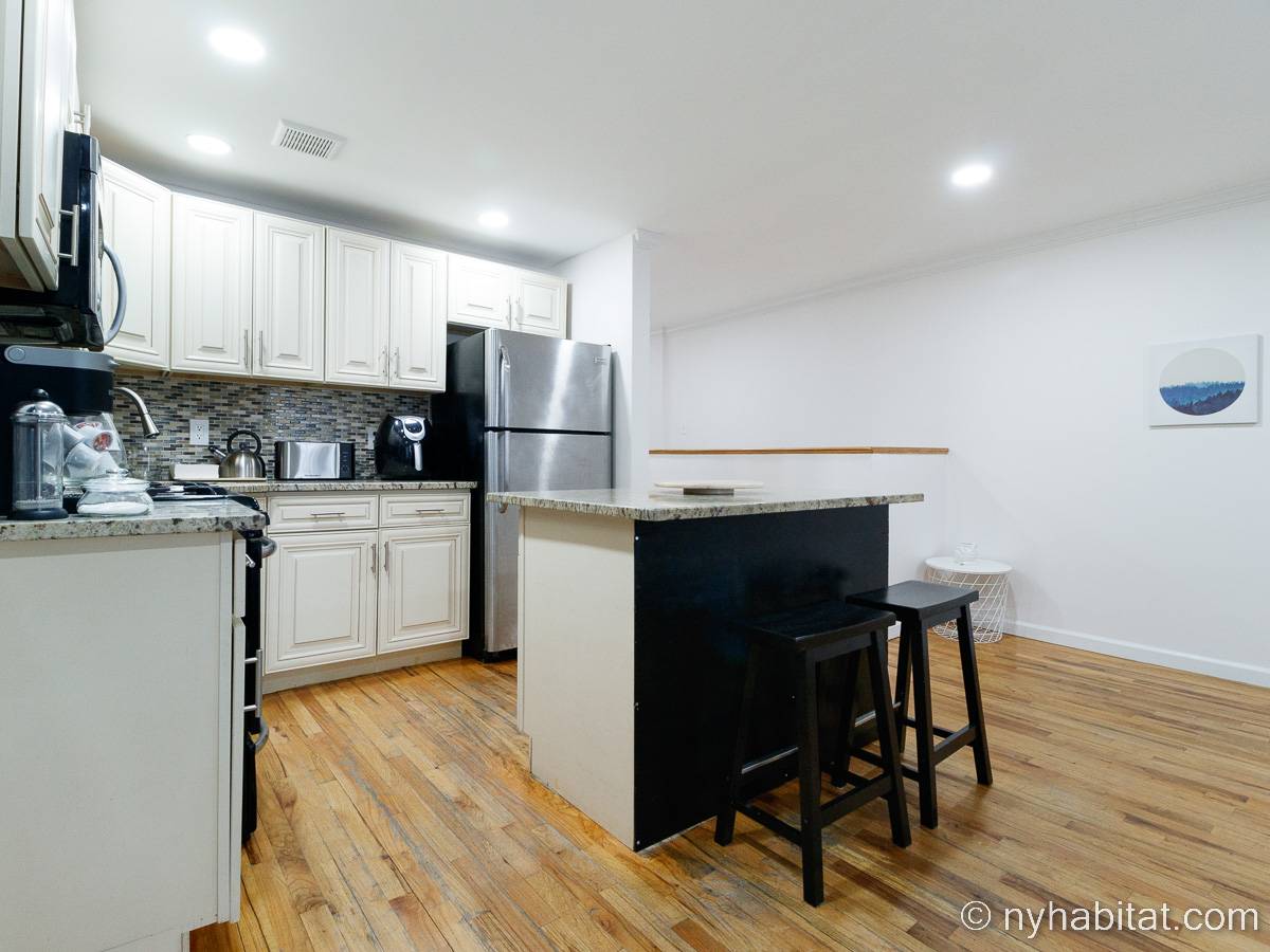 Questo appartamento duplex con due camere da letto e due bagni si trova tra Hull Street e Mother Gaston Boulevard, nel quartiere di Ocean Hill, a Brooklyn, New York. L’appartamento occupa il primo piano (corrispondente al piano terra europeo) e il seminterrato* di una villetta a schiera.