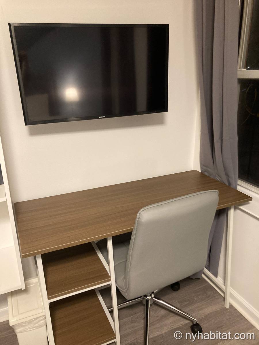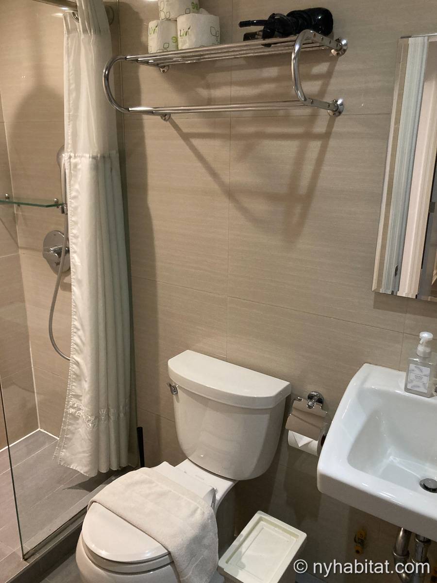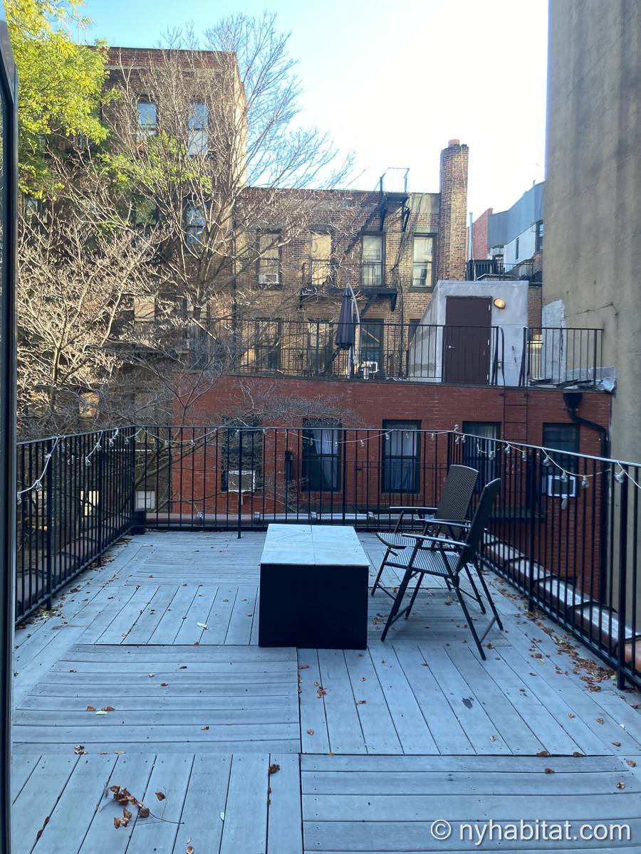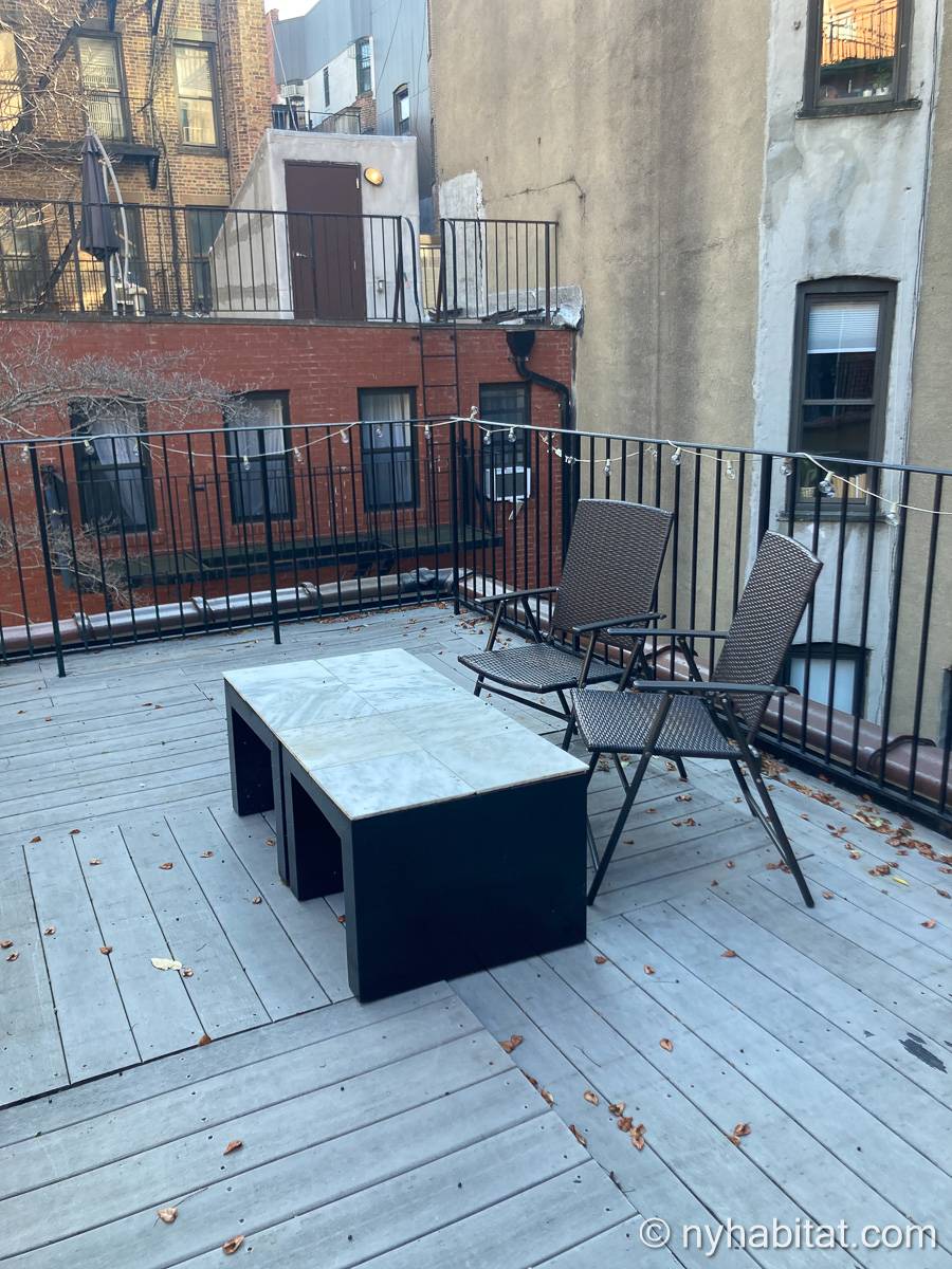 Questo appartamento ammobiliato di circa 42 m2 si trova a SoHo vicino all’incrocio tra Sullivan Street e Spring Street. L’appartamento, situato a Manhattan, comprende una terrazza esterna che vi permetterà di godervi il clima e i suoni di New York. Questo appartamento con due camere da letto e un bagno è collocato al terzo piano (corrispondente a un secondo piano europeo) di un edificio senza ascensore.