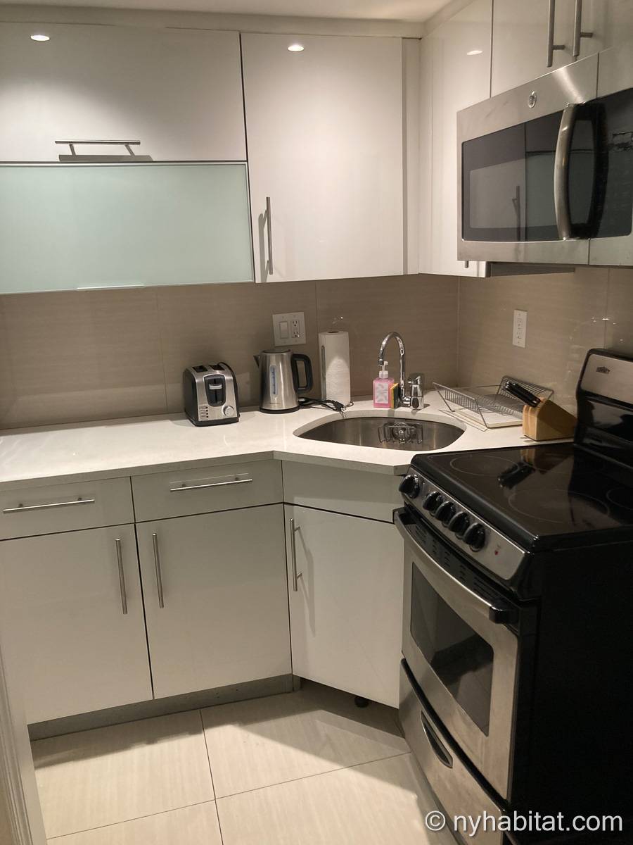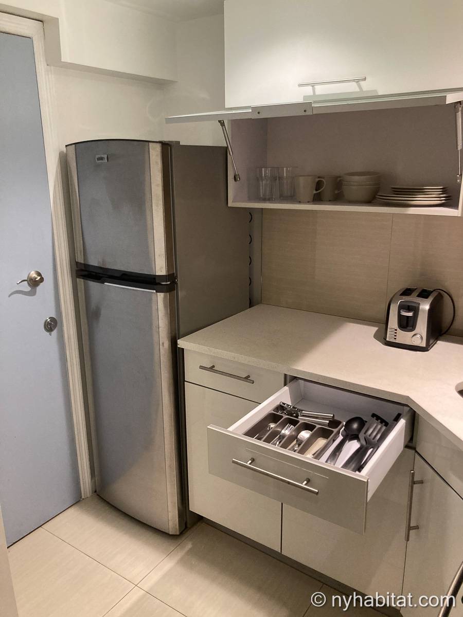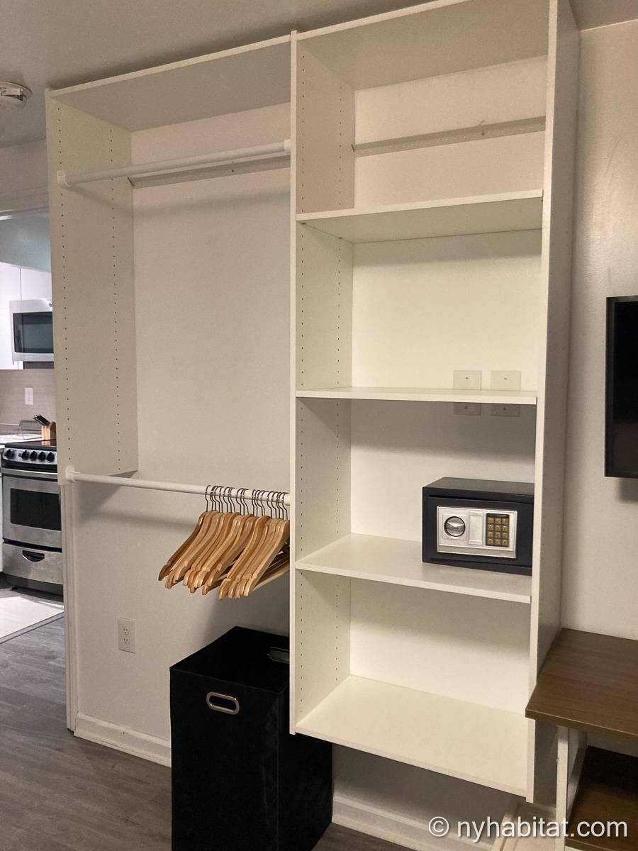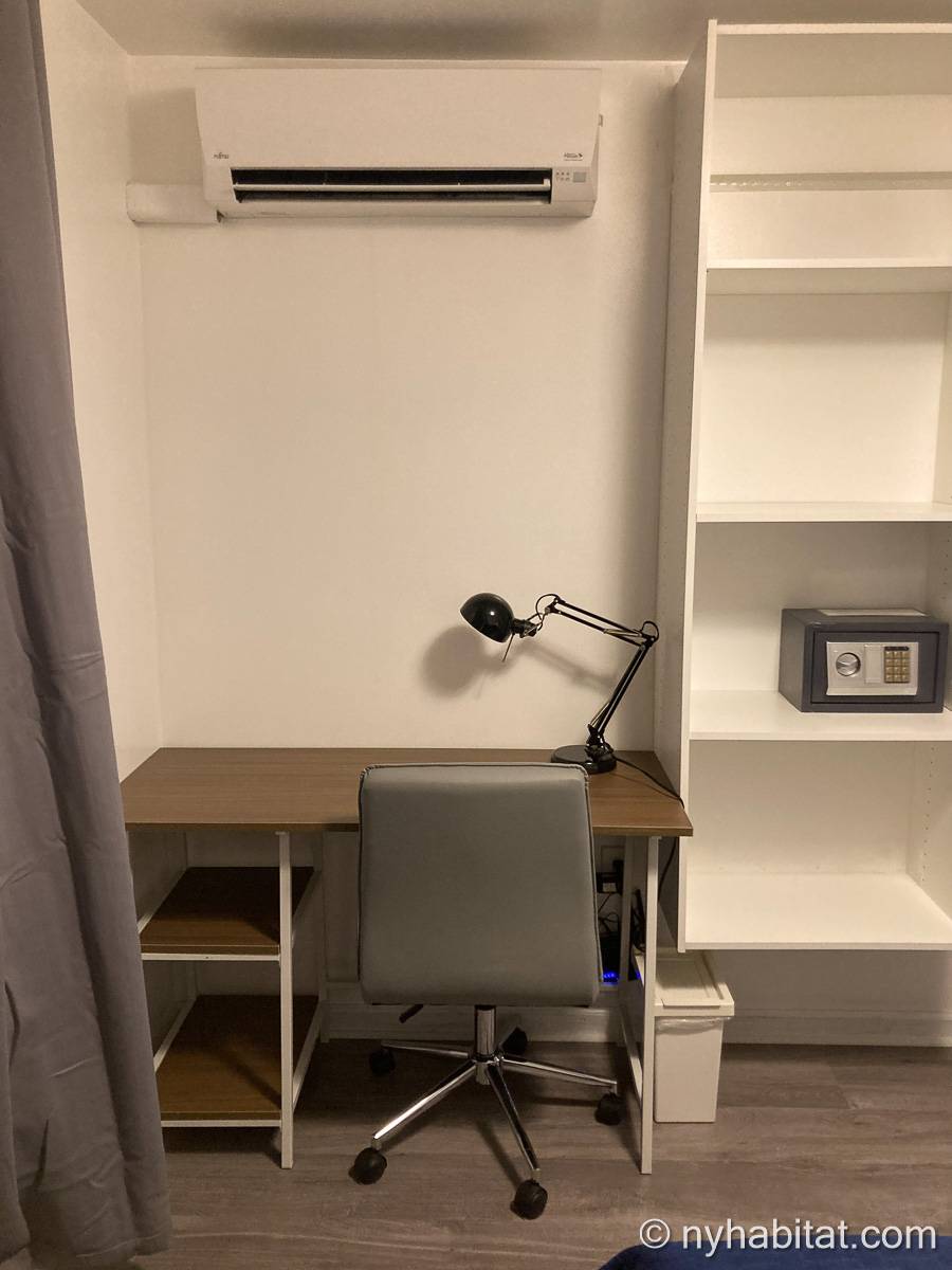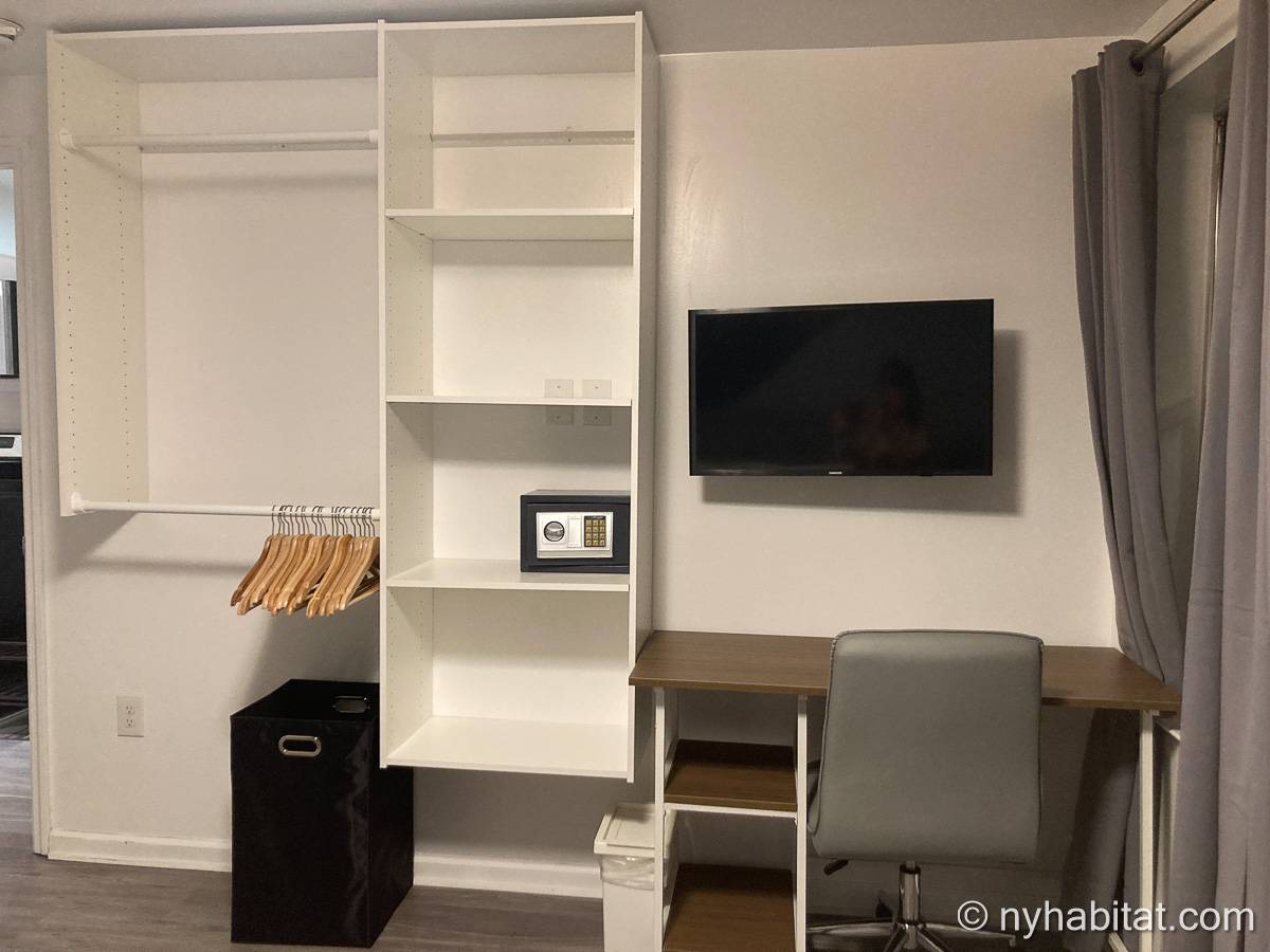 Questo appartamento ammobiliato di circa 42 m2 si trova a SoHo vicino all’incrocio tra Sullivan Street e Spring Street. L’appartamento, situato a Manhattan, comprende una terrazza esterna che vi permetterà di godervi il clima e i suoni di New York. Questo appartamento con due camere da letto e un bagno è collocato al terzo piano (corrispondente a un secondo piano europeo) di un edificio senza ascensore.