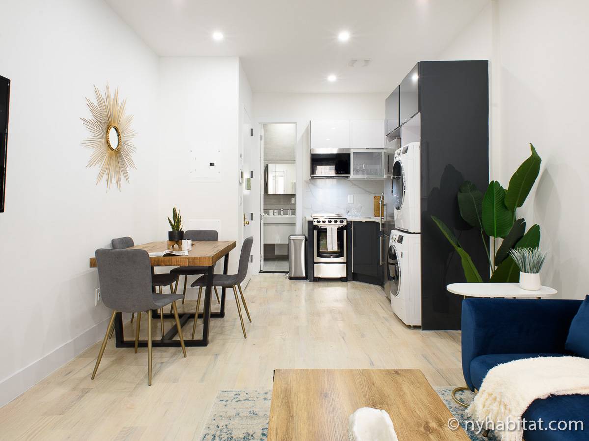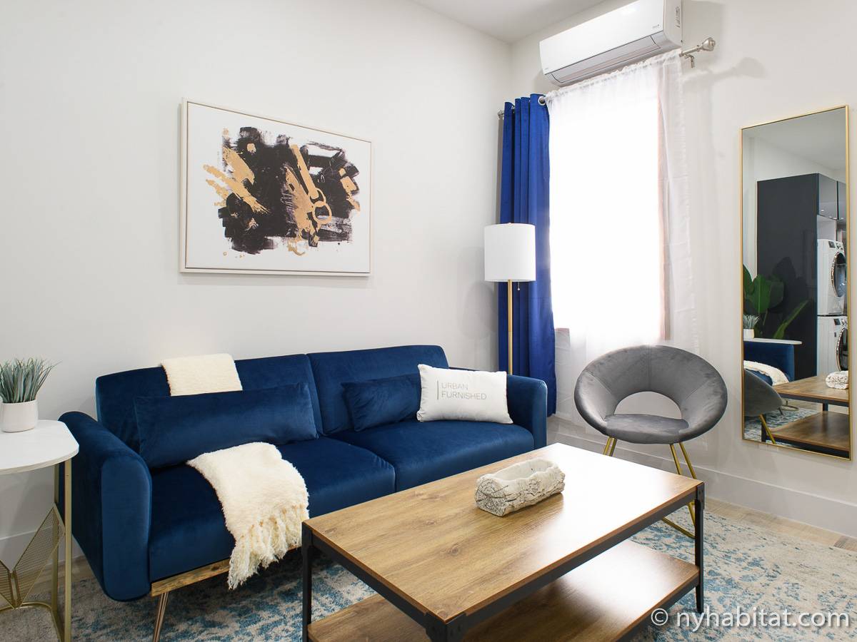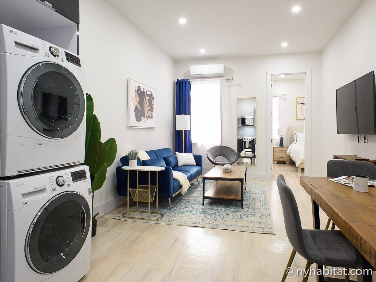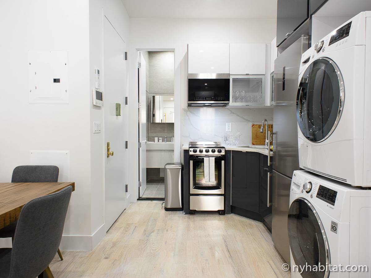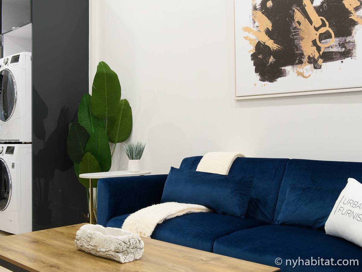 Questo appartamento ammobiliato con una camera da letto e un bagno si trova sull’incrocio di 2nd Avenue e 78th Street, nell’Upper East Side di Manhattan. L’appartamento newyorkese ha una superficie di circa 55 m², e dispone di pavimenti in legno massiccio color sabbia, illuminazione a incasso, lavatrice e asciugatrice.