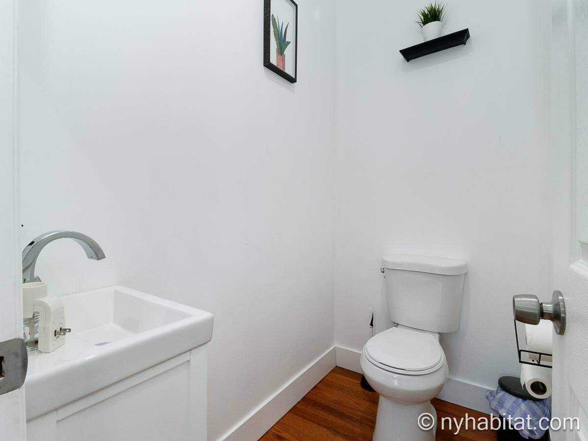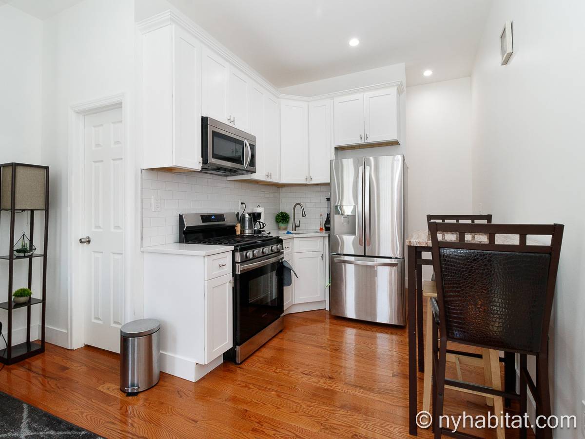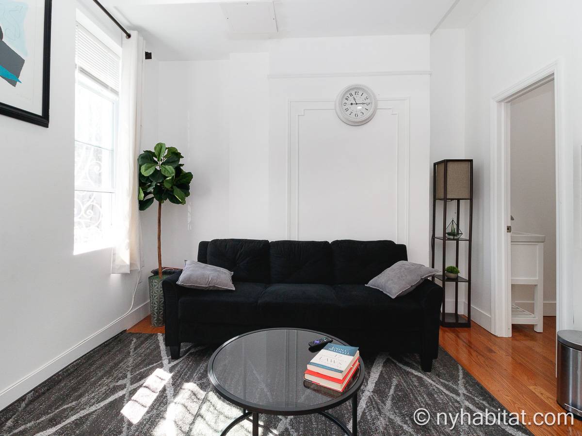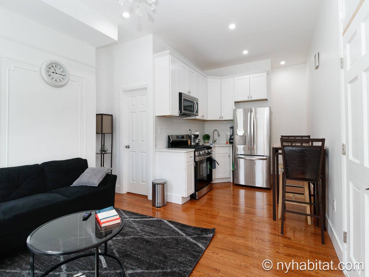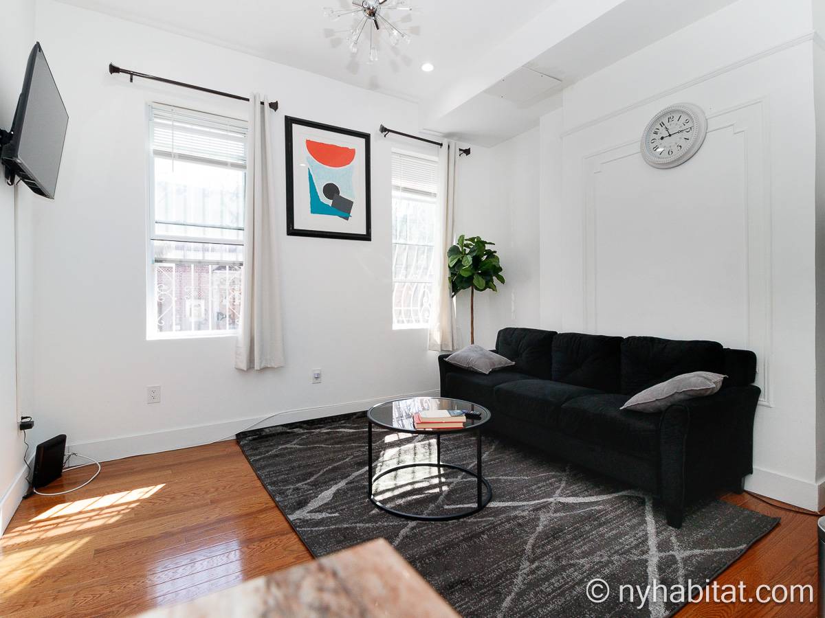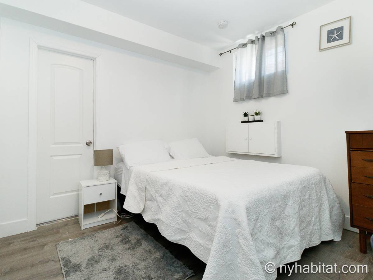 Questo appartamento ammobiliato duplex con una camera da letto, un bagno e un bagno di servizio si trova nel quartiere di Bushwick, a Brooklyn. L’appartamento ha una superficie di circa 53 m² ed è vicino all’angolo tra Hart Street e St Nicholas Avenue. Si trova tra il primo piano (corrispondente al piano terra europeo) e il piano seminterrato* di una villetta a schiera. Al suo interno troverete lavatrice, asciugatrice, soffitti alti e illuminazione ad incasso.