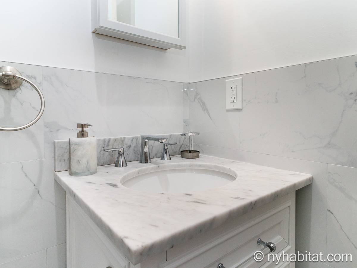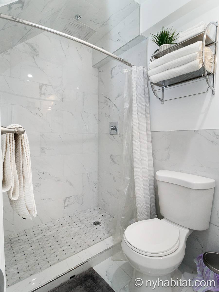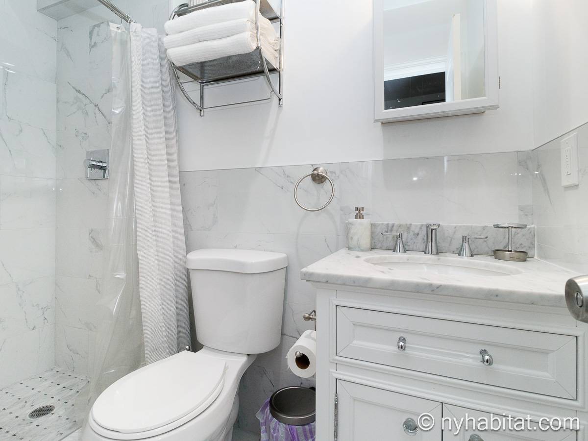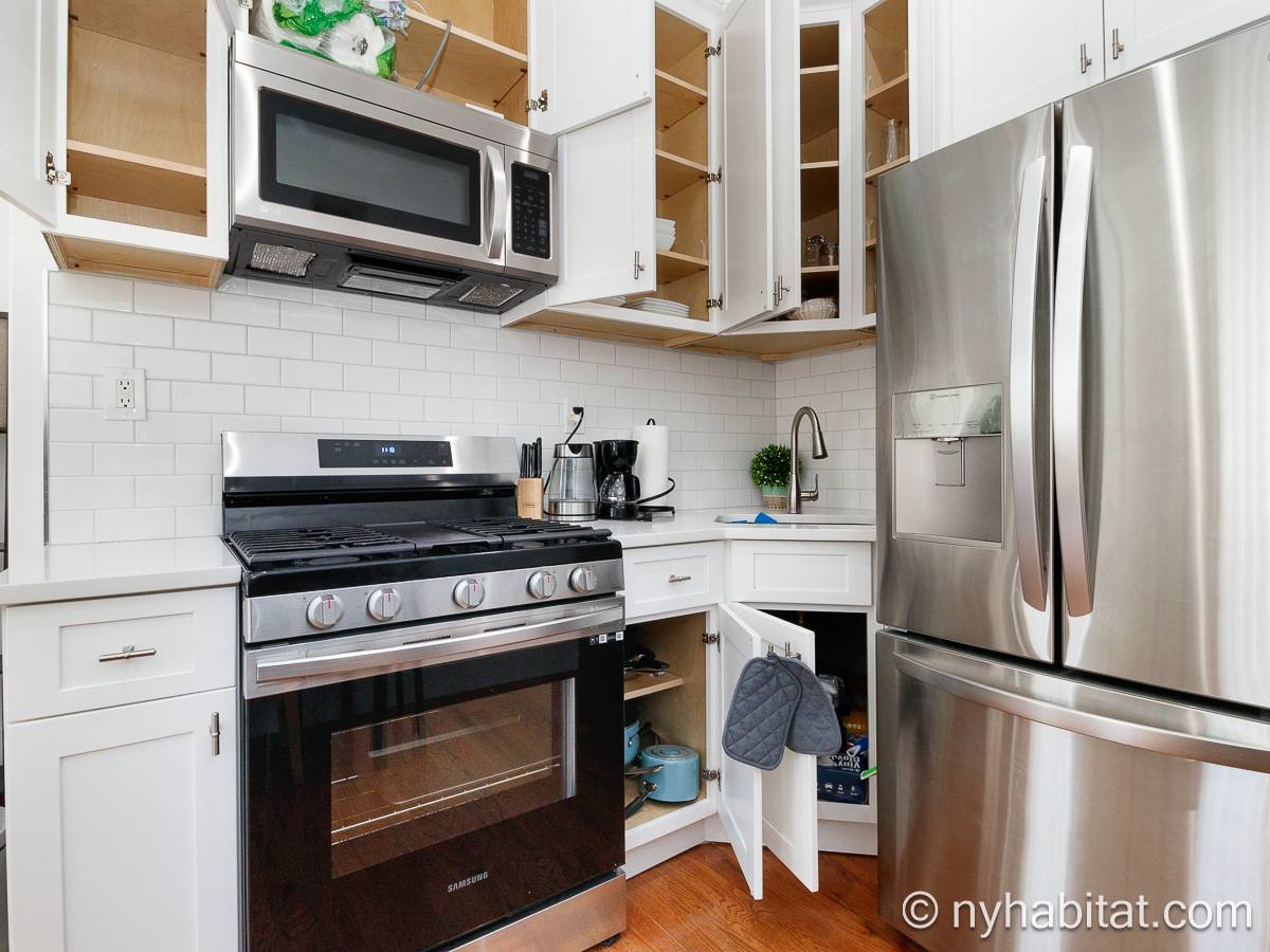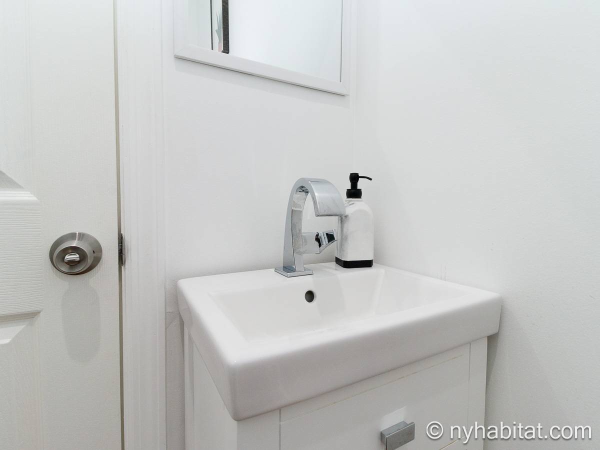 Questo appartamento ammobiliato duplex con una camera da letto, un bagno e un bagno di servizio si trova nel quartiere di Bushwick, a Brooklyn. L’appartamento ha una superficie di circa 53 m² ed è vicino all’angolo tra Hart Street e St Nicholas Avenue. Si trova tra il primo piano (corrispondente al piano terra europeo) e il piano seminterrato* di una villetta a schiera. Al suo interno troverete lavatrice, asciugatrice, soffitti alti e illuminazione ad incasso.