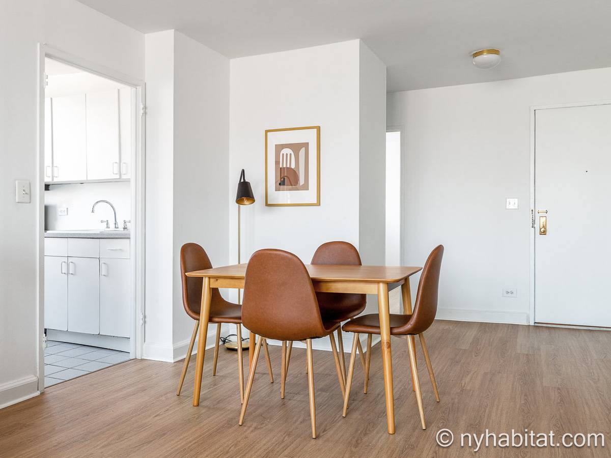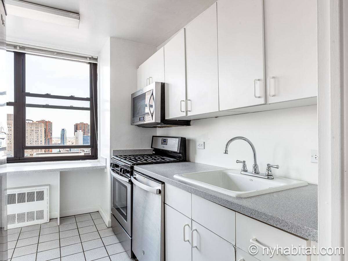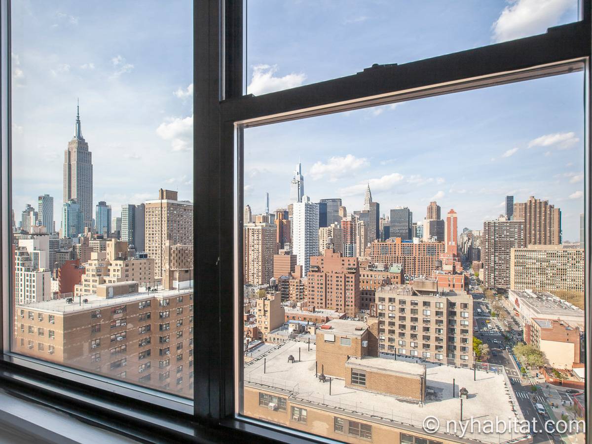 Questo appartamento ammobiliato con due camere da letto e un bagno (più uno di servizio) si trova vicino all’intersezione tra East 27th Street e 2nd Avenue a Midtown East. L’appartamento in affitto nella zona di Kips Bay ha una superficie di circa 87 m2 ed è situato al 25° piano (equivalente al 24° piano europeo) di un edificio dotato di ascensore dispone di portineria, palestra e lavanderia.