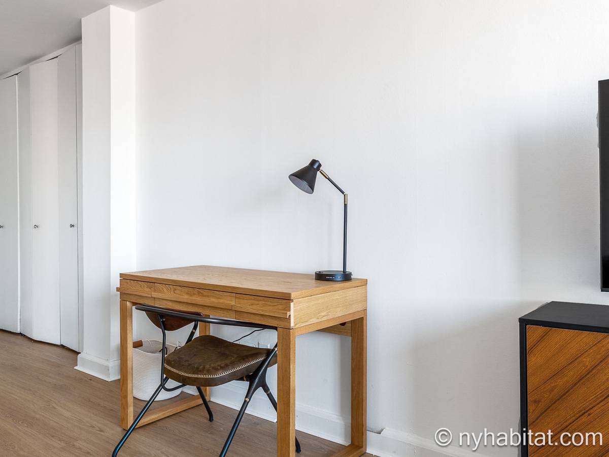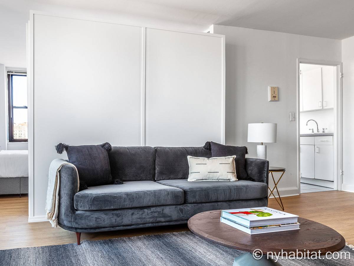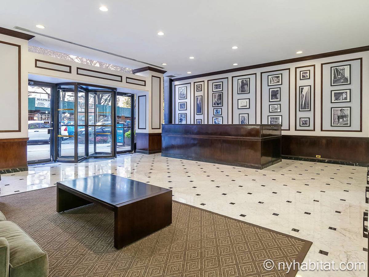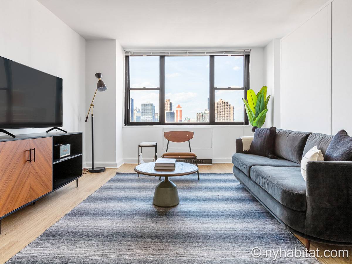 Questo appartamento ammobiliato con due camere da letto e un bagno (più uno di servizio) si trova vicino all’intersezione tra East 27th Street e 2nd Avenue a Midtown East. L’appartamento in affitto nella zona di Kips Bay ha una superficie di circa 87 m2 ed è situato al 25° piano (equivalente al 24° piano europeo) di un edificio dotato di ascensore dispone di portineria, palestra e lavanderia.