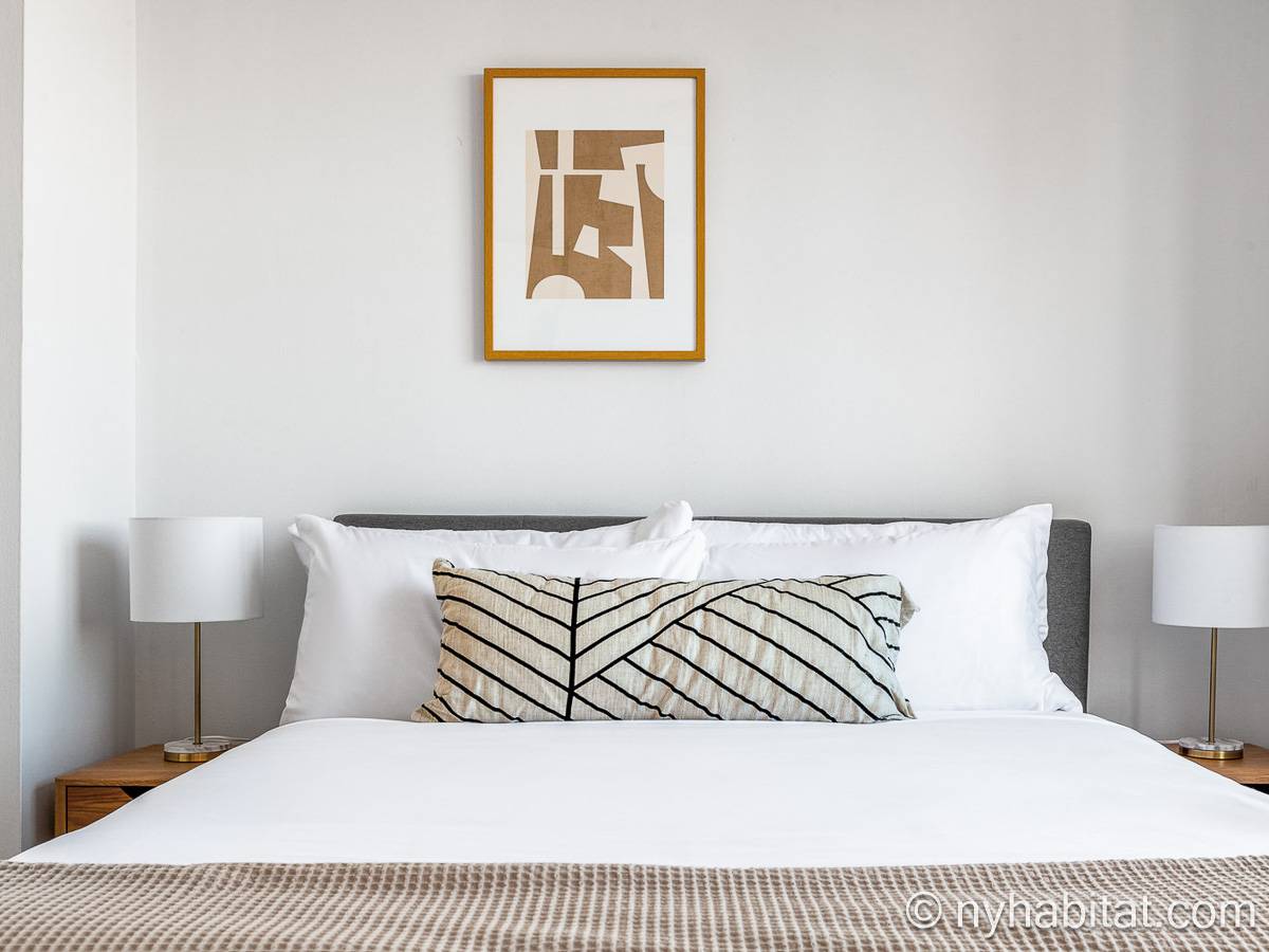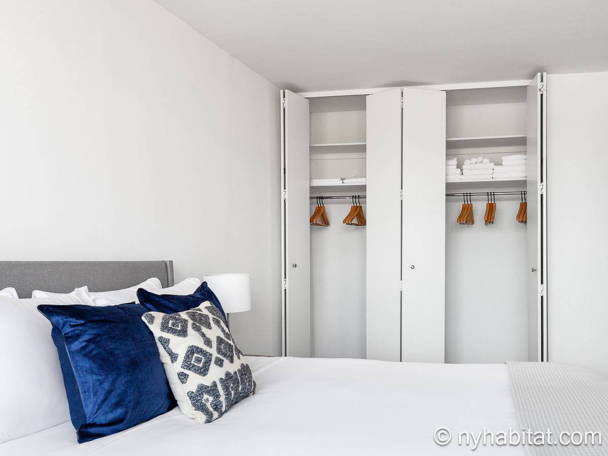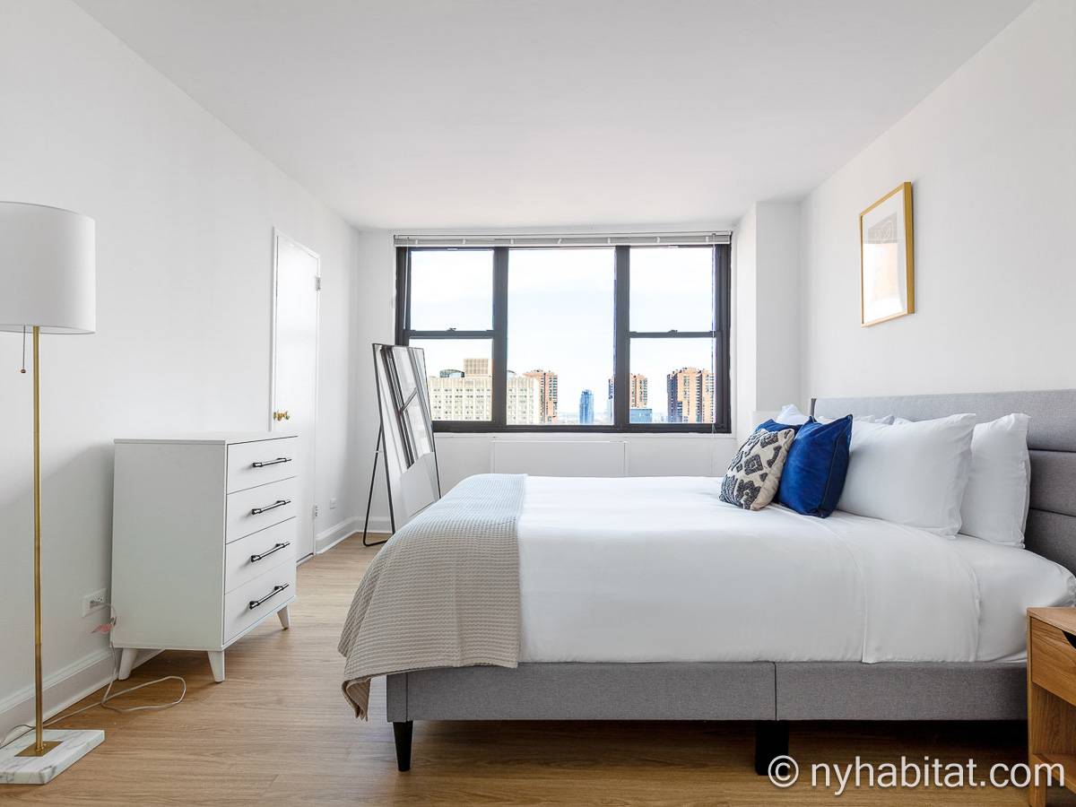 Questo appartamento offre un’ampia finestra con vista sullo skyline, da cui è possibile scorgere anche l’Empire State Building e il Chrysler Building. Se avrete necessità di lavorare o studiare da casa, nella stanza è presente una scrivania. Troverete anche un divano di fronte alla televisione, dove potrete riposarvi e guardare una serie TV dopo una lunga giornata. Se vorrete cucinare a casa, in cucina troverete forno, microonde, tostapane, frigorifero, macchina del caffè e lavastoviglie. All'interno di questo ambiente si trova anche un tavolo a cui sedersi.. Una delle due camere da letto è dotata di un letto queen size, mentre nell’altra camera troverete un letto king size. In entrambe le camere da letto sono presenti una finestra con vista sulla città e un armadio. Il bagno completo (che si trova nella suite padronale) dispone di una vasca con soffione. Sono inoltre disponibili altri armadi in prossimità del soggiorno.