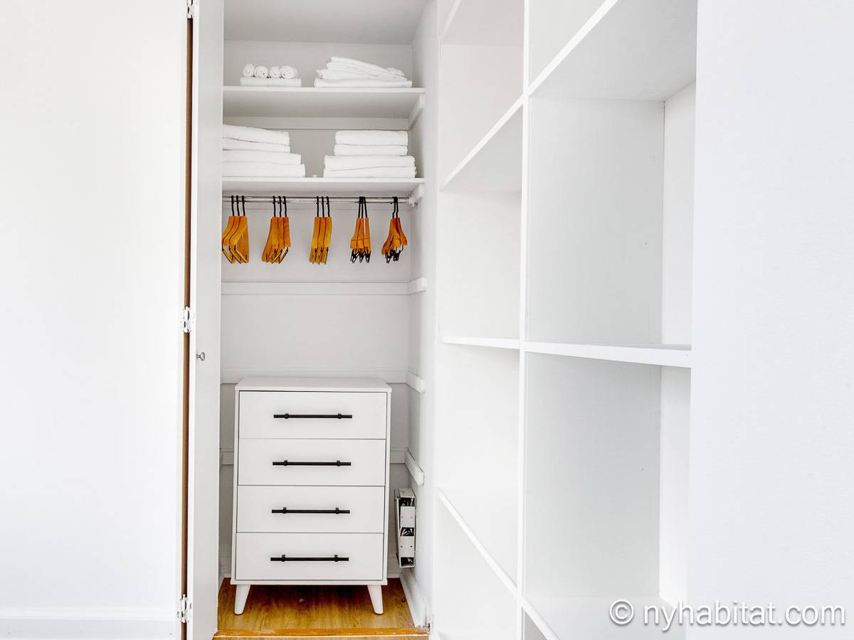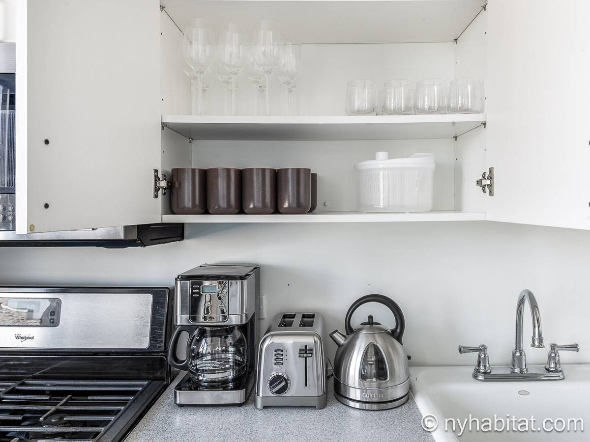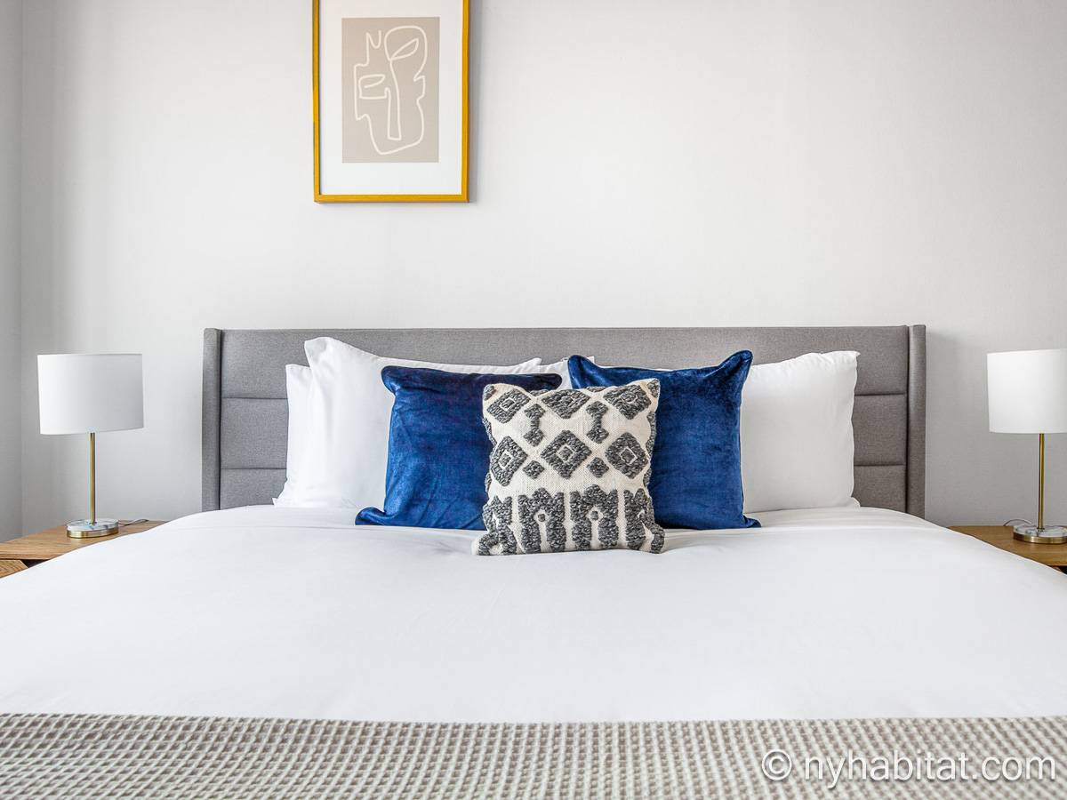 Questo appartamento offre un’ampia finestra con vista sullo skyline, da cui è possibile scorgere anche l’Empire State Building e il Chrysler Building. Se avrete necessità di lavorare o studiare da casa, nella stanza è presente una scrivania. Troverete anche un divano di fronte alla televisione, dove potrete riposarvi e guardare una serie TV dopo una lunga giornata. Se vorrete cucinare a casa, in cucina troverete forno, microonde, tostapane, frigorifero, macchina del caffè e lavastoviglie. All'interno di questo ambiente si trova anche un tavolo a cui sedersi.. Una delle due camere da letto è dotata di un letto queen size, mentre nell’altra camera troverete un letto king size. In entrambe le camere da letto sono presenti una finestra con vista sulla città e un armadio. Il bagno completo (che si trova nella suite padronale) dispone di una vasca con soffione. Sono inoltre disponibili altri armadi in prossimità del soggiorno.