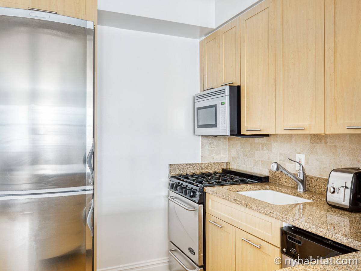 Posizionato vicino all’incrocio tra Park Avenue ed East 36th Street, questo appartamento ammobiliato ha una superficie di circa 50 m². Situato al nono piano di un edificio con portiere, questo appartamento è un nido che si trova a meno di 500 m da Grand Central Terminal. L’edificio dispone di una palestra, ascensore, lavanderia e giardino. L’appartamento include anche pavimenti in legno massiccio e aria condizionata.