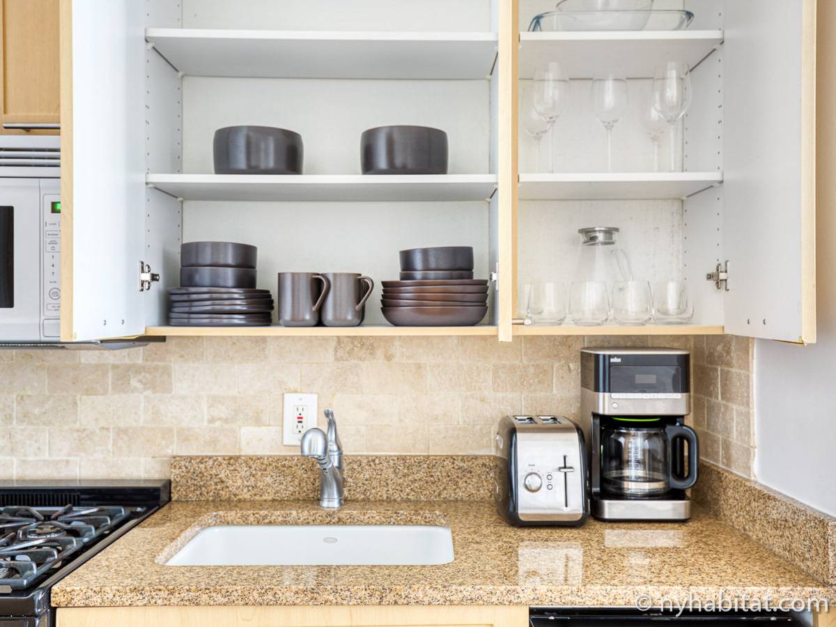 Venite a scoprire lo stile con questo appartamento arredato con una camera da letto e un bagno a Manhattan, New York, nel quartiere di Murray Hill a Midtown East.