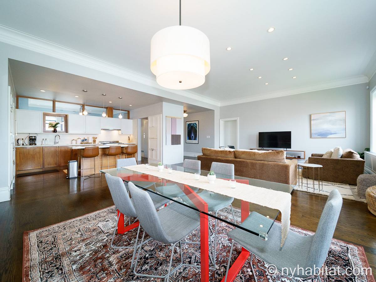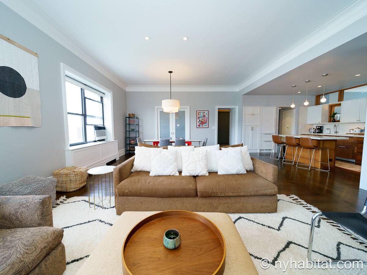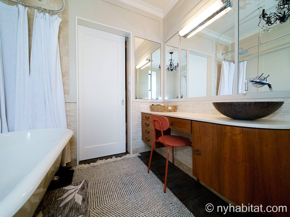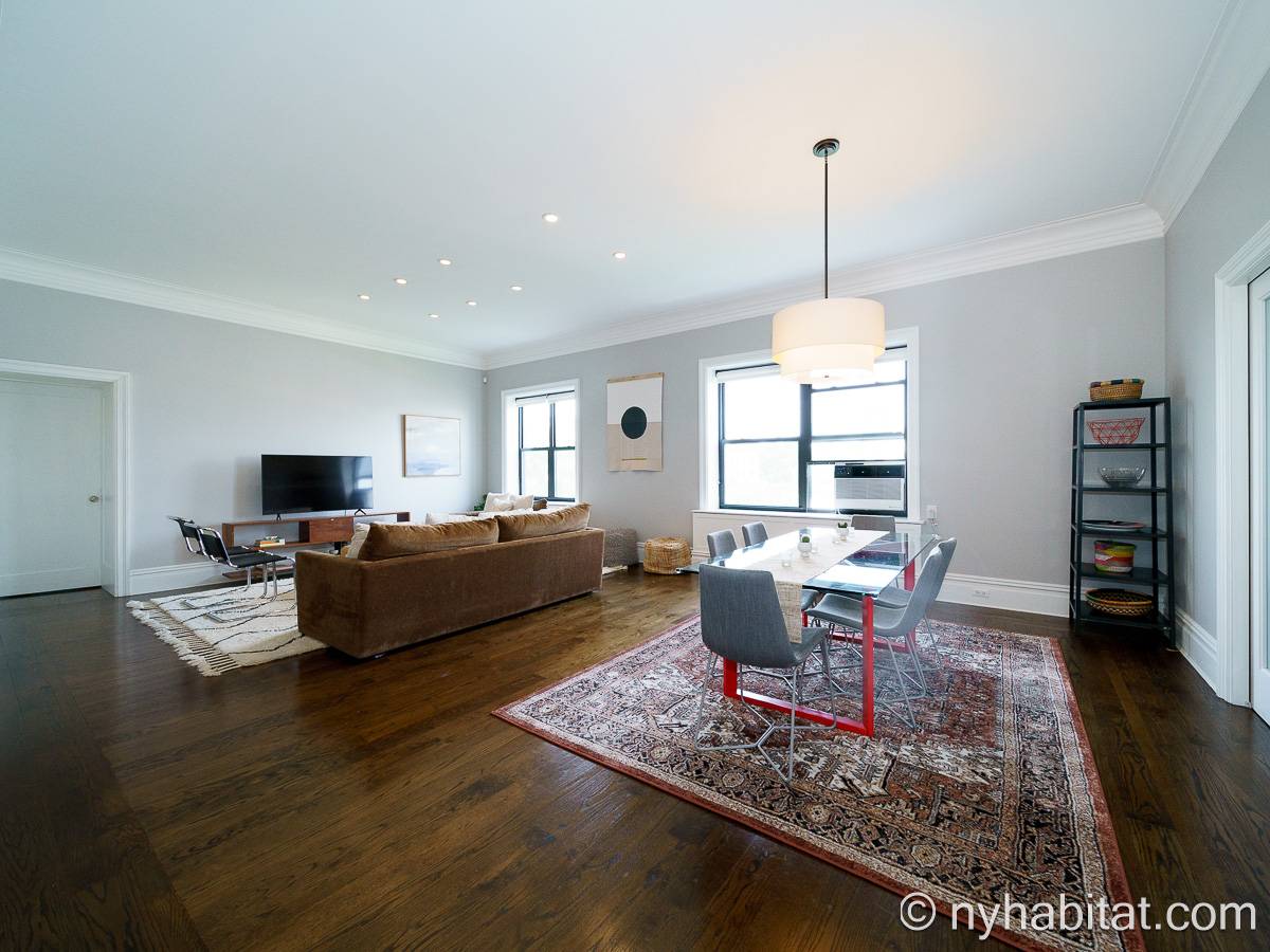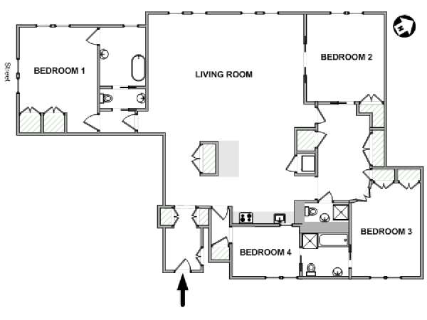 L’appartamento ammobiliato ha una superficie di 190 m2 e si trova al sesto piano (equivalente al settimo piano europeo). Al suo interno troverete un open space con soggiorno e cucina, permeato dalla luce naturale. Il soggiorno si compone di un divano e altri posti a sedere posizionati intorno alla TV, nonché di un tavolo da pranzo. La cucina offre altri posti a sedere ed è completa di frigorifero con freezer, microonde, tostapane, forno, macchina per il caffè e lavastoviglie. Le quattro camere da letto sono tutte dotate di aria condizionata. Inoltre, la prima presenta un letto queen size, armadi, e un bagno privato (dotato di vasca da bagno con piedini e soffione); la seconda e la quarta camera da letto hanno entrambe letti matrimoniali; la terza invece vanta un letto king size. Il secondo bagno dispone di una doccia, mentre il terzo presenta sia una doccia che una vasca da bagno.