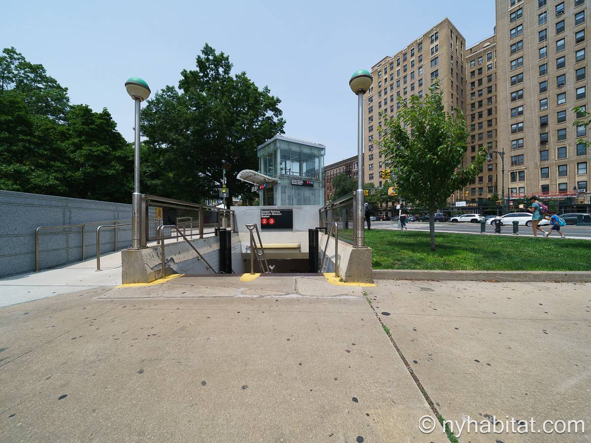 La stazione della metropolitana di Franklin Avenue ed Eastern Parkway (a 300 m di distanza) offre accesso alle linee 2, 3, 4 e 5; invece quella di Park Place, Franklin Avenue e Classon Avenue (a 650 m) è servita dalla linea S.